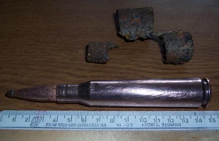 Попался вот такой, то ли патрон, то ли снаряд. Рядом были обломки звеньев ленты. От чего он может быть?