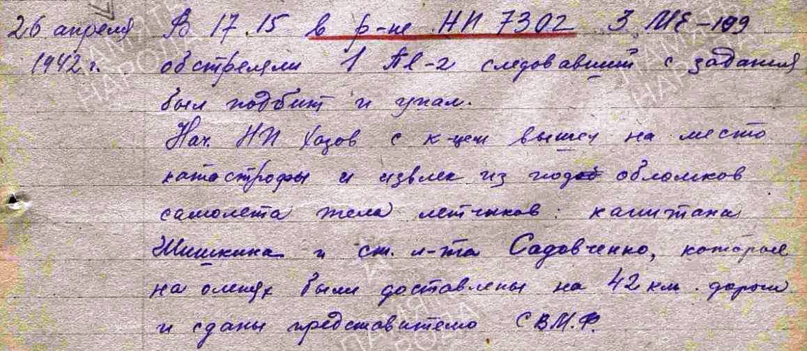 Опубликовано: 1 июля, 2009 Приветствую всех! Побывал снова на месте падения этого самолёта в верховьях реки Титовка. Пешка №392014 выпуска московского завода №39 принадлежала 95 ИАП и была потеряна 26 апреля 1942 года во время БШУ по аэродрому Хебуктен (в том вылете было сбито пять пешек) . В ноябре 2001 года мы делали по нему запрос в ЦВМА, ответ пришёл в январе 2002 года. Описание боевого вылета, во время которого он был сбит, есть в известном "Expertenstaffel за Полярным кругом" Юрия Рыбина и тут: http://www.airwar.ru/history/av2ww/soviet/soviet.html в статье "Пе-3 над морем". По данным ОБД Мемориал экипаж в составе Шишкин-Садовниченко похоронен в Североморске. По данным потерь ВВС СФ с сайта Eismeerfront экипаж Стариков-Пеньковский похоронен в г. Кола, по Рыбину Стариков-Глушков, а Пеньковский летал с Туликовым. Вот такая неразбериха. На месте падения останков экипажа не обнаружено, но надо ещё смотреть, т.к. самолёт разнесло метров на 200... Рядом проходит тягачная дорога, обломки постепенно растаскиваются, и конечно хотелось бы поставить памятник, чтобы люди знали, кто тут погиб...Подскажите, есть ли смысл по прошествии лет снова давать запрос в Гатчину, чтобы узнать фамилии экипажа? 1 Упомянуть пользователя Поделиться сообщением Ссылка на сообщение Поделиться на других сайтах