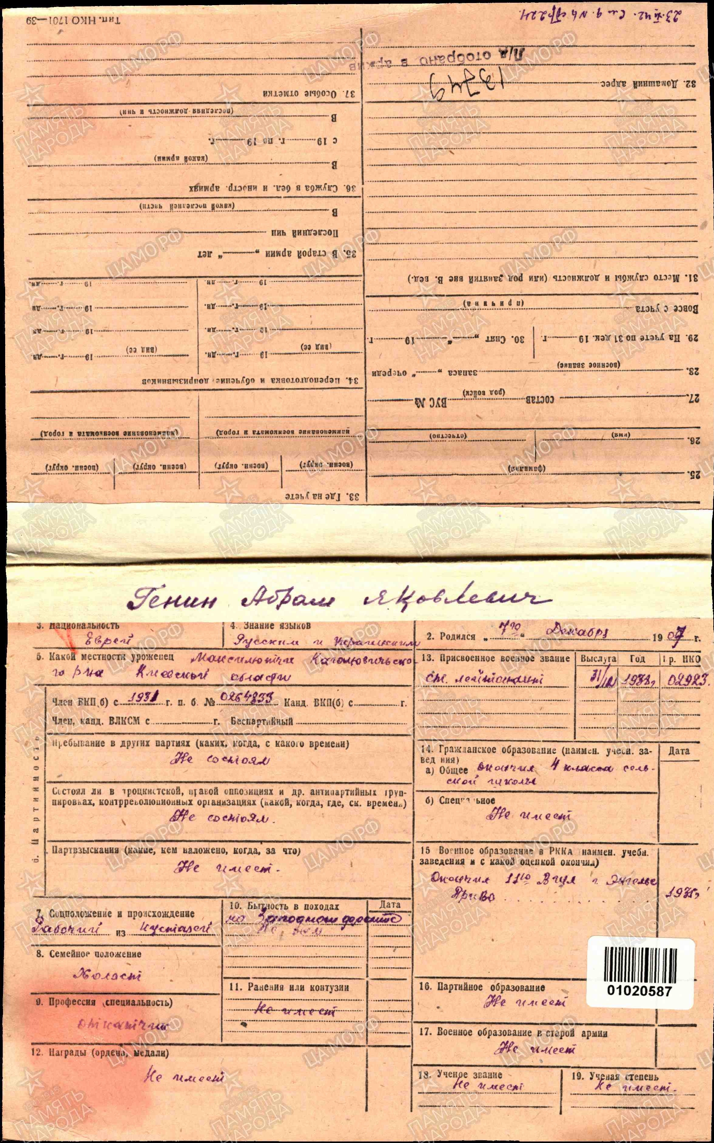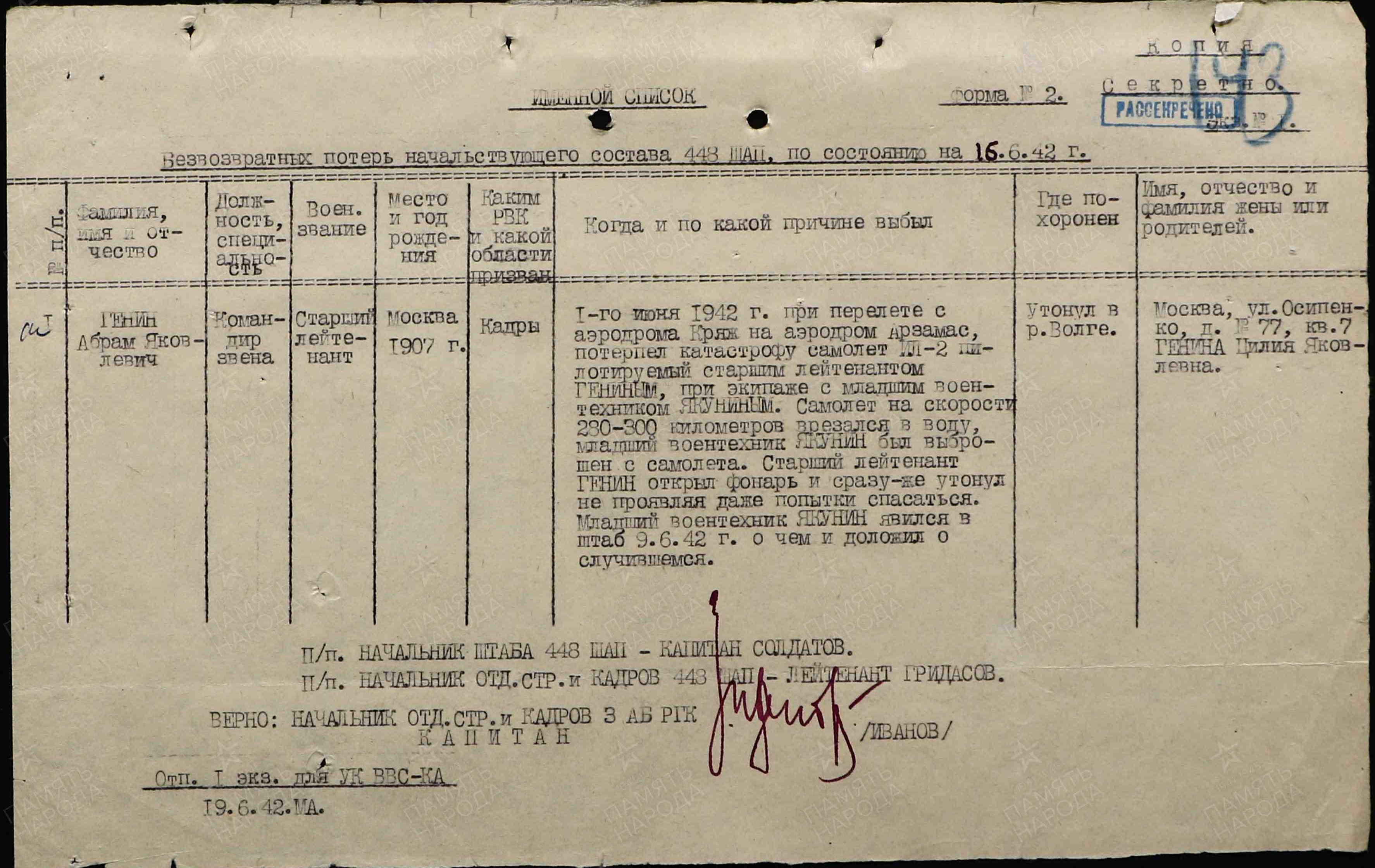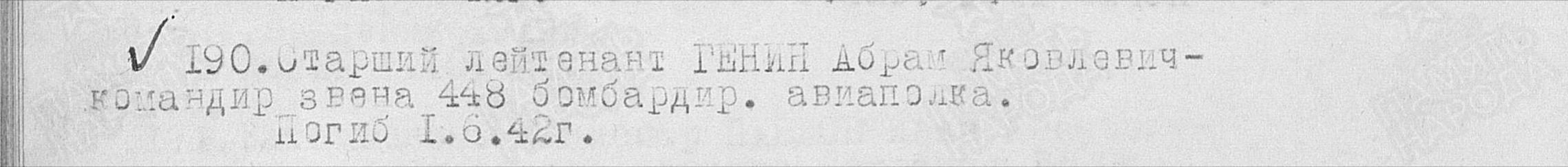 Генин Абрам Яковлевич, ст. лейтенант, командир звена 448 шап (бывш. 37 "А" сбап) (07.12.1907 — 01.06.1942)