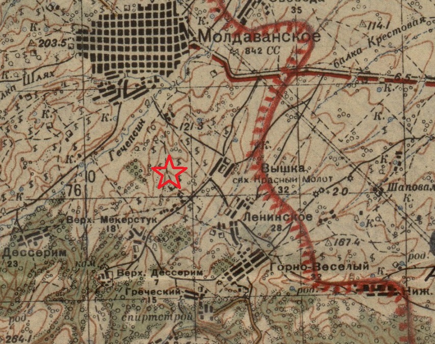 Вообще Первенец, в 20 метров от крайних домов которого было найдено место падения данного Ила, в годы войны назывался Вышка.