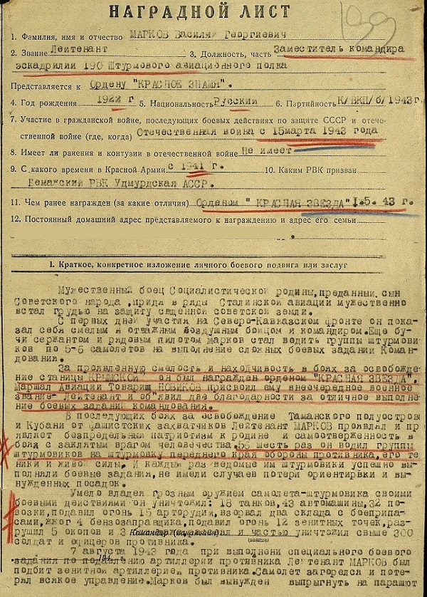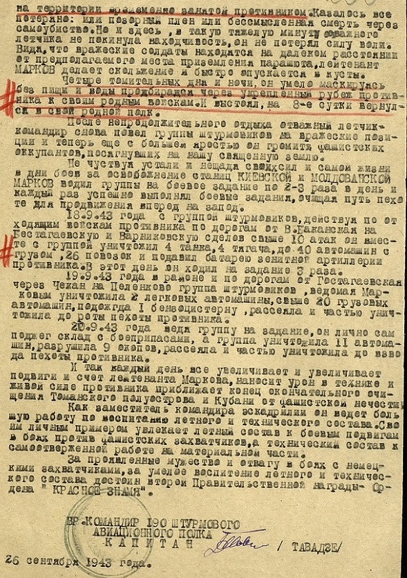 Пилот Марков погиб 1 декабря 1943 года. Его самолет затонул в Керченском проливе.