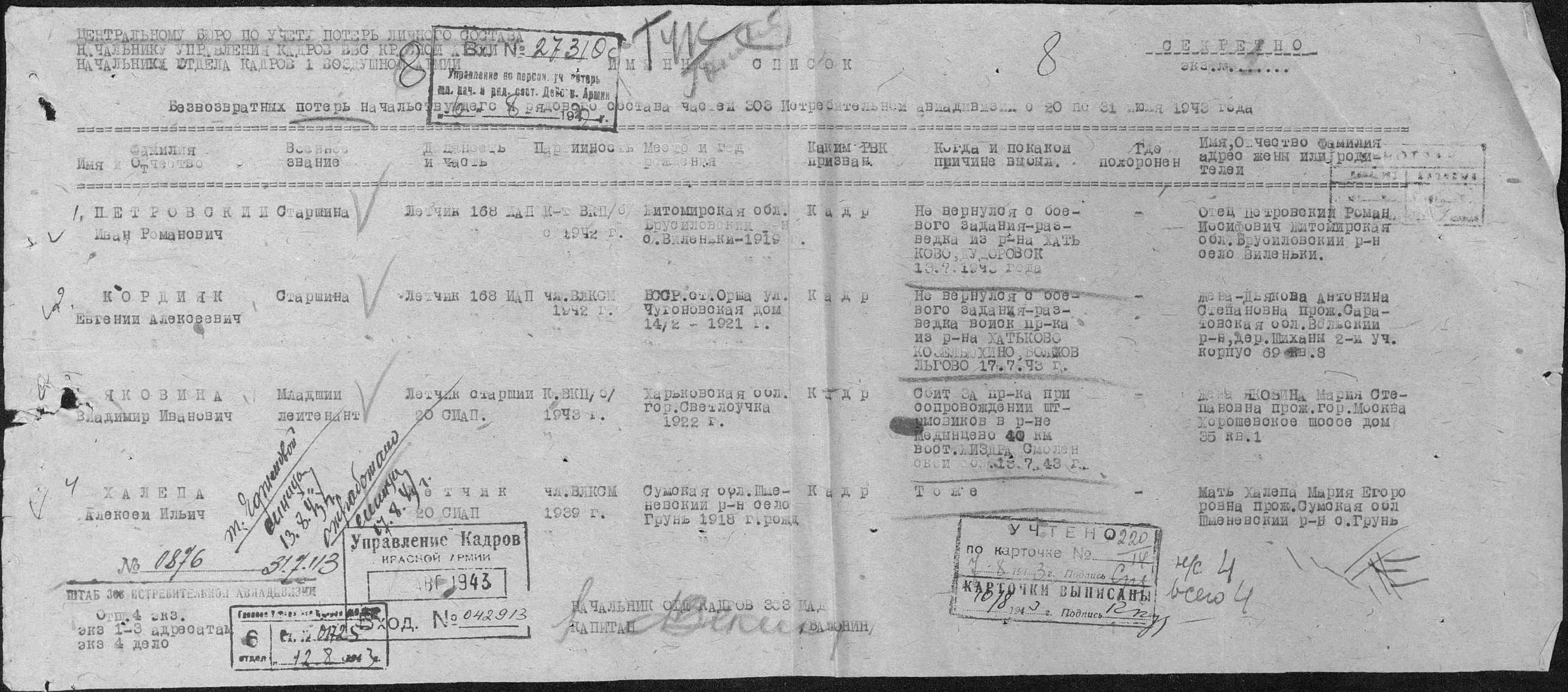 Опубликовано: 25 апреля, 2017 (изменено) Сергей Сергеев тоже ссылки прислал: Новосибирск.Они вернулись c Победой http://www.sibmemorial.ru/searchp/fio/ХАЛЕПА АЛЕКСЕЙ ИЛЬИЧ, мл. л-т. Род. в 1918 в с. Грунь Штеповского р-на Сумской обл., Украина. Призван Макеевским РВК Донецкой обл. 29 октября 1940. 20 иавиап 17 иавиад 1 ВА. Демобилизован 1 декабря 1945.http://www.sgvavia.ru/forum/126-6021-4 Возможно томским школьникам будет интересно.ГСС летчик -штурмовик Индык Семён Леонтьевич родился в 1909 тоже в селе Грунь Штеповского раиона.И Томск и "столичный" Новосибирск были в 1930х одной областью.C уважением,Сергей Изменено 25 апреля, 2017 пользователем linnet 0 Упомянуть пользователя Поделиться сообщением Ссылка на сообщение Поделиться на других сайтах