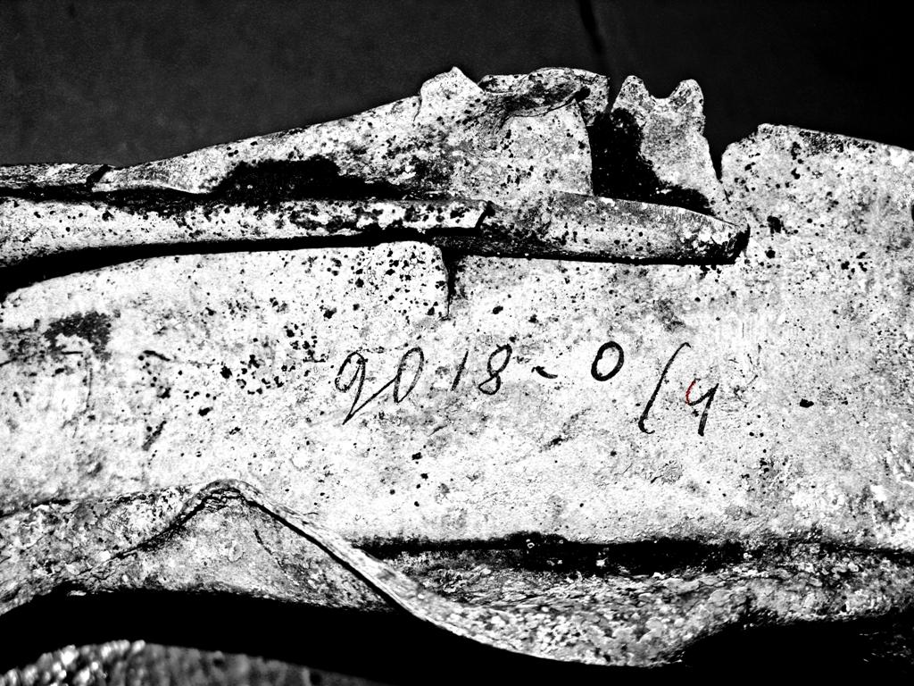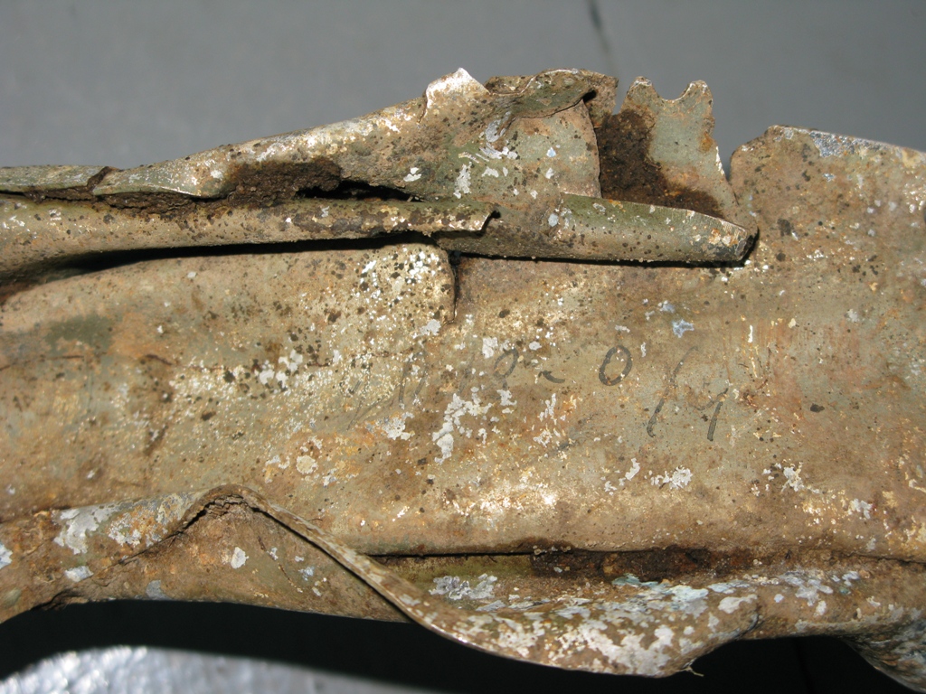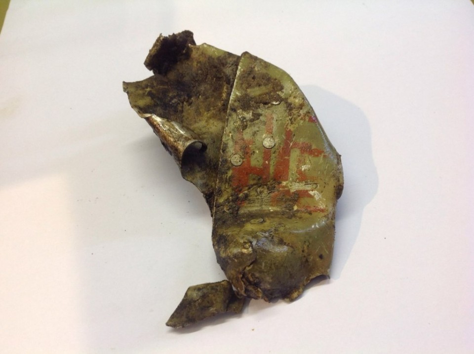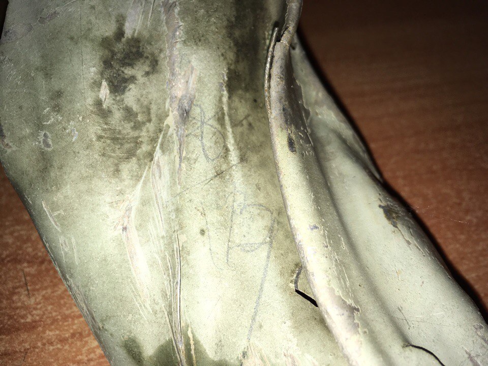 Снова ездили на самолёт. При проработке окрестностей металлоискателями нашли фрагмент с нанесёнными цифрами. Надпись нанесена не похоже, что карандашом и больше похожа на тонкий маркер.