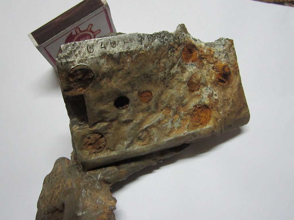 Опубликовано: 28 декабря, 2016 Добрый вечер. Несмотря на конец декабря Александр Лесников продолжает разрабатывать место падения Ар-2. Сегодня прислал номер двигателя (уже 3-й для этого самолета) набитый на каком-то агрегате. Номер 045 - 76 Никому по записям полка не встречался такой номер? С уважением, Константин. 0 Упомянуть пользователя Поделиться сообщением Ссылка на сообщение Поделиться на других сайтах