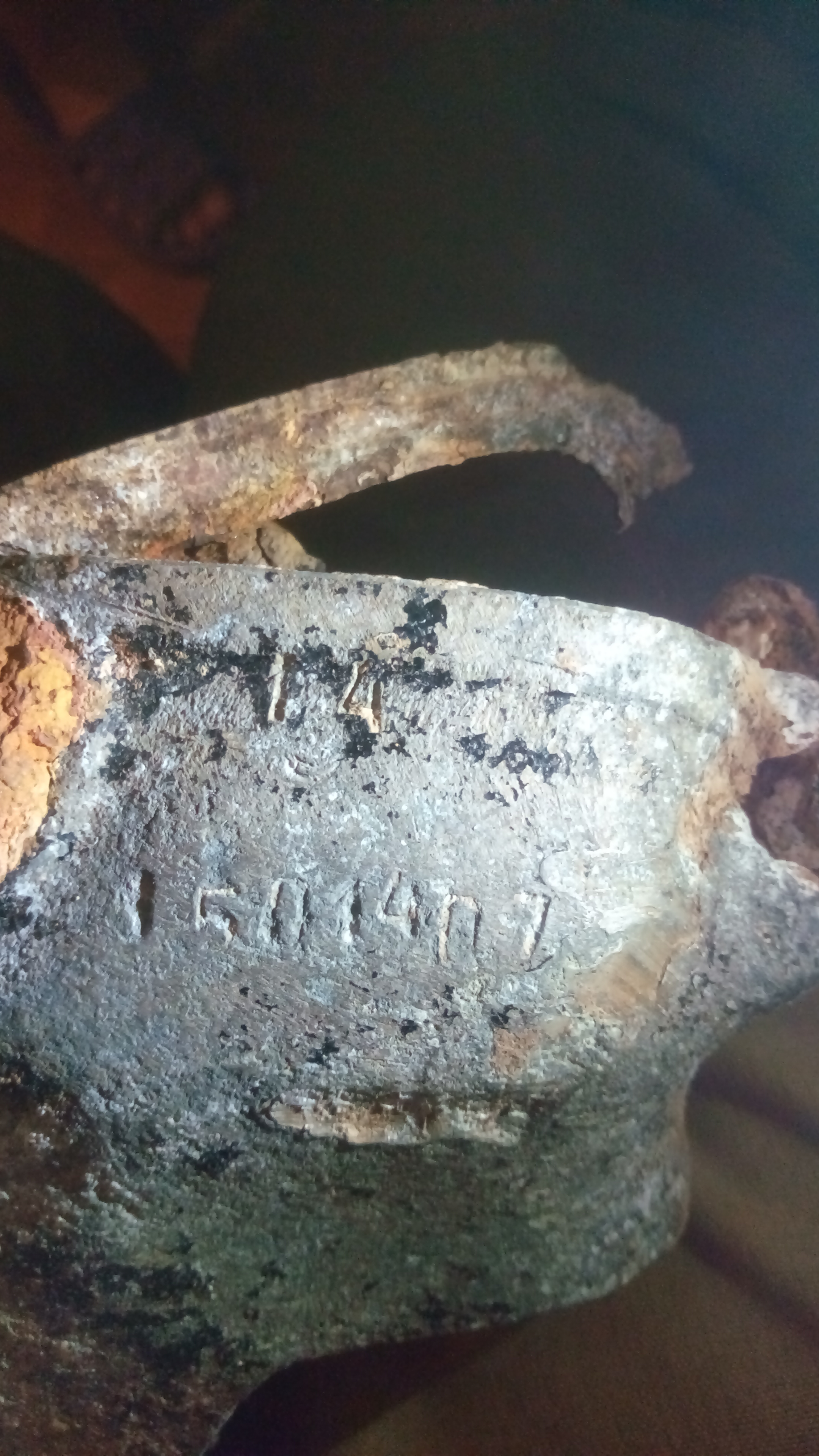 Борис,приветствую..Калужская область,Ульяновский район д.Восты (бывшая..сейчас её нет)..рядом деревни..Колосово..Поляна..номер видится 501407..первая черта как будто просто удар керном..а сверху  14..я так понимаю номер цилиндра..