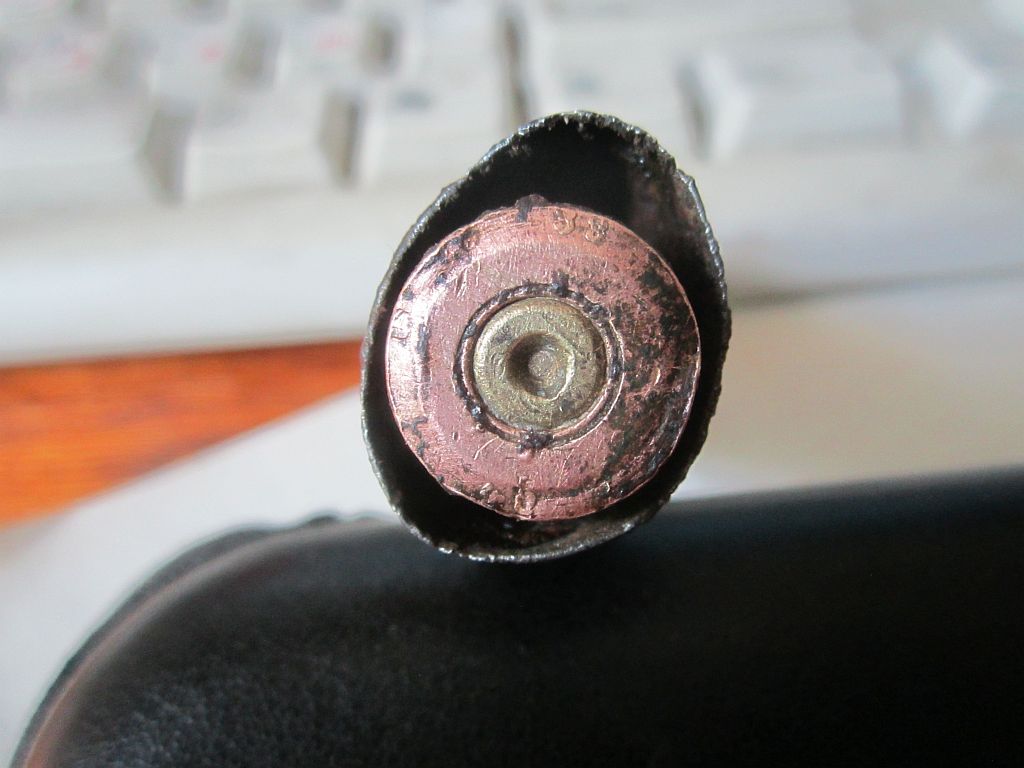 Александр разобрал кусок гильзоотвода ШКАСа. Внутри оказались две гильзы с маркировкой 40г.