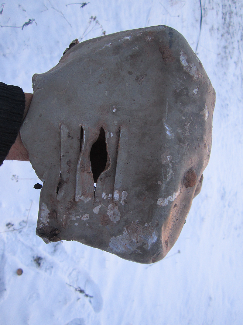 Теплая зима позволила Александру Лесникову съездить в Васихново. Результат - найден обломок крышки какого-то ящика с прорезью. Сверху окрас зеленый, внутри - белый. На внутренней стороне четкий номер 1319. Может ли это быть серийным номером пешки (как установлено здесь ранее 39 завода)?