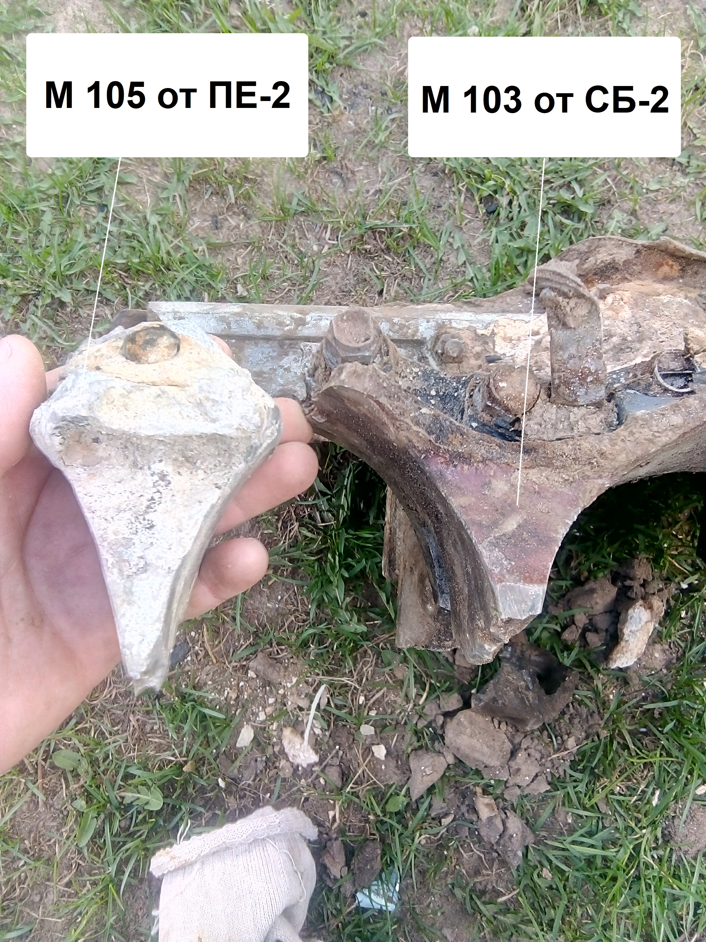 Опубликовано: 24 апреля, 2018 Всем добрый вечер. Сочетание пластинчатого радиатора, пояснительных надписей на лючках ("технички"), гильз 7.62 мм (другие не представлены) дает однозначный результат - Ар-2. На Пе-2 все радиаторы сотовые. Двигатели должны быть М-105. У Вас много обломков двигателей должны выскочить номера. Успехов в поиске. Константин. 2 Упомянуть пользователя Поделиться сообщением Ссылка на сообщение Поделиться на других сайтах