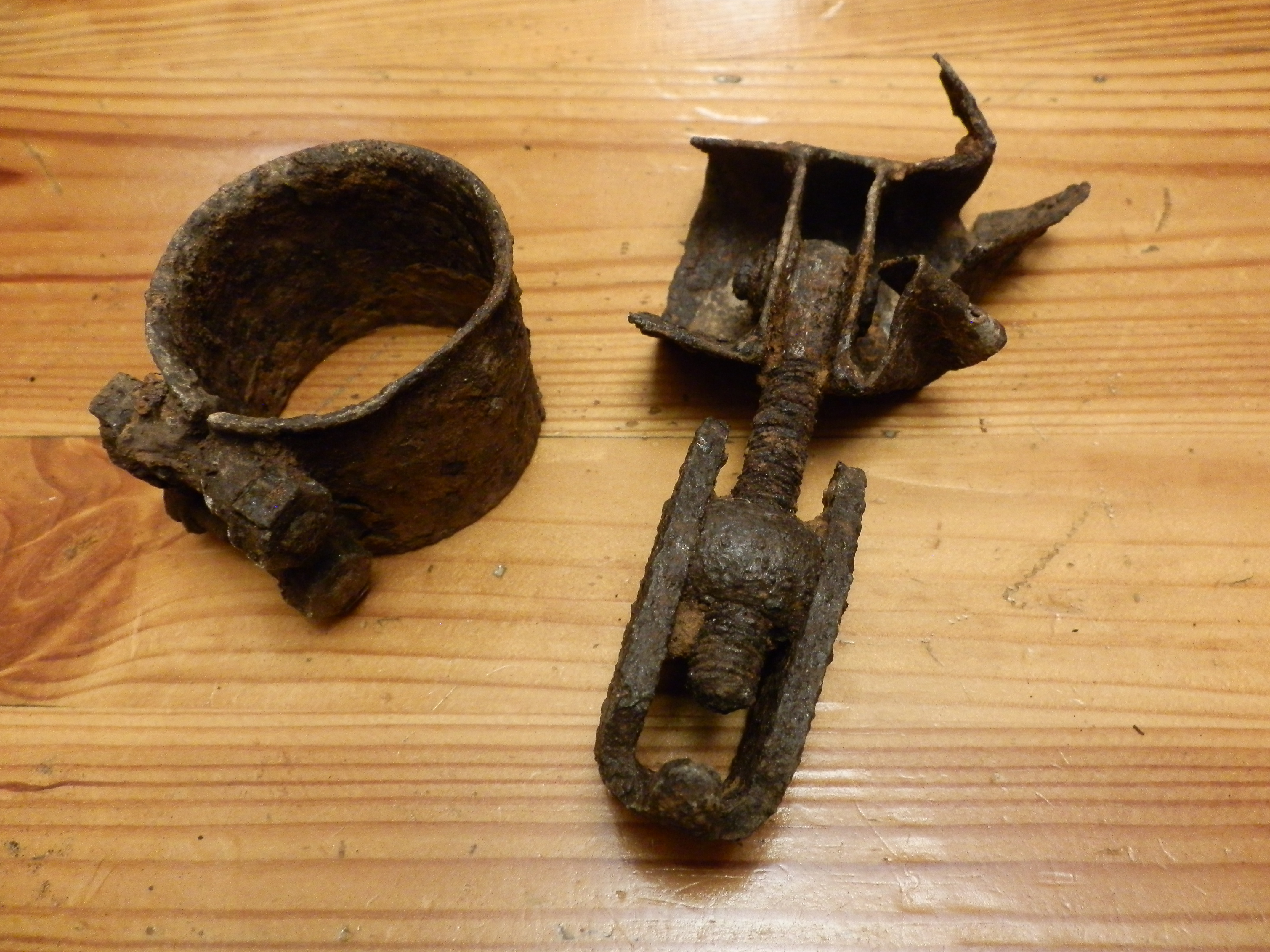 Опубликовано: 1 декабря, 2021 Спасибо за поправку. Просмотрели еще раз детали. Предполагаем, что это фрагменты ДБ-3А... Потеря примерно с конца августа до конца октября 1942 г. На просторах интернета нашли похожие хомуты. Два фото с интернета. Одно фото - с нашего МП. 0 Упомянуть пользователя Поделиться сообщением Ссылка на сообщение Поделиться на других сайтах