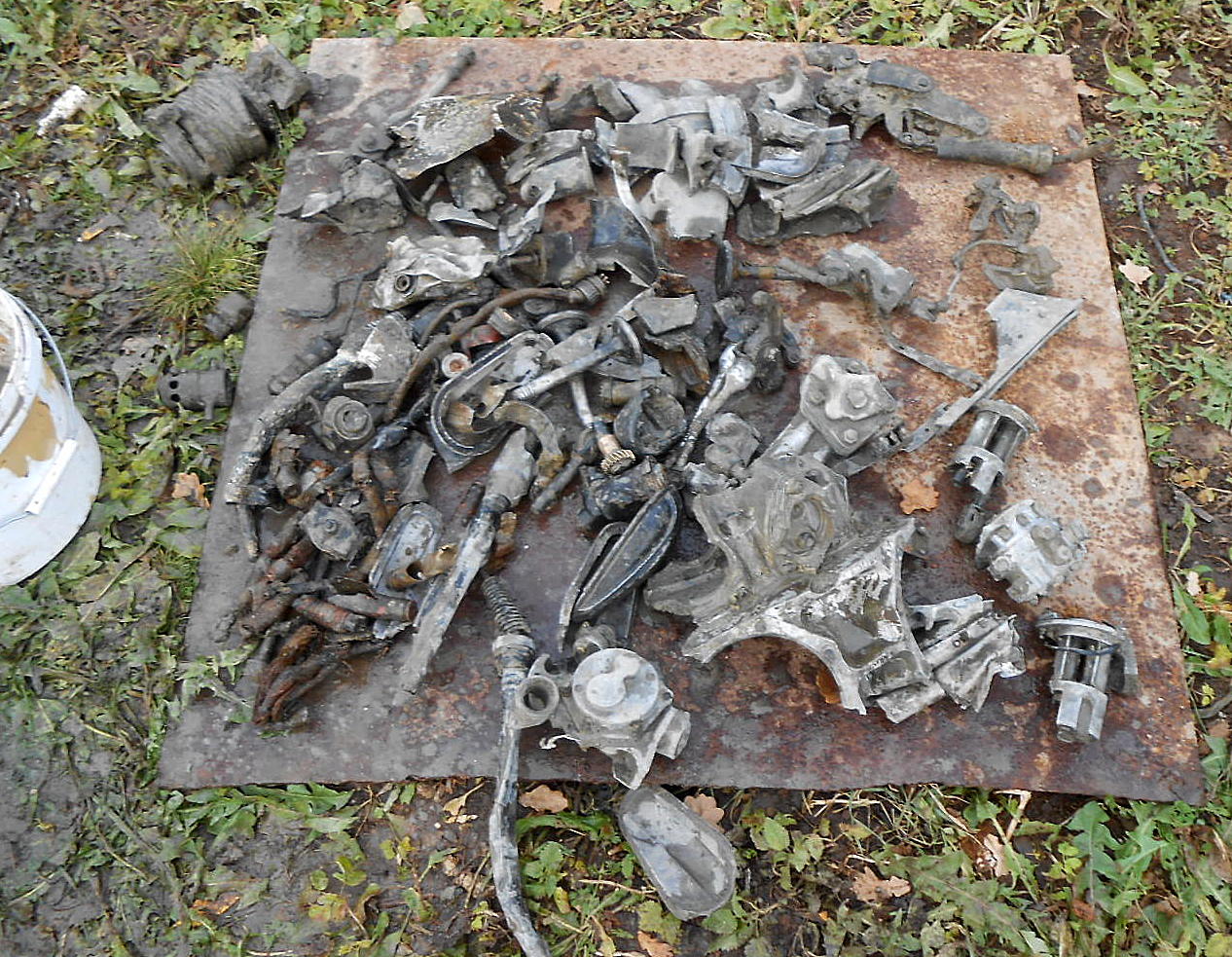 Опубликовано: 23 октября, 2018 Всем добра! Позавчера проверяли очередное место падения. Юго-восток Ельнинского р-она, Смоленской обл, недалеко от д. Полхово. Две воронки диаметром по 2 м. Между ними по центрам около 4 м. Обломков практически нет,кроме того самолёт судя по всему взрывали после войны. В одной яме рваные 80-ки и рваный корпус от немецкой противотанковой мины на самом дне ямы. При вскрытии первой ямы и поднятия верхнего слоя между ям,обнаружены фрагменты останков ,элементы пристежной системы,два цилиндра без поршней,куски движка,крышки рокеров и так далее. Двигатель м-88. номер 884122. В общем .что сегодня отмыл ,отфотал. Предполагаем,что это одна из модификаций ДБ-3. Но ! На месте,помимо остатков БК 7,62 , обнаружено несколько рваных гильз 12,7 , 41 и 42-го годов выпуска с фрагментами звеньев от ленты,а так же несколько самих звеньев. Прошу помощи сообщества в установлении модели самолёта и членов экипажа. 0 Упомянуть пользователя Поделиться сообщением Ссылка на сообщение Поделиться на других сайтах