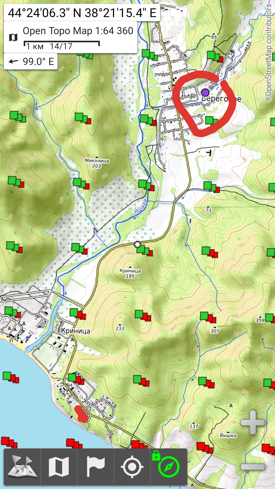 красный круг, место где нашли швак.