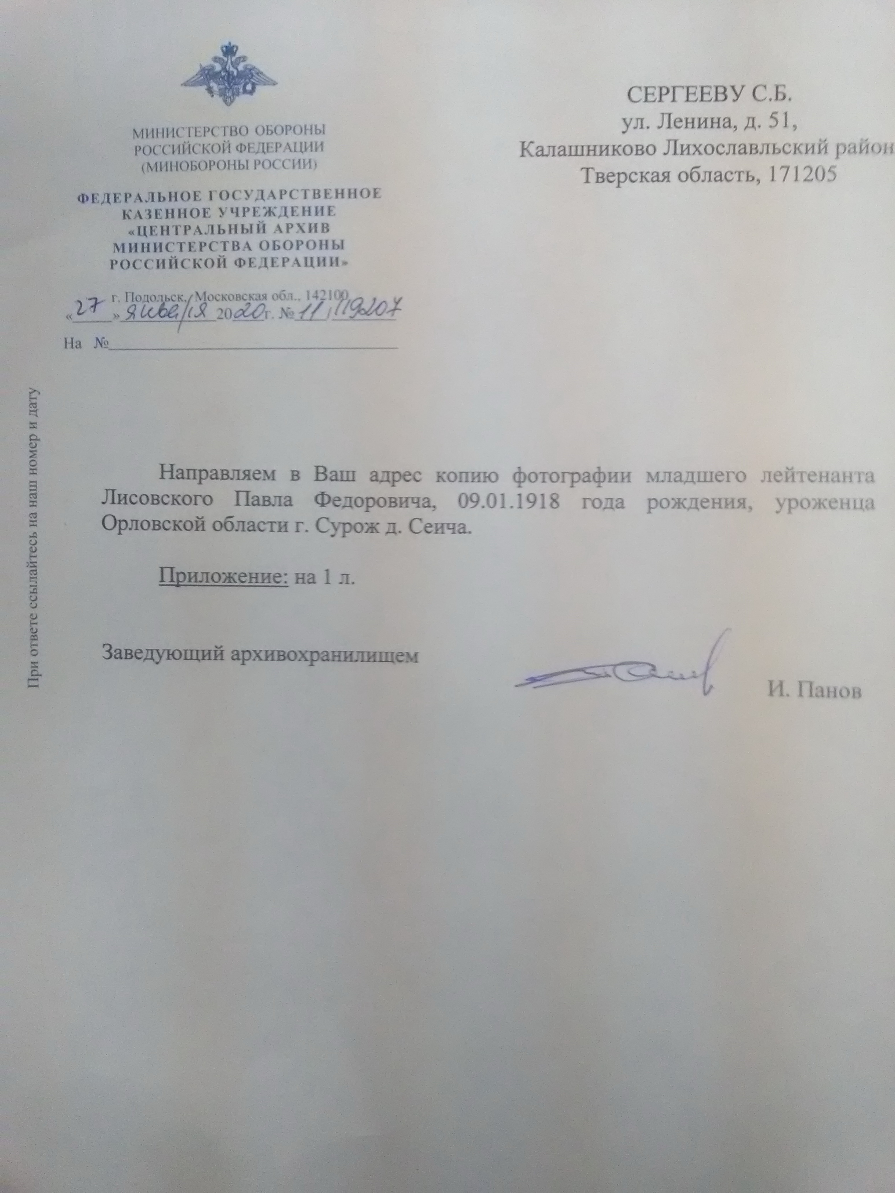 Опубликовано: 11 февраля, 2020 37 минут назад, AgafonovE сказал: Раз уж представлен такой ответ, разрешите посмотреть, какой был запрос. Просто первый раз вижу, что фото ЦАМО присылает. Фантастика... Ну и молодцы, конечно!!! Всегда присылает, если есть. Просто здесь еще и в рамке... 0 Упомянуть пользователя Поделиться сообщением Ссылка на сообщение Поделиться на других сайтах