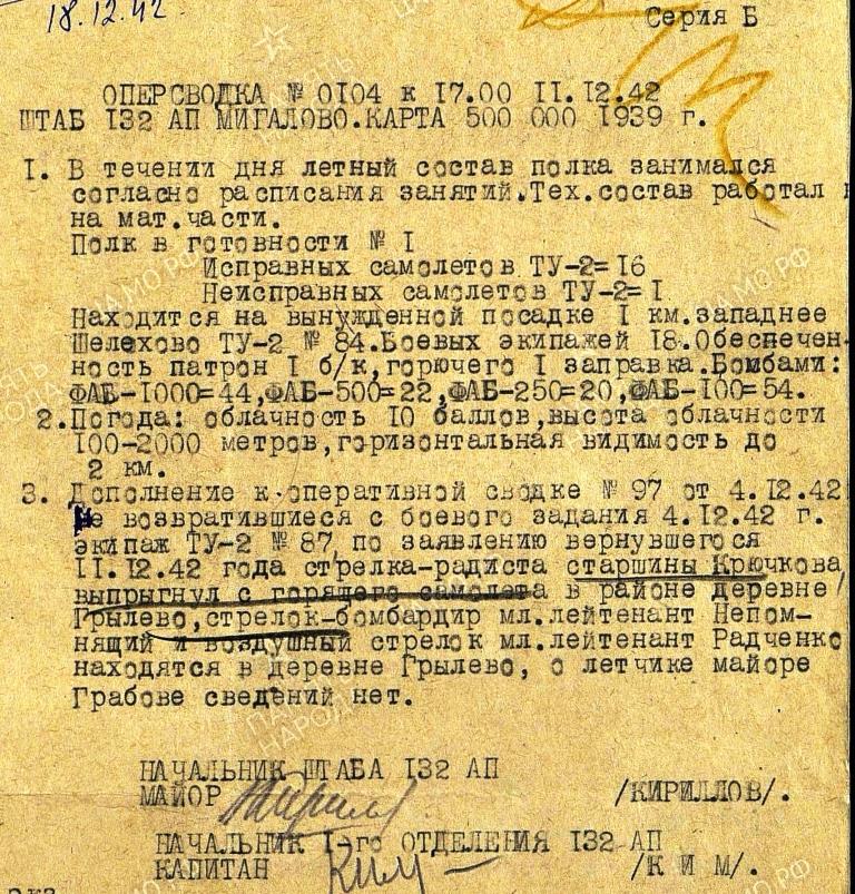 Опубликовано: 5 ноября, 2019 14 часа назад, Пупсик сказал: Эти машины я так понимаю нбз? Если да тут надо смотреть полетное задание,маршрут и примерно где пропал и тогда можно будет сопоставить. В журнале потерь полка, только один самолет за 42 год. Последняя потеря Пешки 28.01.42., потом сразу потеря в декабре Ту-2, переучивались? 2 Упомянуть пользователя Поделиться сообщением Ссылка на сообщение Поделиться на других сайтах
