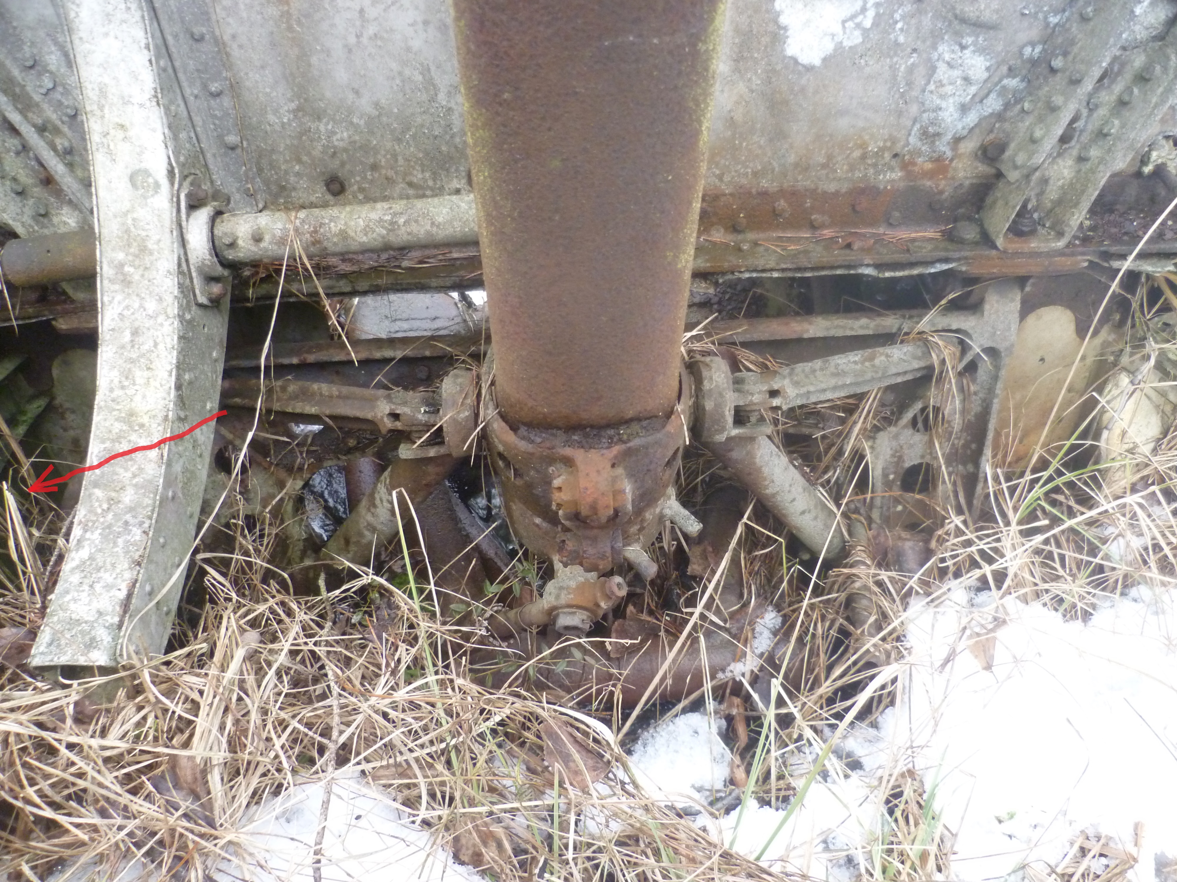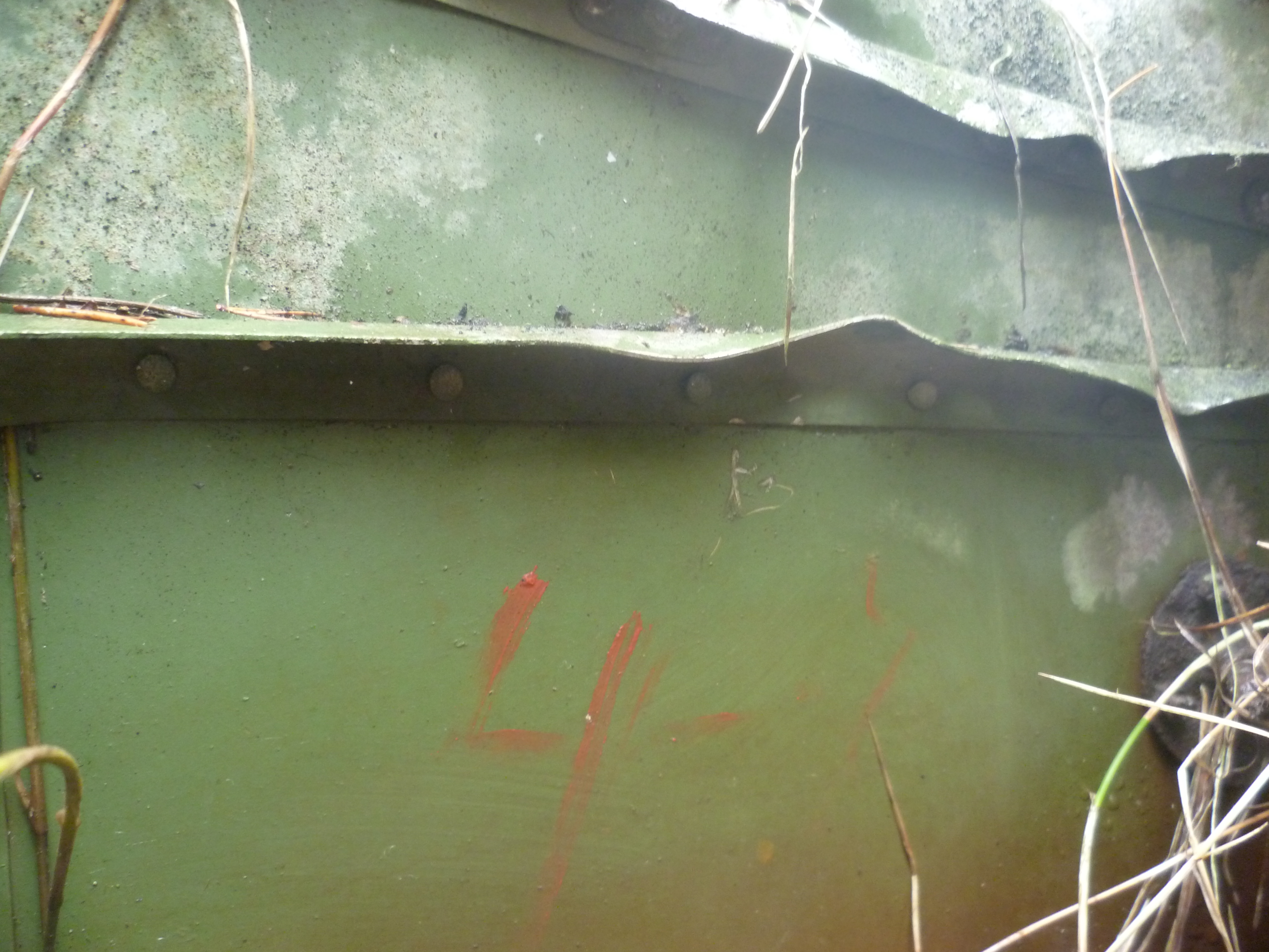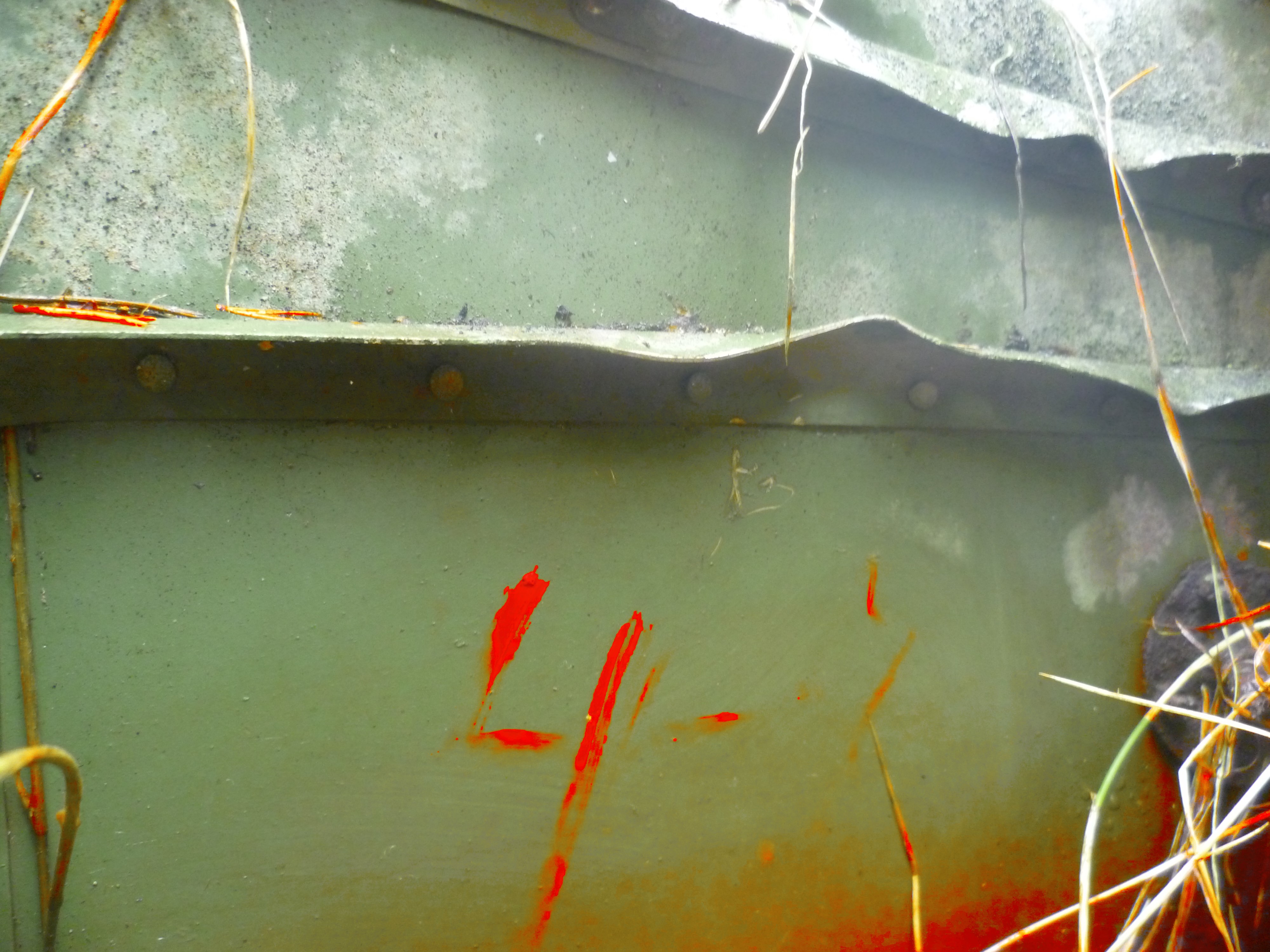 Из номеров пока нашли только один. Нарисовано краской 4-2. Красной стрелкой показано, где он нарисован.