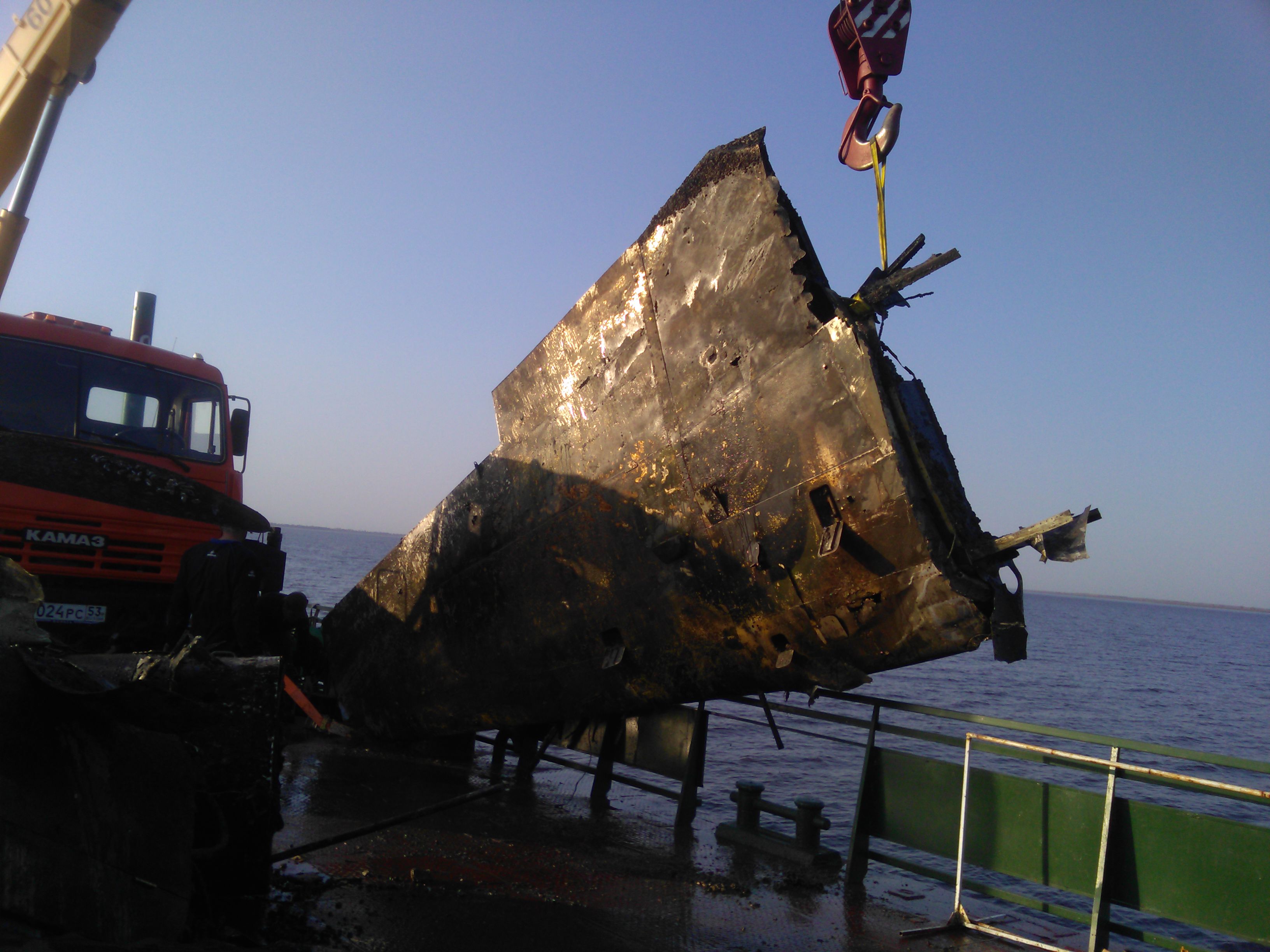 Почему сломали?. Честно скажу - я чуть не плакал глядя на это...((( Но!  машина на момент подъёма весила около 15 тонн.... забитая грязью. Крыло около 5.... Вымыть грязь ? из закрытого крыла в полной темноте??? доставить к берегу? НЕ ВОЗМОЖНО!!!!!  Никогда я не думал , что Ильмень такая мелкая лужа!!! Фарватер по минимуму составил 1.5- 1.8 метра , что практически не позволяло провести его на понтонах....В право в лево от основного фарватера даже моторка боится отойти. С учётом  высоты самих понтонов  проход на плаву до удобных мест был не возможен.