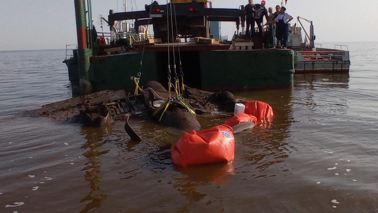 Работа была проведена не просто огромная , но я бы сказал не вероятная по сложности. Машина лежала при полном капоте  в глубоком темном иле. С крыла размывали почти метр его... С учётом ПОЛНОГО отсутствия видимости все работы проводились в слепую. Более 10 дней. С учётом периодических ветров с большой волной я с трудом понимаю как выдерживали водолазы нагрузки... Они и спали часто там.... Волна рвала всё, что могла, перетирались верёвки и ремни,пробивались понтоны и т.д. и т.п. Верхняя часть машины , торчащая из ила была опутана сетями разных времён. Чего там только не было и верёвки и троса и цепи... Резали, рубили, распутывали..