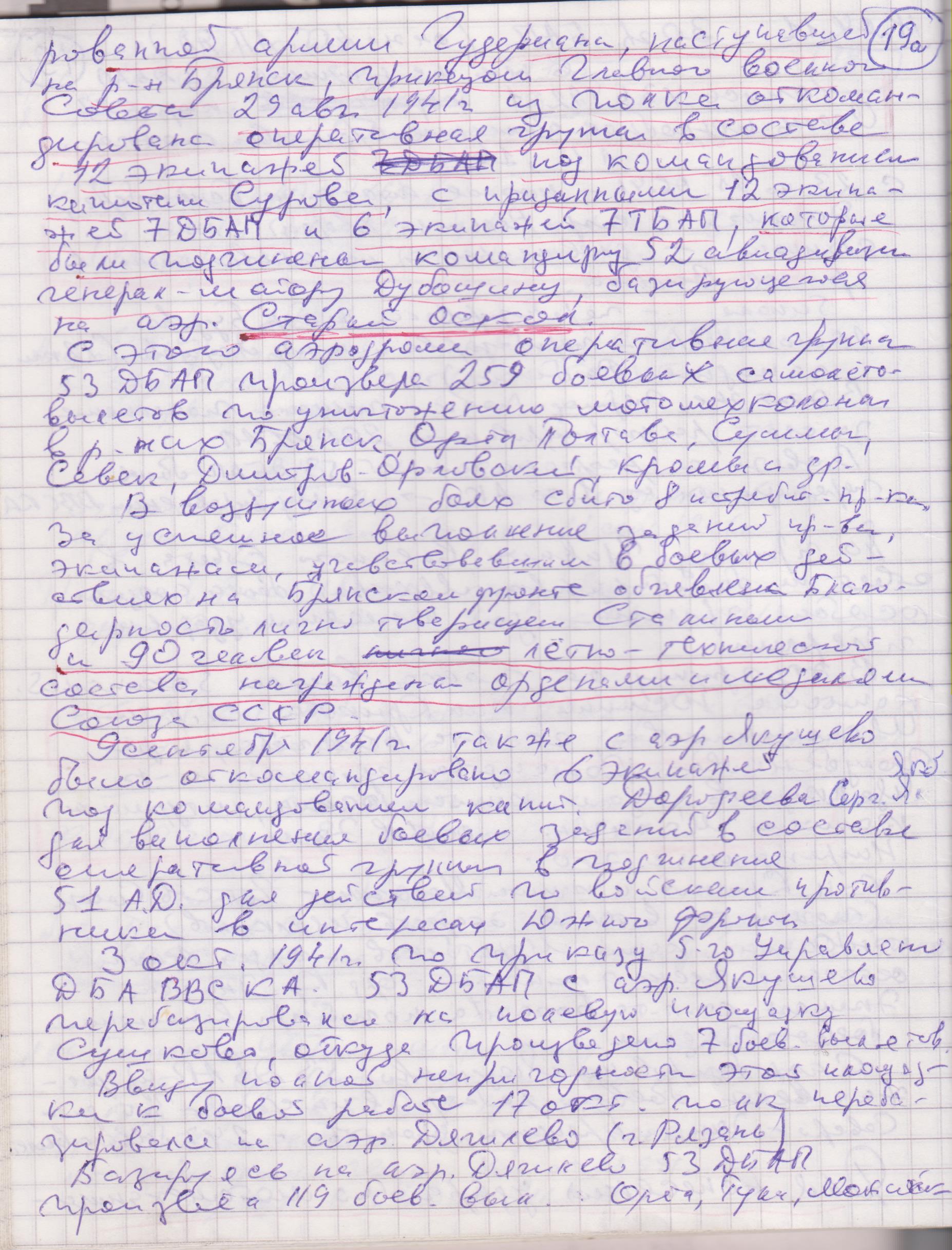 Опубликовано: 14 апреля Если подытожить имеющуюся информацию,то получается следующая легенда,она конечно притянута мной "за уши" но основывается на конкретных фактах. Если рассматривать гибель экипажа Дозмарова М.Ф.24.9.41 под Полтавой и за основу взять два момента 1).известно,что группа Сурова бомбила мотомехколонны в районе Полтавы (запись В.Шелудько из ЦАМО). 2).погибшие 24.9.41 стрелок-бомбардир л-т Жихарев Н.Д и стр.радист Белых И.М. как и погибший 1.12.41 стр.радист Касаев А.К. были награждены орденами Кр.Знамени в группе Сурова,то можно сделать вывод,что и Дозмаров М.Ф.был в группе Сурова. Из исторического формуляра 30 гв.ап известно,что 53 дбап после 25 ноября перебазировался на аэр. Лопатино под г. Муром и все экипажи с опергрупп вернулись в полк.Вероятно экипаж Дозмарова по каким то причинам задержался на аэр. Липецк где до 4.12.41 базировался 98 ап. входивший в состав 52 ад,к которой была прикомандирована группа Сурова Из жбд 98ап. известно,что 1.12.41 г. экипажи вылетели на бомбардировку в район Серябряных Прудов. Поселок Кораблино,как и другие н.п. указанные в газетных статьях ( см.фото выше) как раз находятся в полосе маршрута на С.Пруды. Так как самолет упал с бомбами очевидно,что летел на задание. 0 Упомянуть пользователя Поделиться сообщением Ссылка на сообщение Поделиться на других сайтах