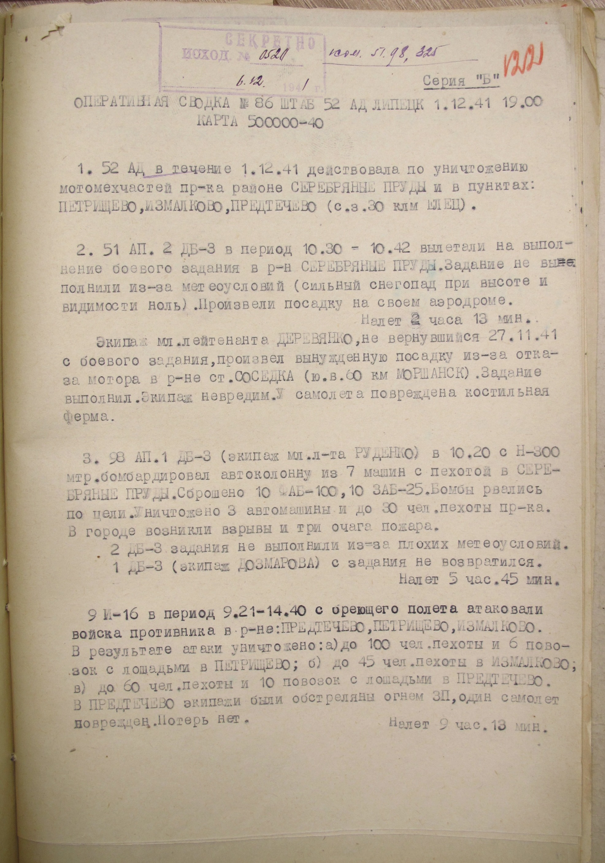 Опубликовано: 21 апреля Нашлась информация о вылете 1.12.41 г. в документах 52 ад, которая подтверждает ранее изложенные предположения. Уважаемые участники группы, возможно кто то встречал номер самолета Дозмарова М.Ф. среди найденных или списанных ? 0 Упомянуть пользователя Поделиться сообщением Ссылка на сообщение Поделиться на других сайтах