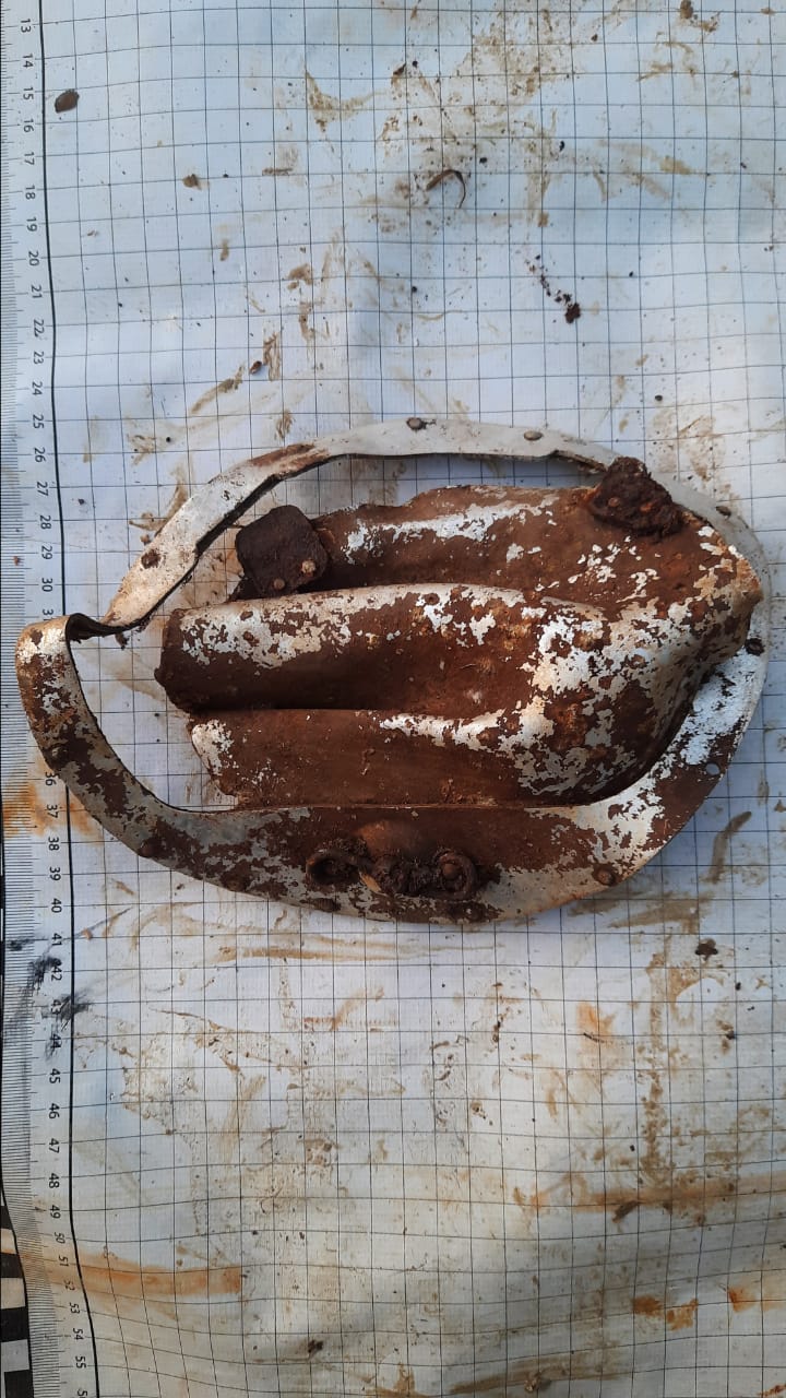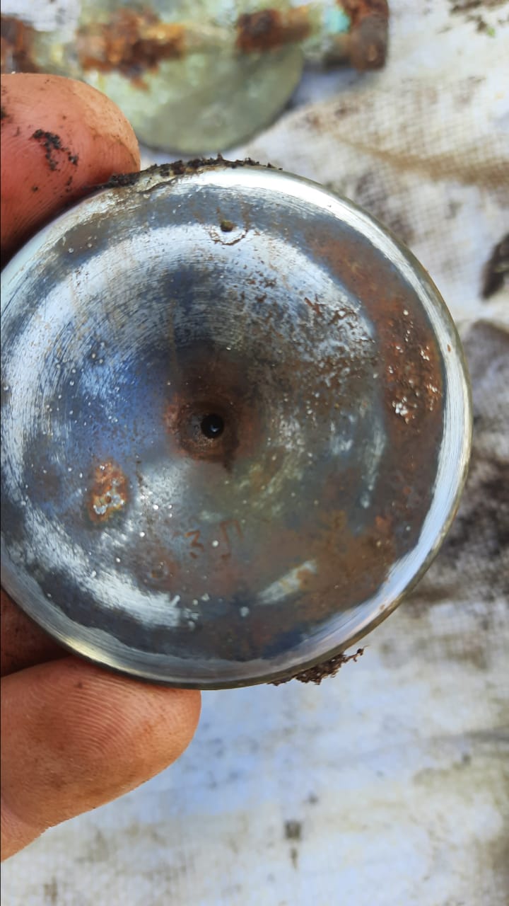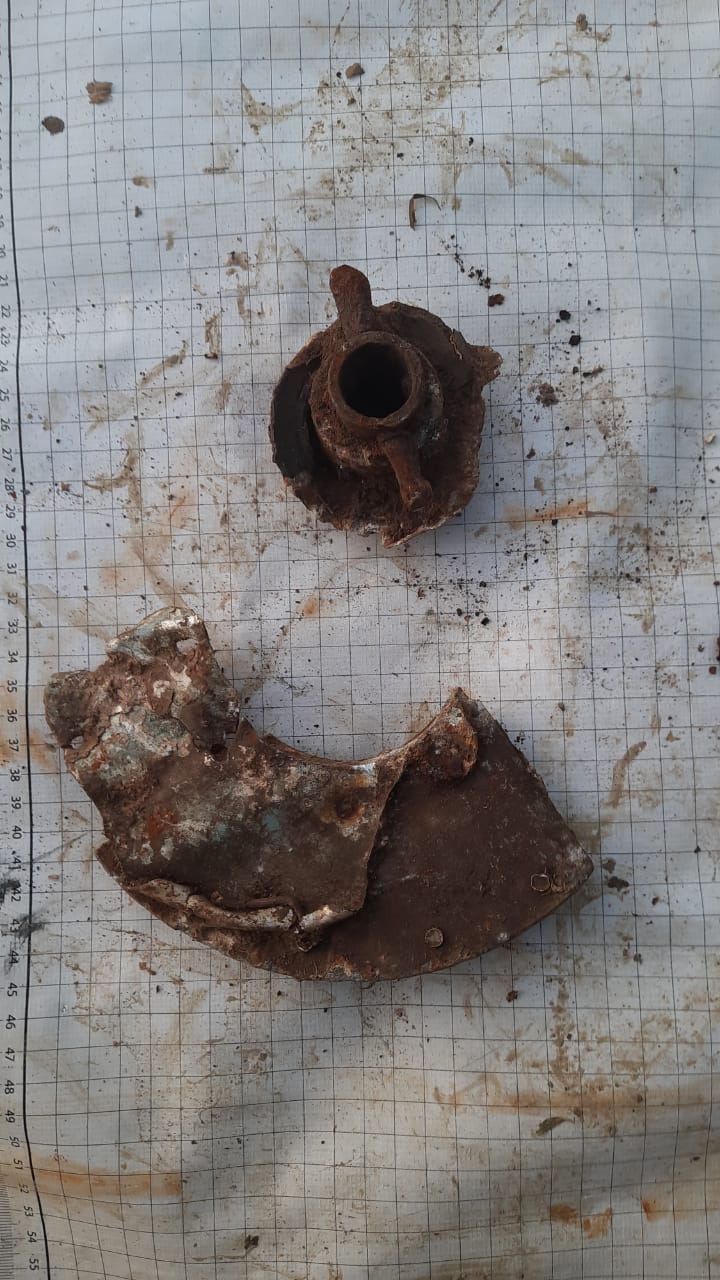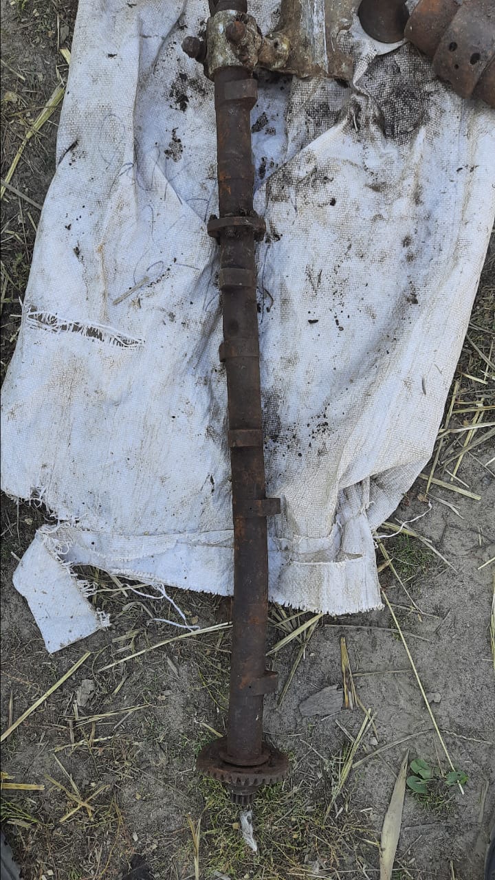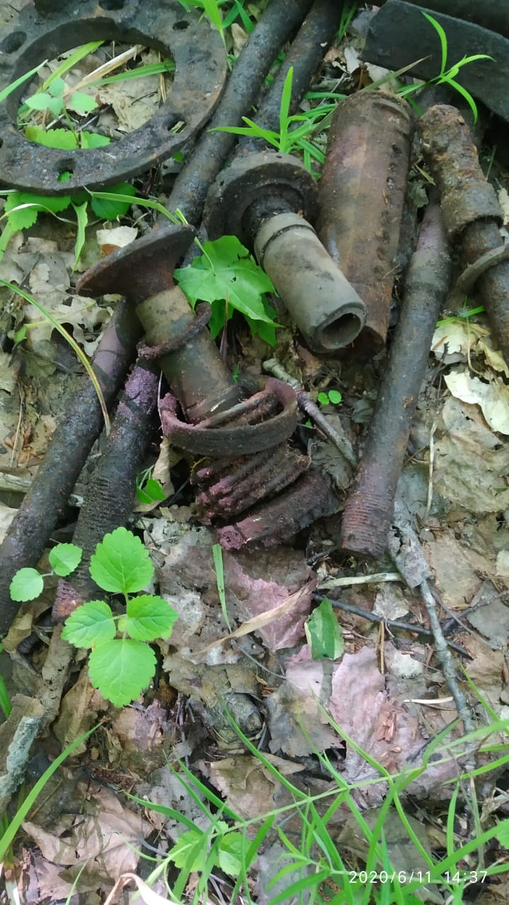 На первом месте воронки нет,железа немного,и по маркировкам ,как будто гансовское.Видно ,что детали от самолета,набор клапанов с номерами эл.карандашом,распредвал,куча тяг с резьбой,обрывок шатуна с пальцем.Палец по толщине не подходит к нашим моторам,из тех ,что сам знаю.Детали карбюратора с номером.Определить от какого самолета не смогли.Нужна Ваша помощь.