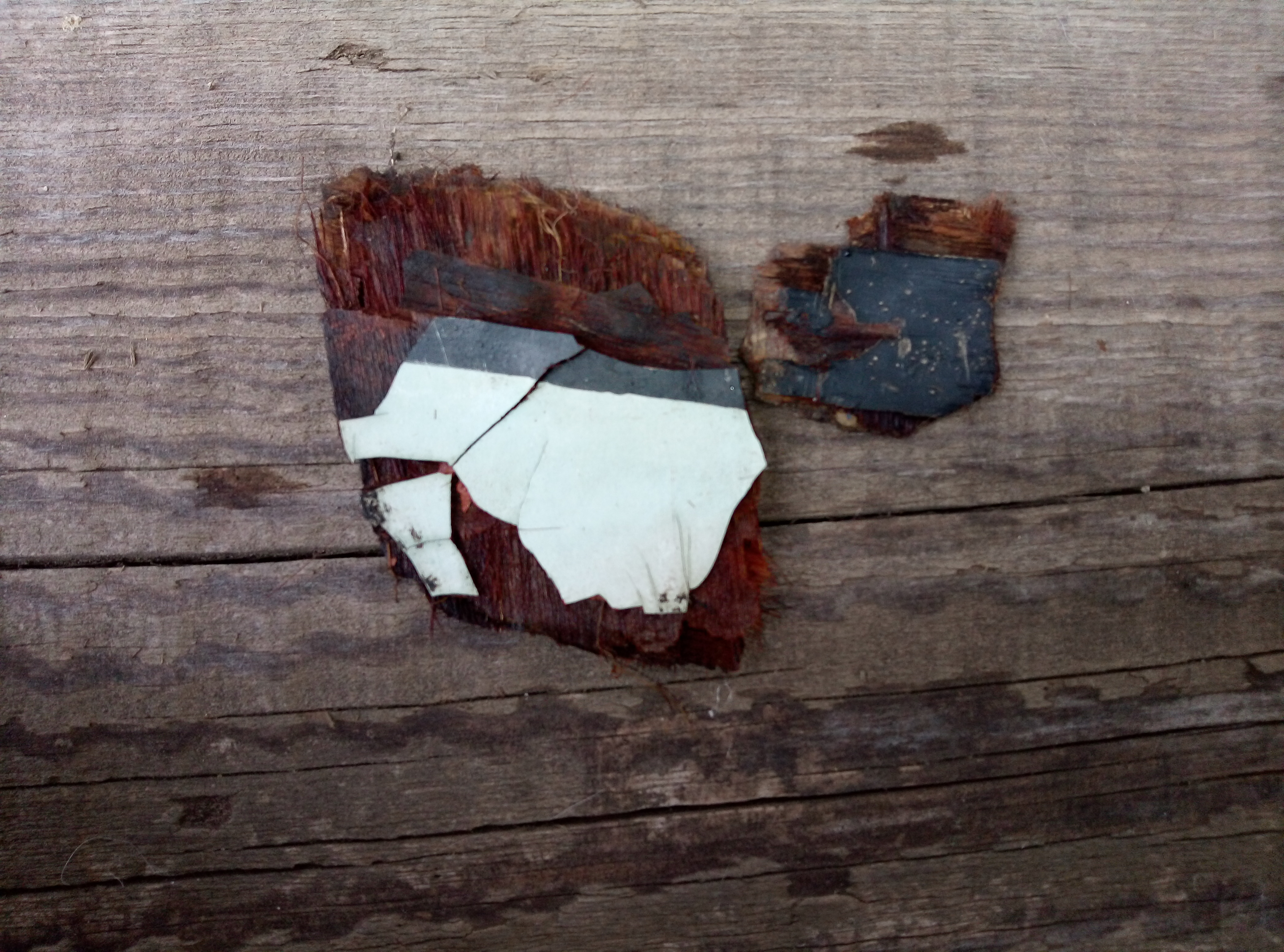 И ещё кое-что с раскопа. Плексиглас со следами копоти, значит самолёт горел? Эти Кусочки прессованной фанеры со слоем краски(двух цветов) может быть с какого-нибудь самолёта или это бытовой хлам? Клавиша передатчика?