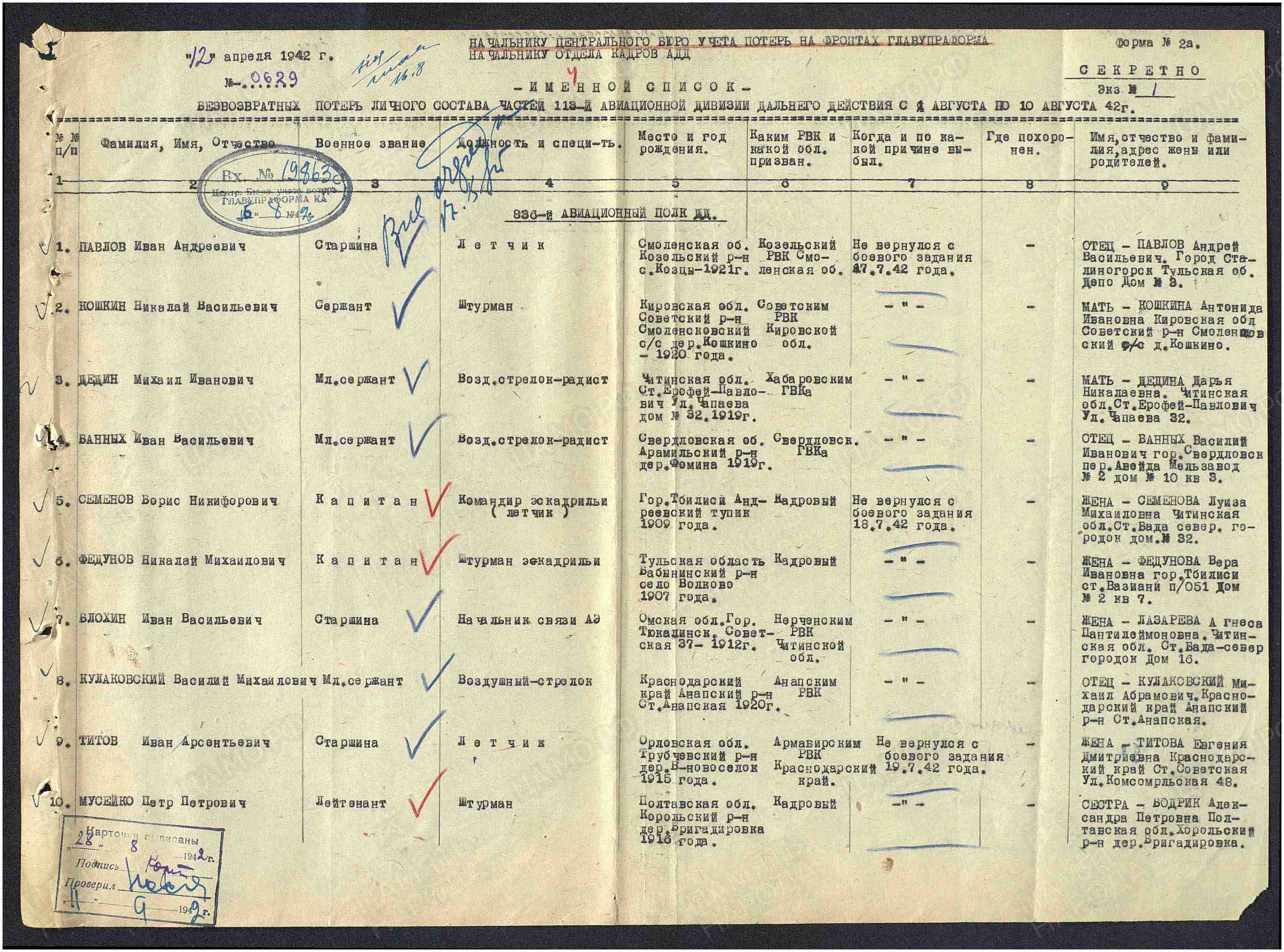 Опубликовано: 14 ноября, 2021 К версии о летчике л-те Чернове.... Лет 10 назад,уважаемый всеми Михаил Николаевич Романов,светлая ему память,находясь в Питере в больнице после первого инфаркта,просил меня, в разговоре по моб.тлф,посмотреть УПК летчика Чернова .Я тот момент звонил Мише будучи в ЦАМО и постарался помочь ему в этом вопросе. Когда,я сообщил Михаилу,что летчик Ил-4 из 752 апдд 24 ад,мл.л-т Чернов Александр Дмитриевич,1912г.р.Уроженец г.Ленинграда,призванный из ГВФ Сталинобадским РВК в 1939г.,НВБЗ в ночь с 9 на 10 июля из р-на Каратояк и согласно записи в ЖБД был замыкающим экипажем в колонне 10 самолетов и в р-не цели атакованным двухмоторным истребителем ,ранен и погиб вместе с самолетом.Остальным членам экипажа удалось спастись с парашютами и вернуться в часть. Михаил был озадачен этой информацией о р-не падения самолета и пришел в недоумение.... Из его слов я понял,что интересовавший его самолет был найден в р-не между Псковской и Ленинградской областями. И номера этого самолета повторяют-дублируют номера самолета Чернова....Т.е.в Мишиной базе были эти номера и они были привязаны к фамилии Чернов. Вот такая абракадабра получилась....Возможно Константин Эдуардович в курсе того ДБ-3 или Ил-2 .который оказался двойником Каратоякского Ил-4 по номерам моторов или планера самолета. 0 Упомянуть пользователя Поделиться сообщением Ссылка на сообщение Поделиться на других сайтах