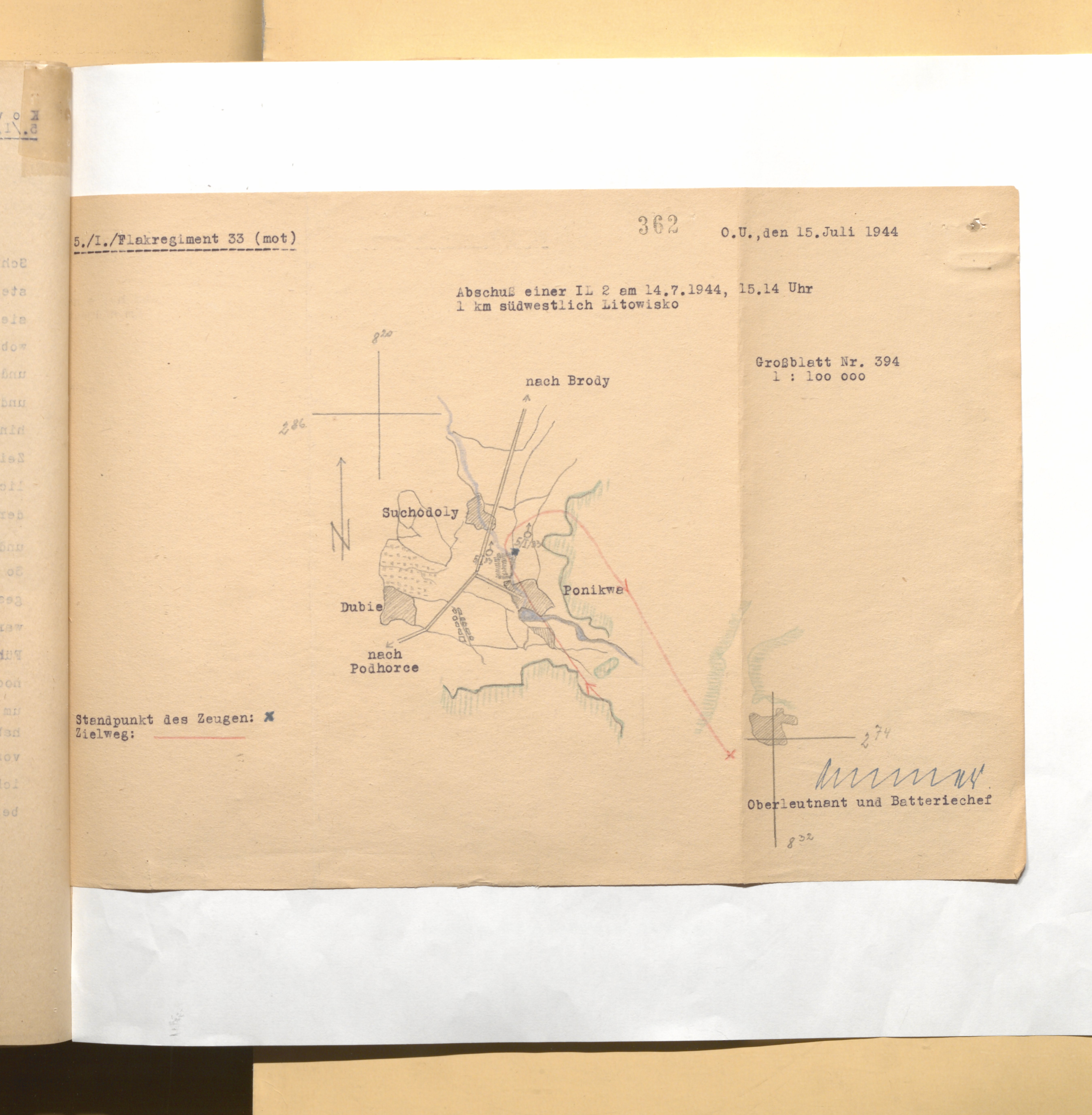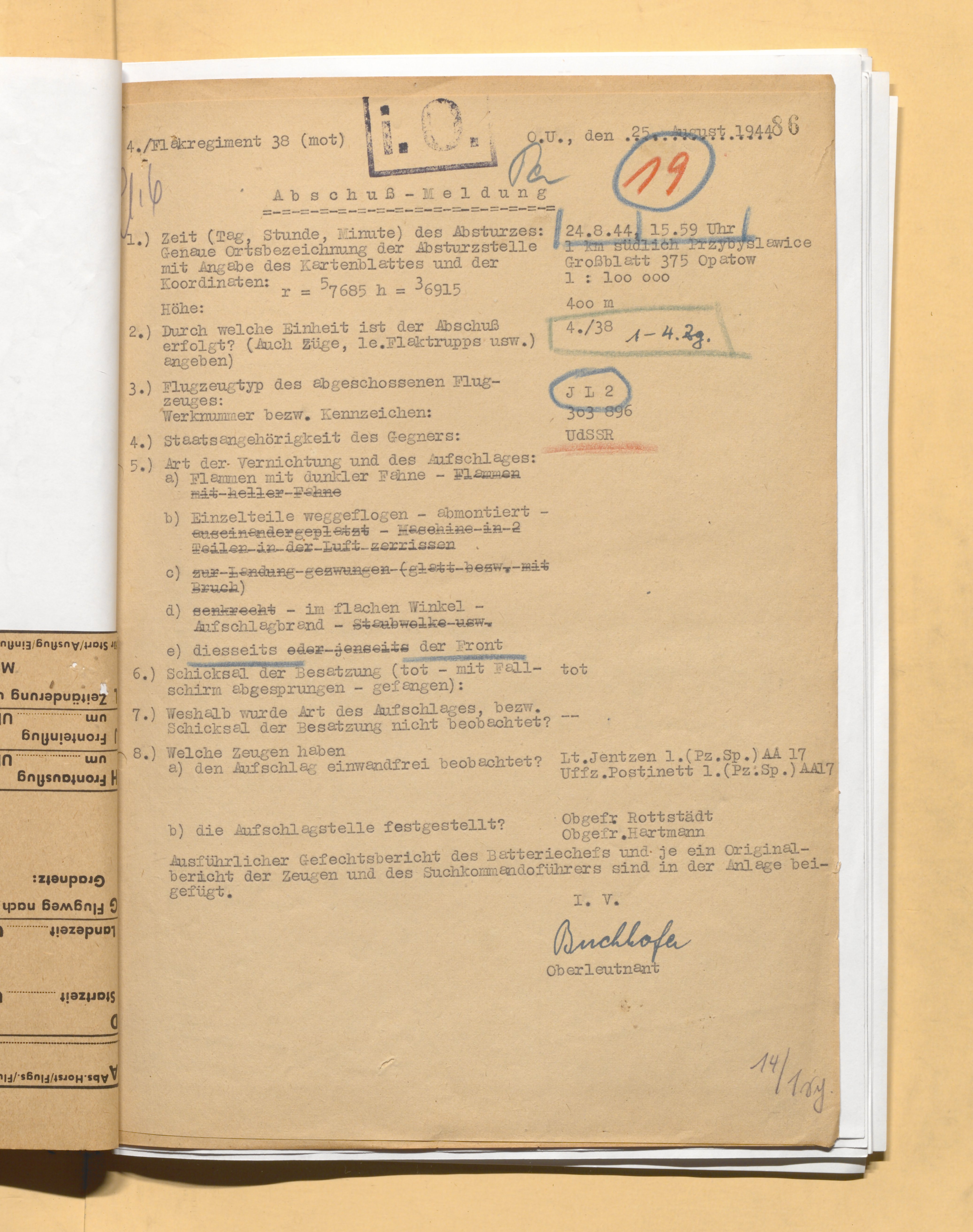 26.8.1944 11.39 мск сбит ЗА Ил-2 №8997 р-н Опатув (Сандомирский плацдарм), 1 км ЮВ Waworkow. Экипаж погиб.