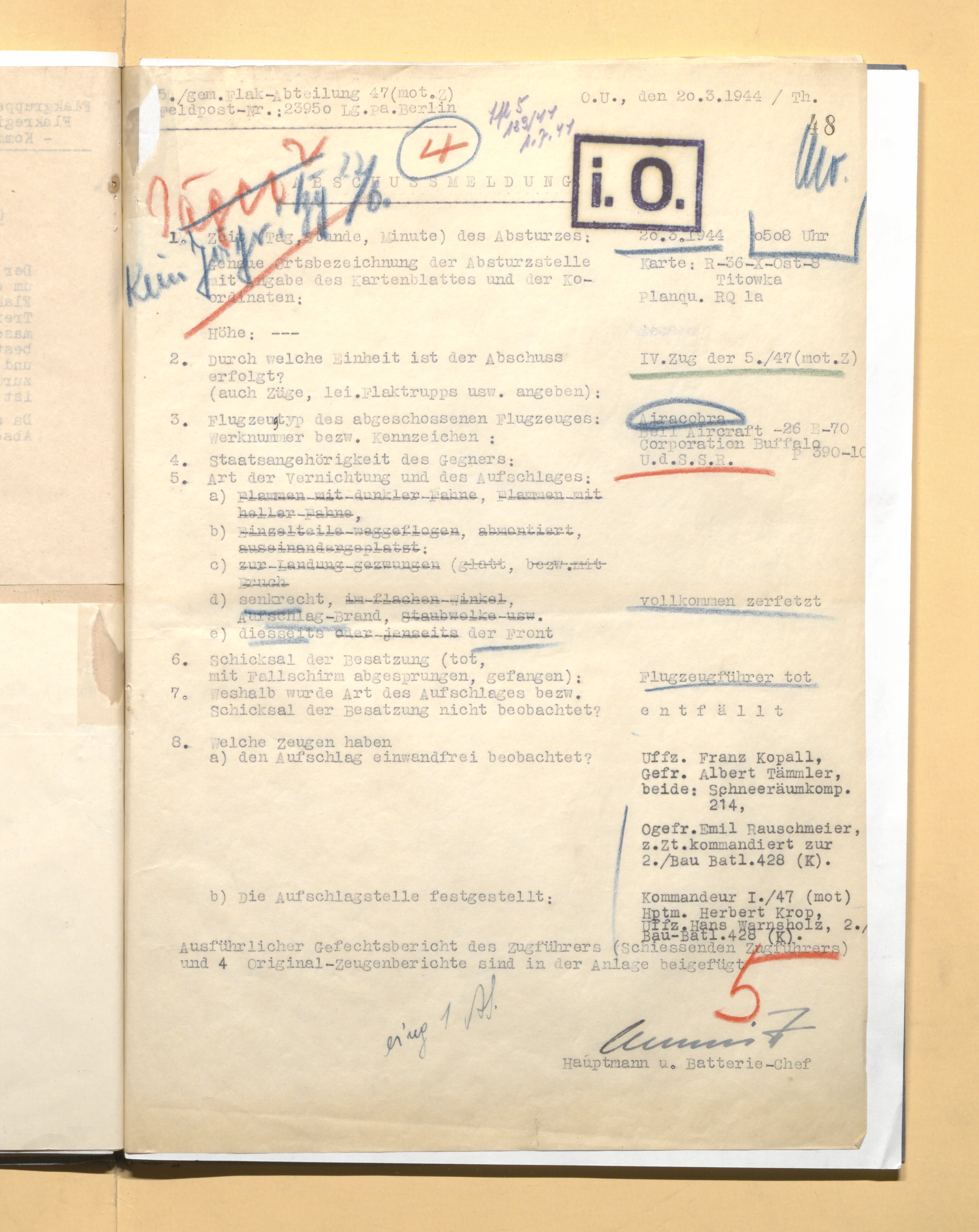 В списках 1 гв. сад 20.3.1944 нбз Аэрокобра № 220615. Кроме этого в тот день Аэрокобра № 224789 катастрофа. В отдельном списке потерянных моторов за 20.3.1944 нбз Аллисон Е-19 № 42-99356.