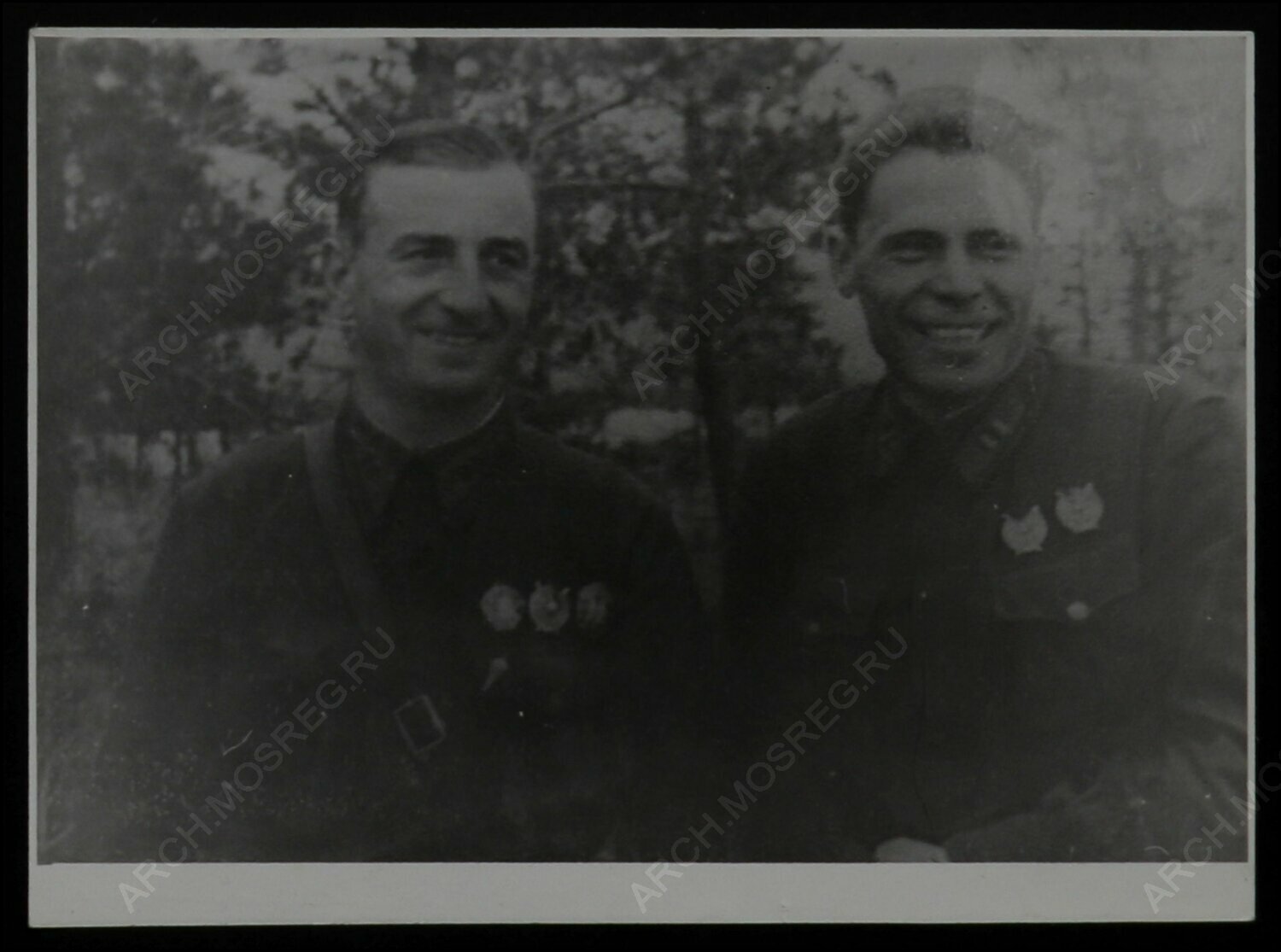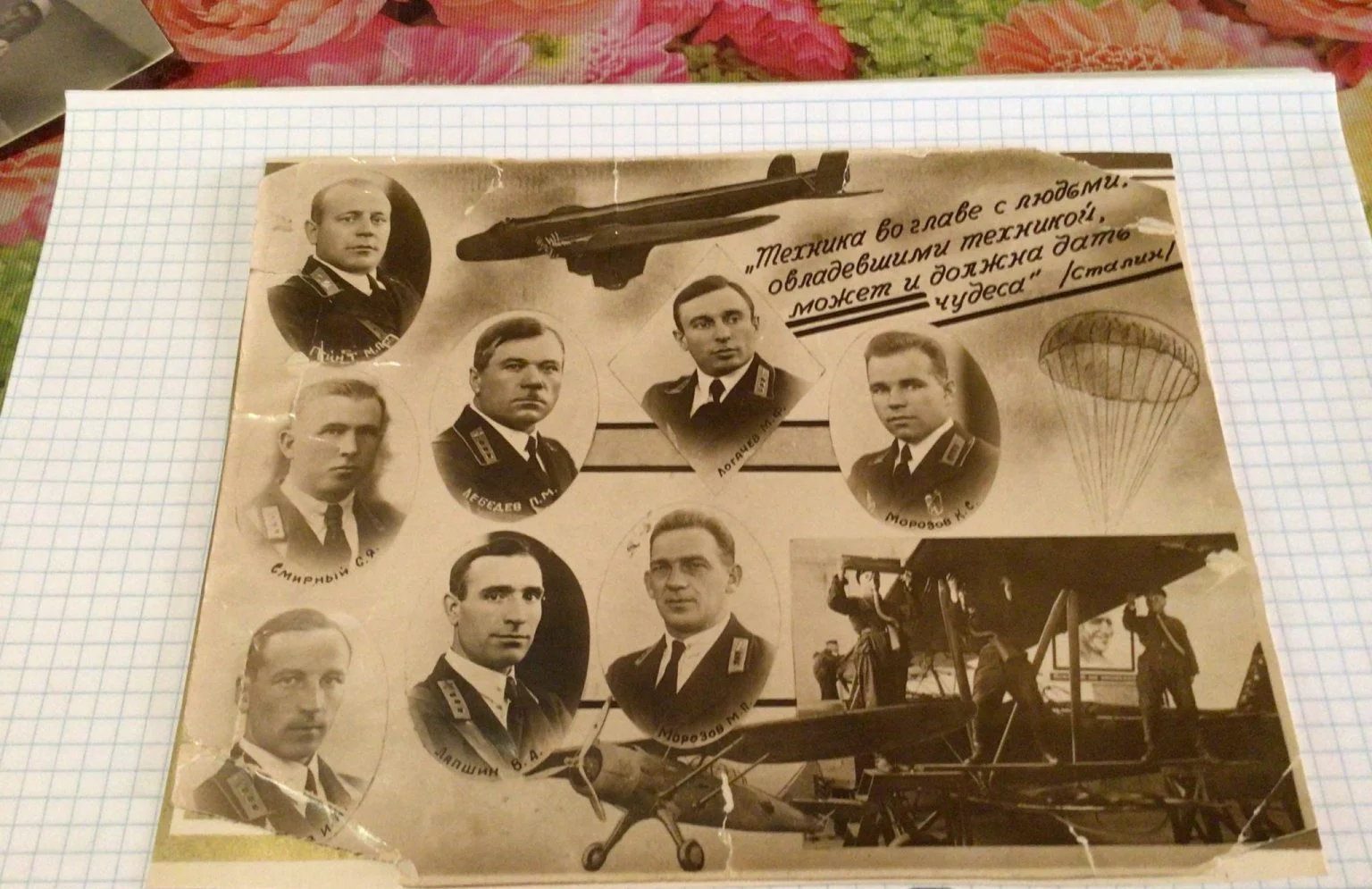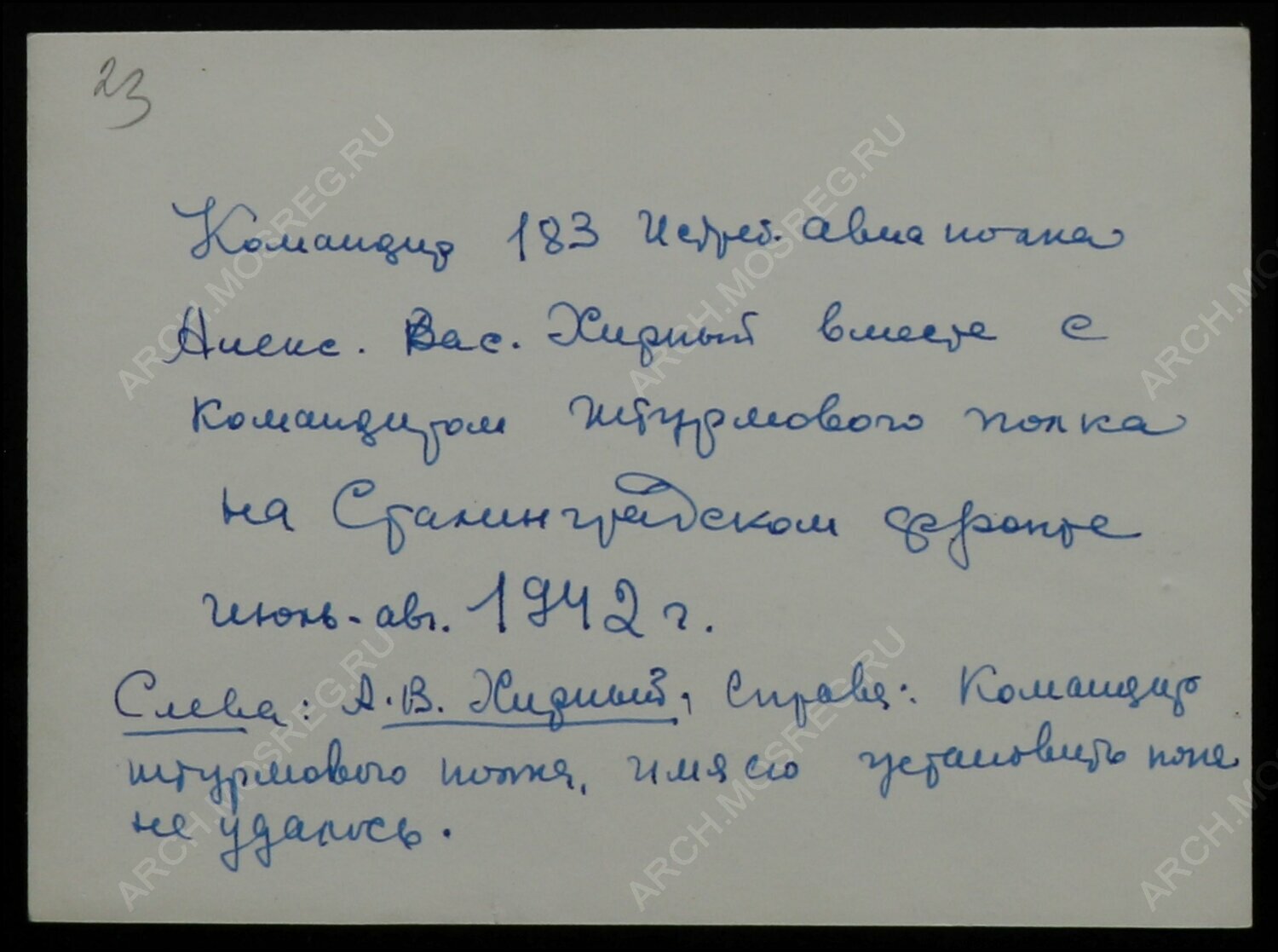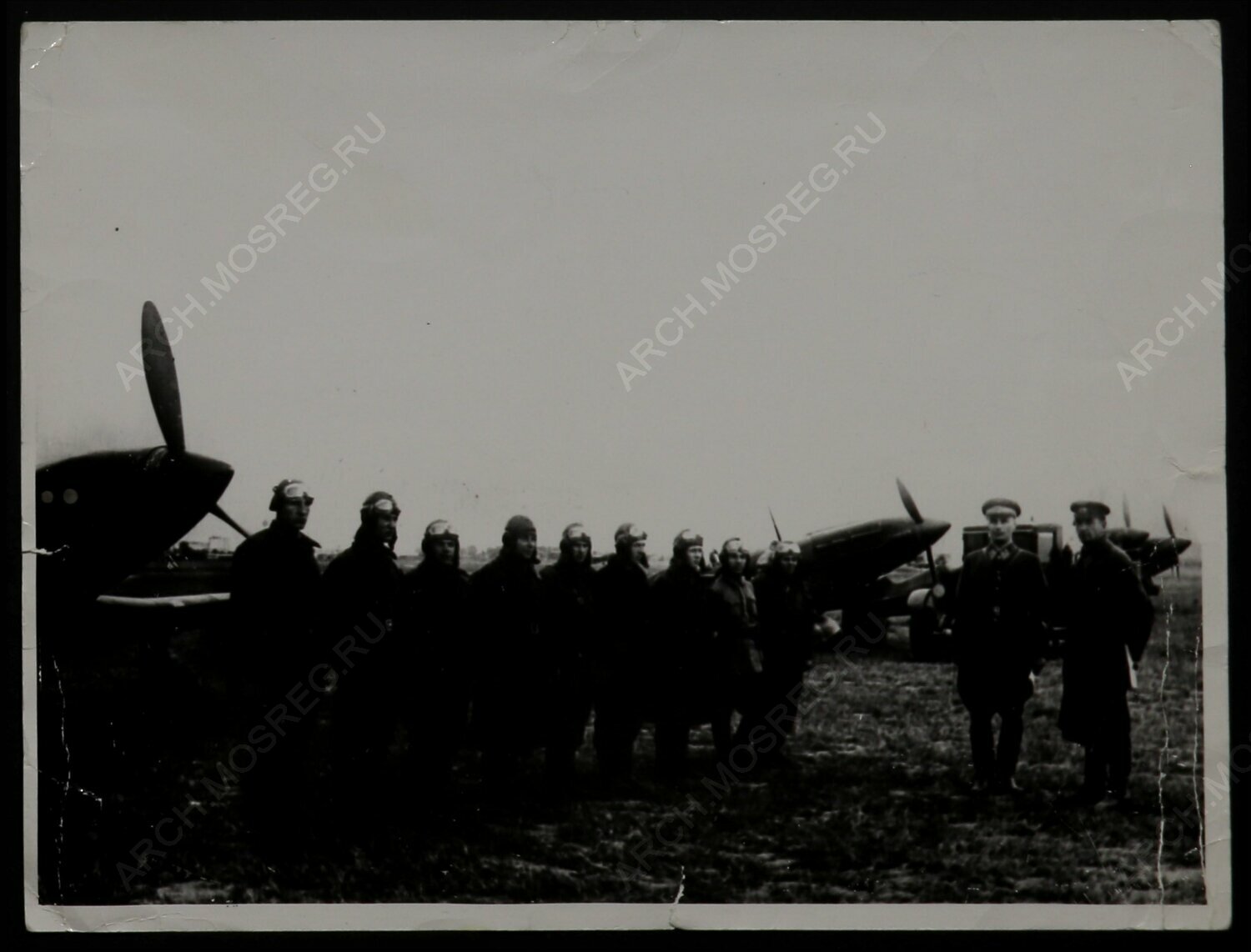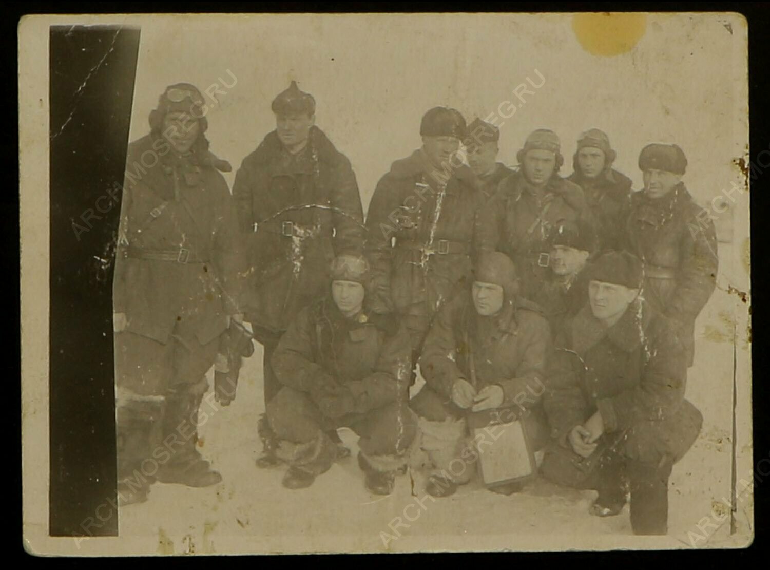 - летчики, ст. авиатехник Поляков, командир авиабригады И.М.Чупров, инспектор летчик авиабригады Шишков. 1942 г