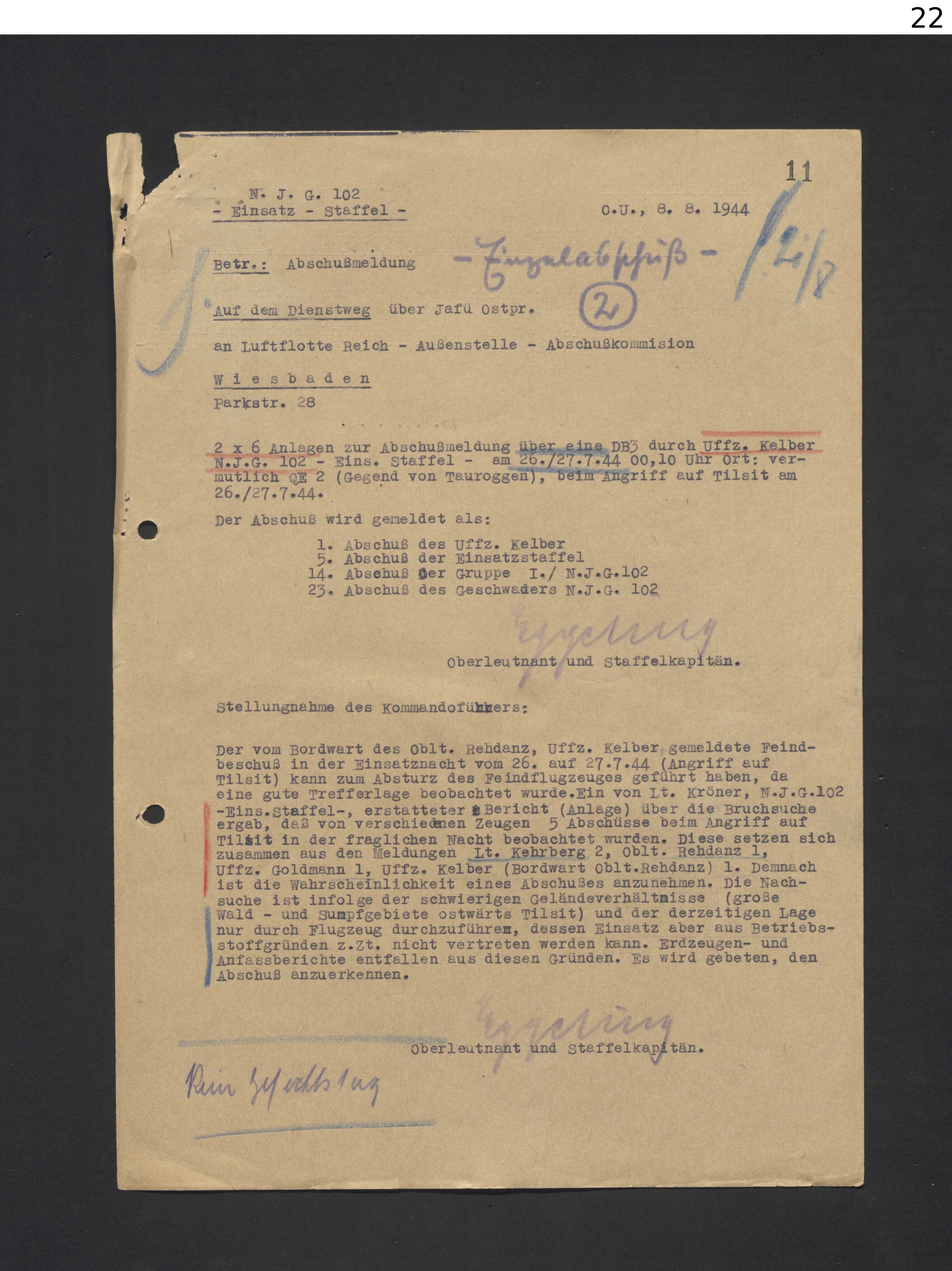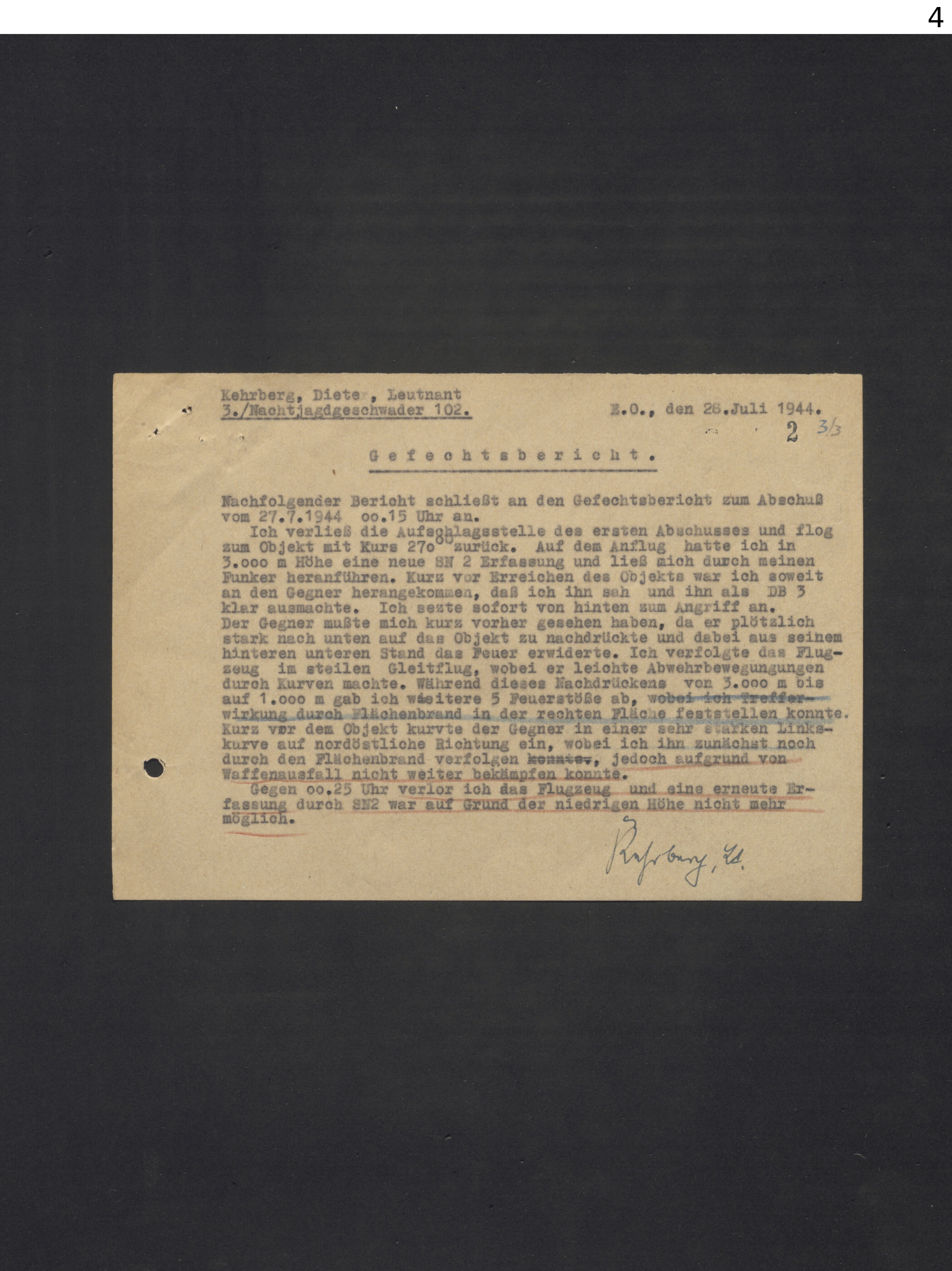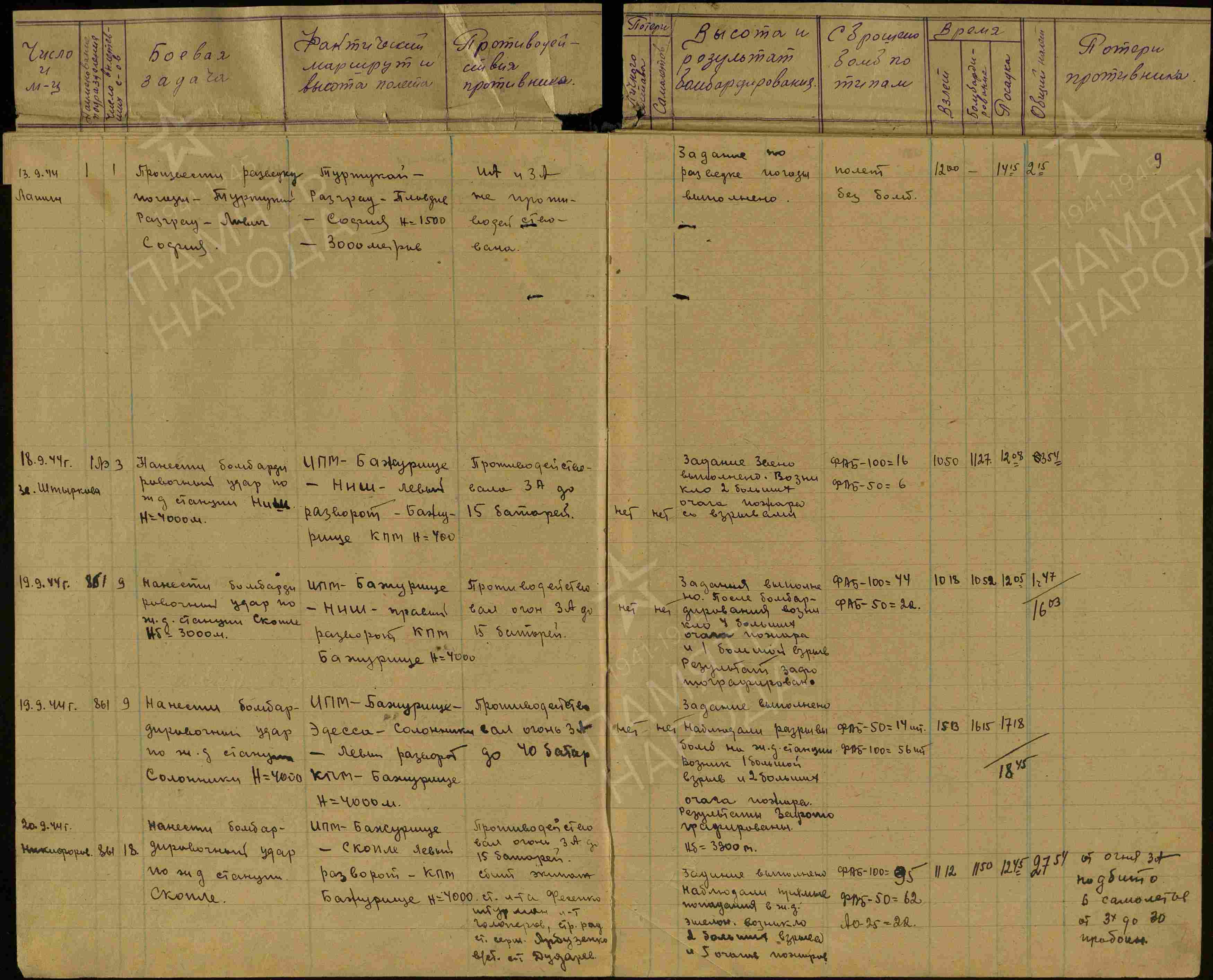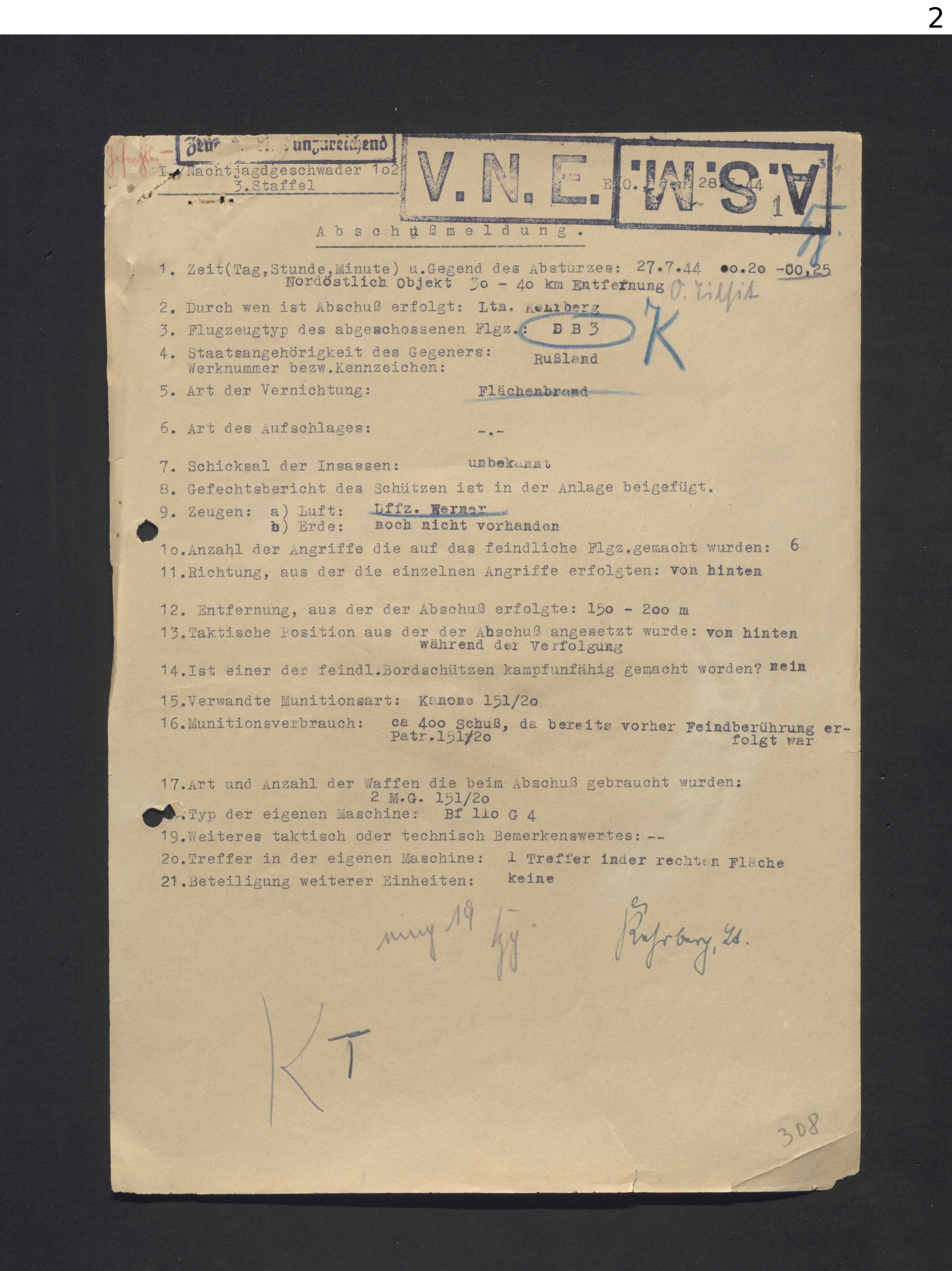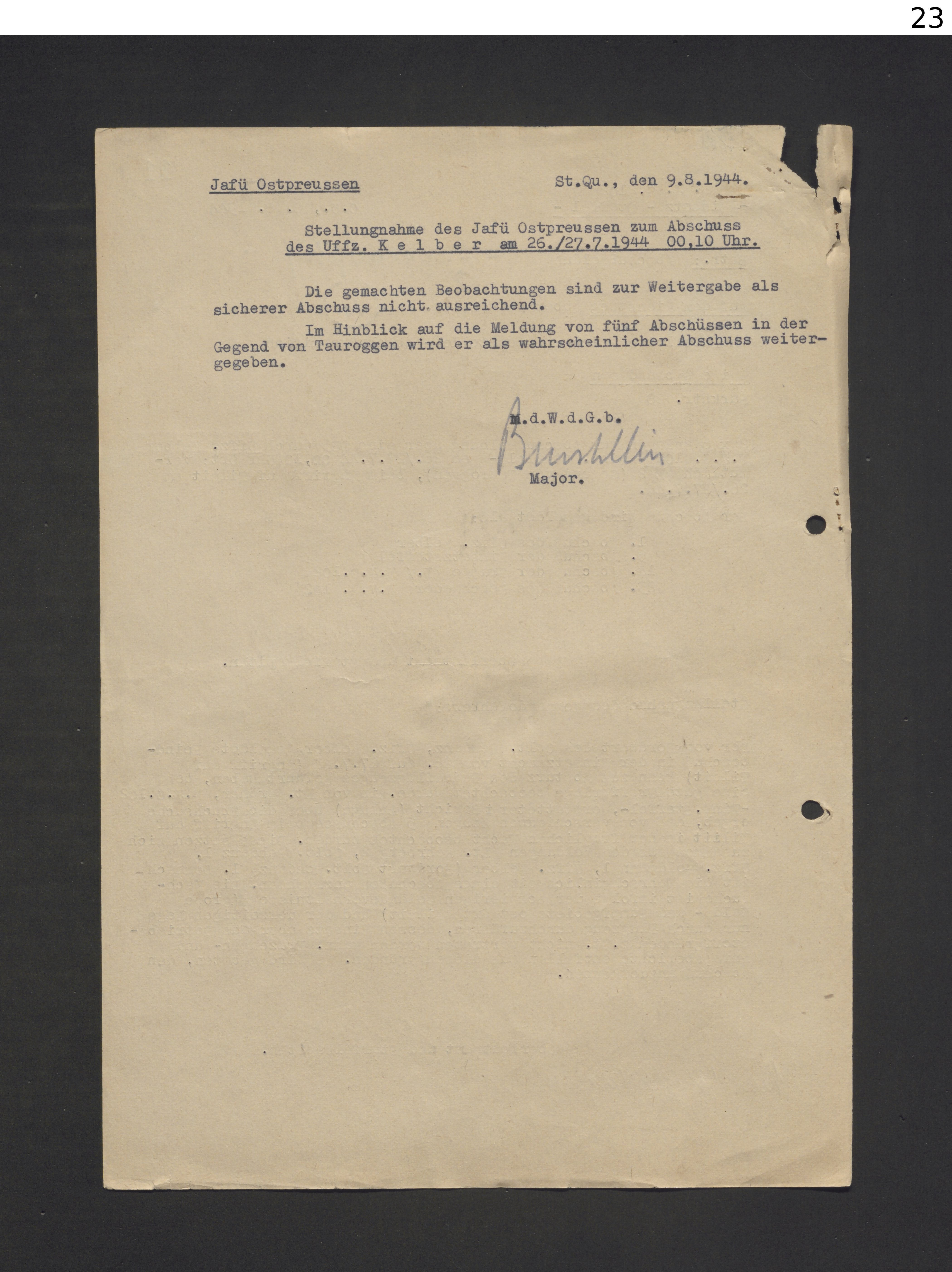 1-13 примерно 0.15-0.25 берлинского 27.7.1944. Упоминаются Ил-4 и Ли-2 в районе Тильзит, Восточная Пруссия. Ли-2 сбит раньше, чем Ил-4, точно время не указано.