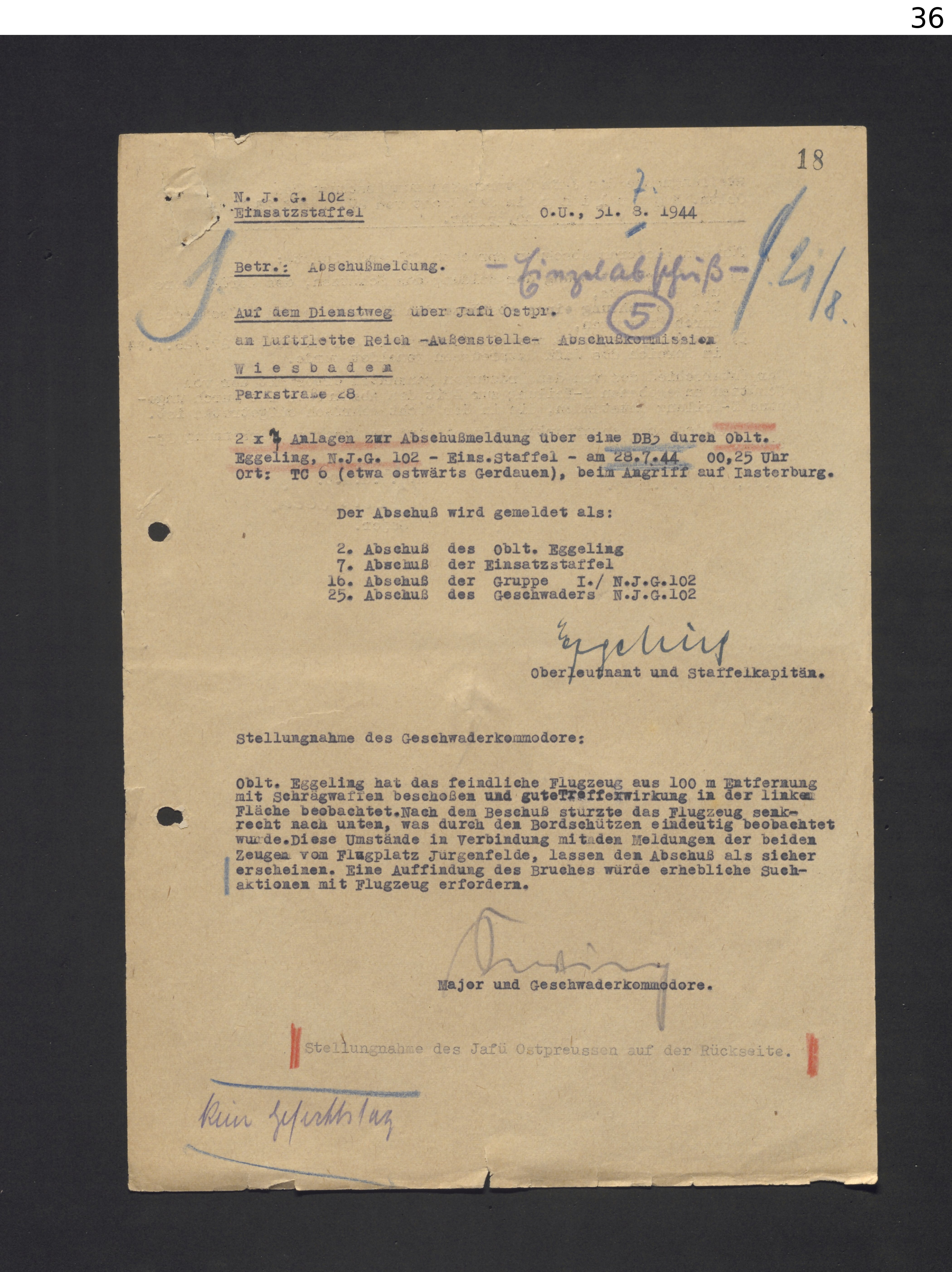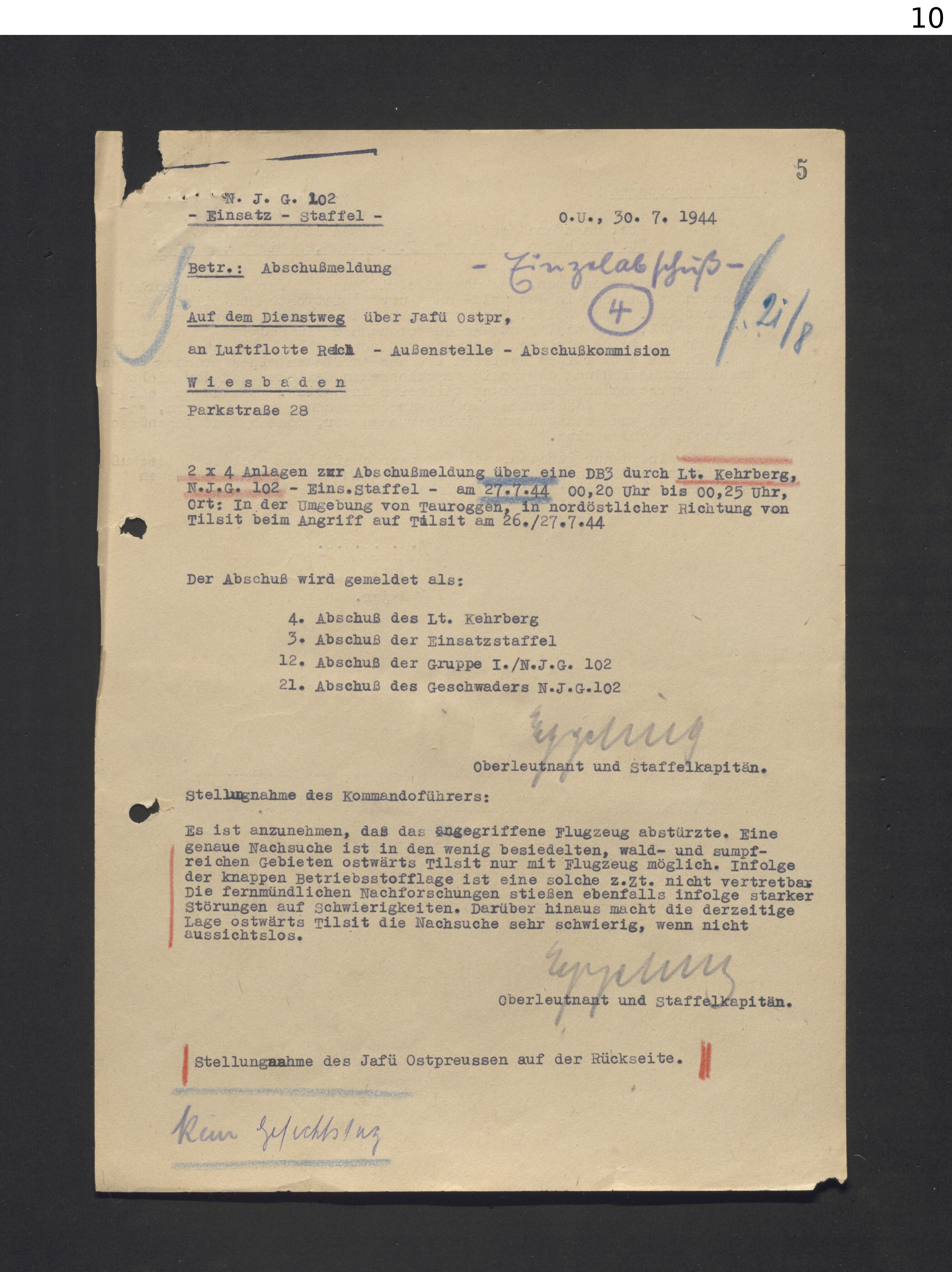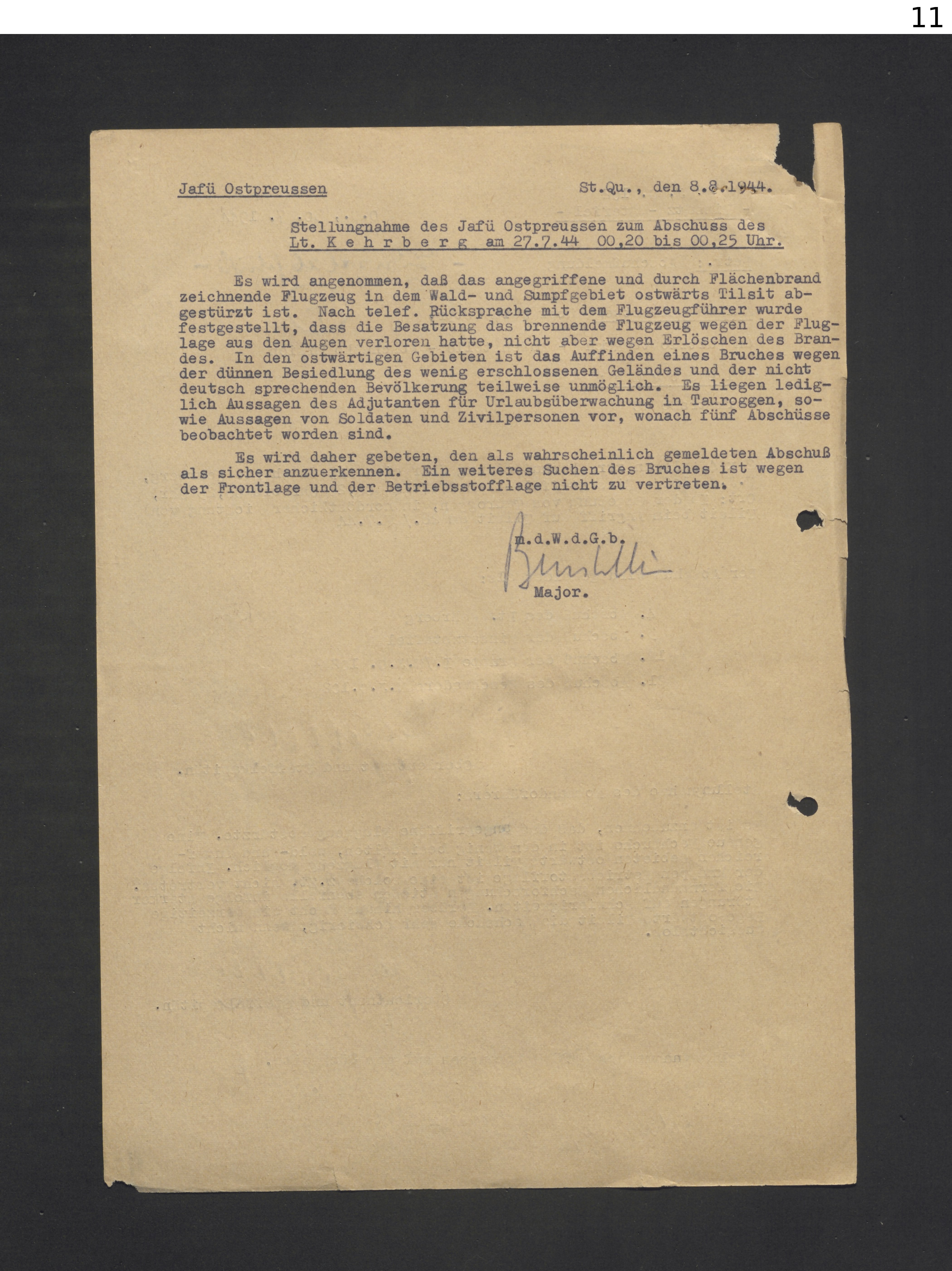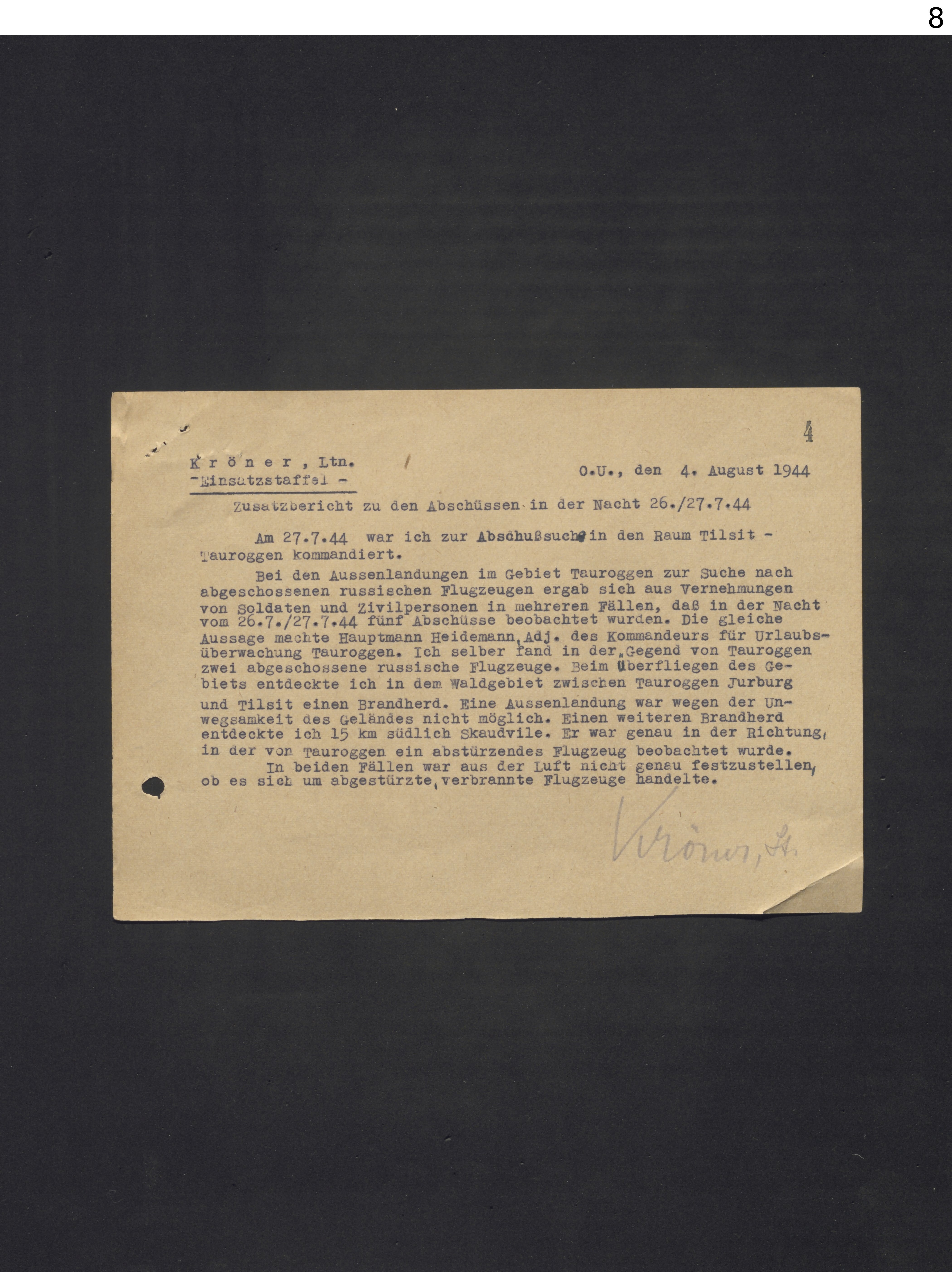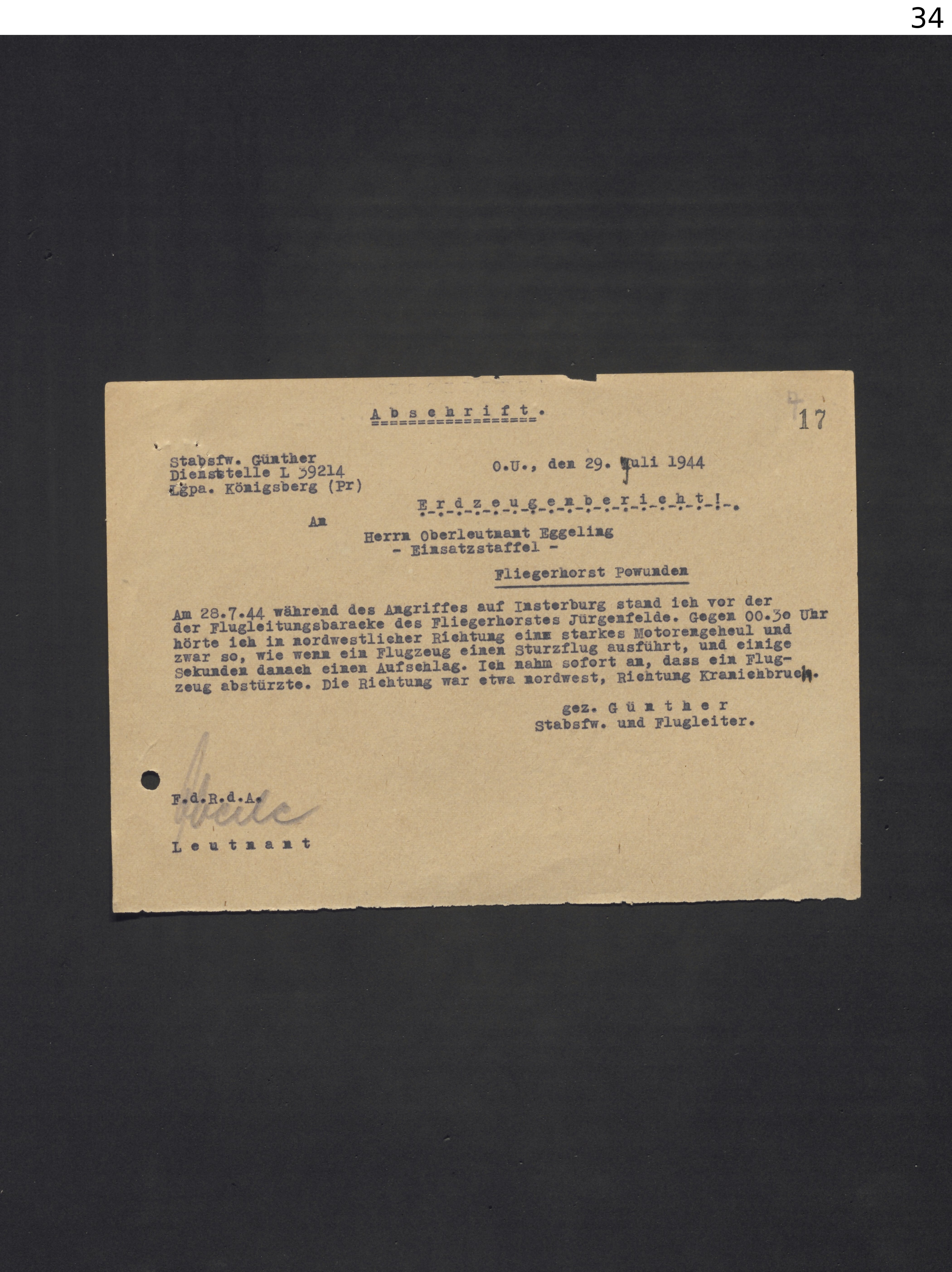 1-13 примерно 0.15-0.25 берлинского 27.7.1944. Упоминаются Ил-4 и Ли-2 в районе Тильзит, Восточная Пруссия. Ли-2 сбит раньше, чем Ил-4, точно время не указано.