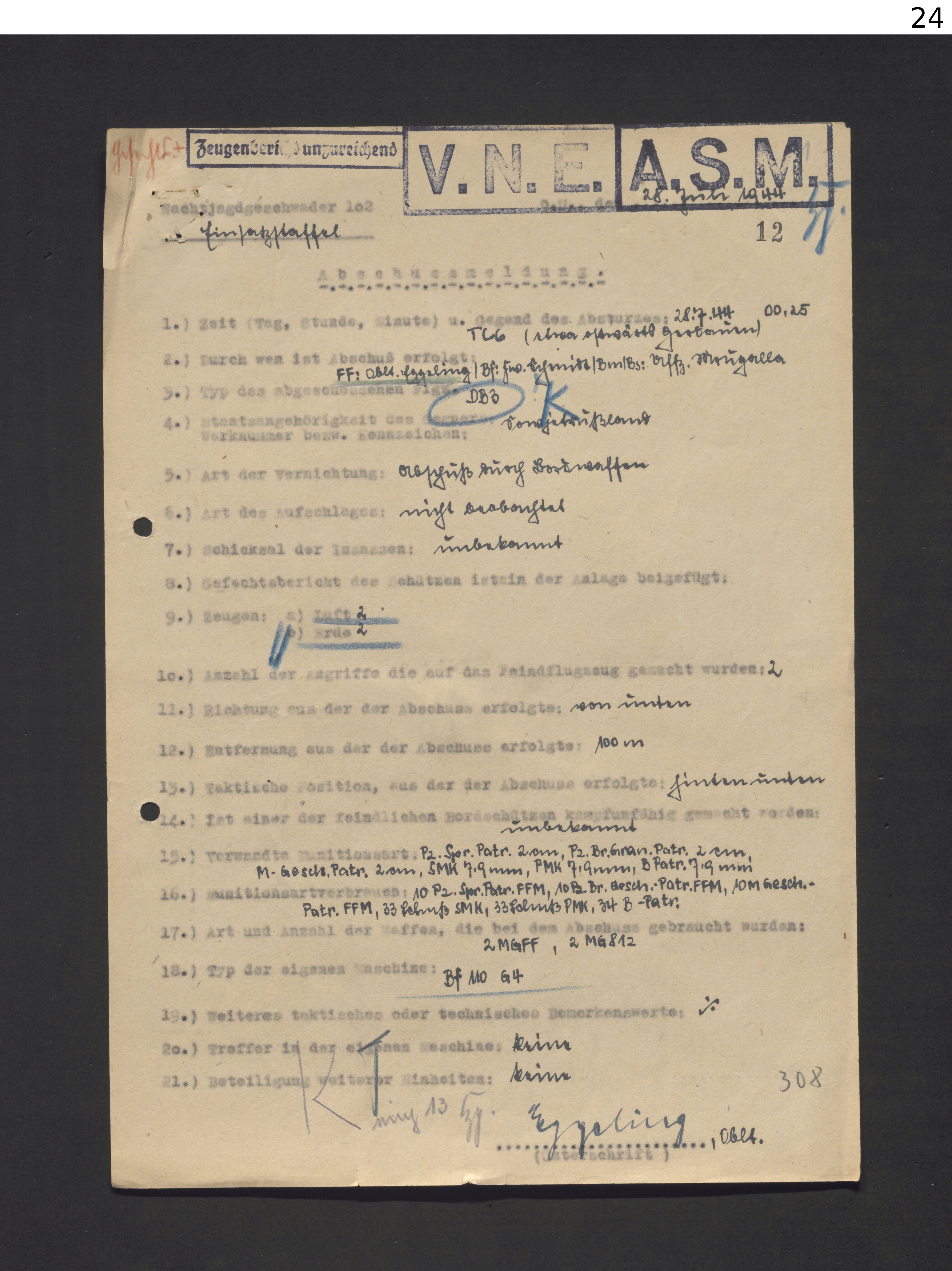 У немцев: Ил-2 сбит ЗА 3.9.1944 в 10.20 берлинского в районе Ломжа, Польша. Номер похожий на серийный мотора 259908 и часть номера Ил-2 0732. Еще хвостовой номер 24? Экипаж расстрелян при побеге.