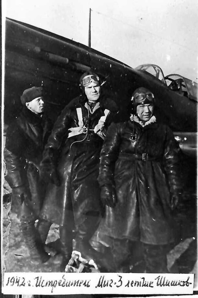 - у самолета истребителя МИГ-3 Шишков, Чупров и Емельянов, Москва. 1942 г.