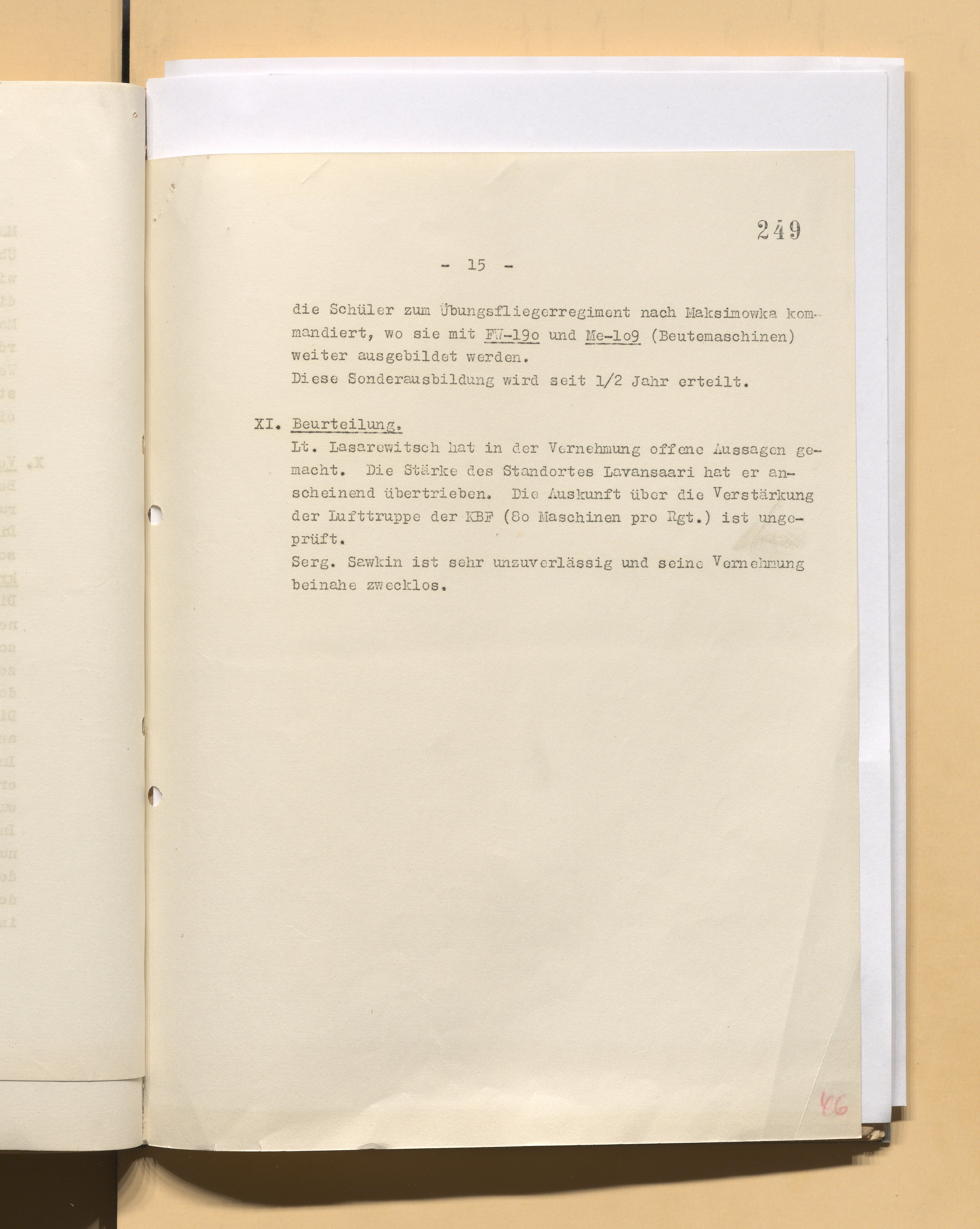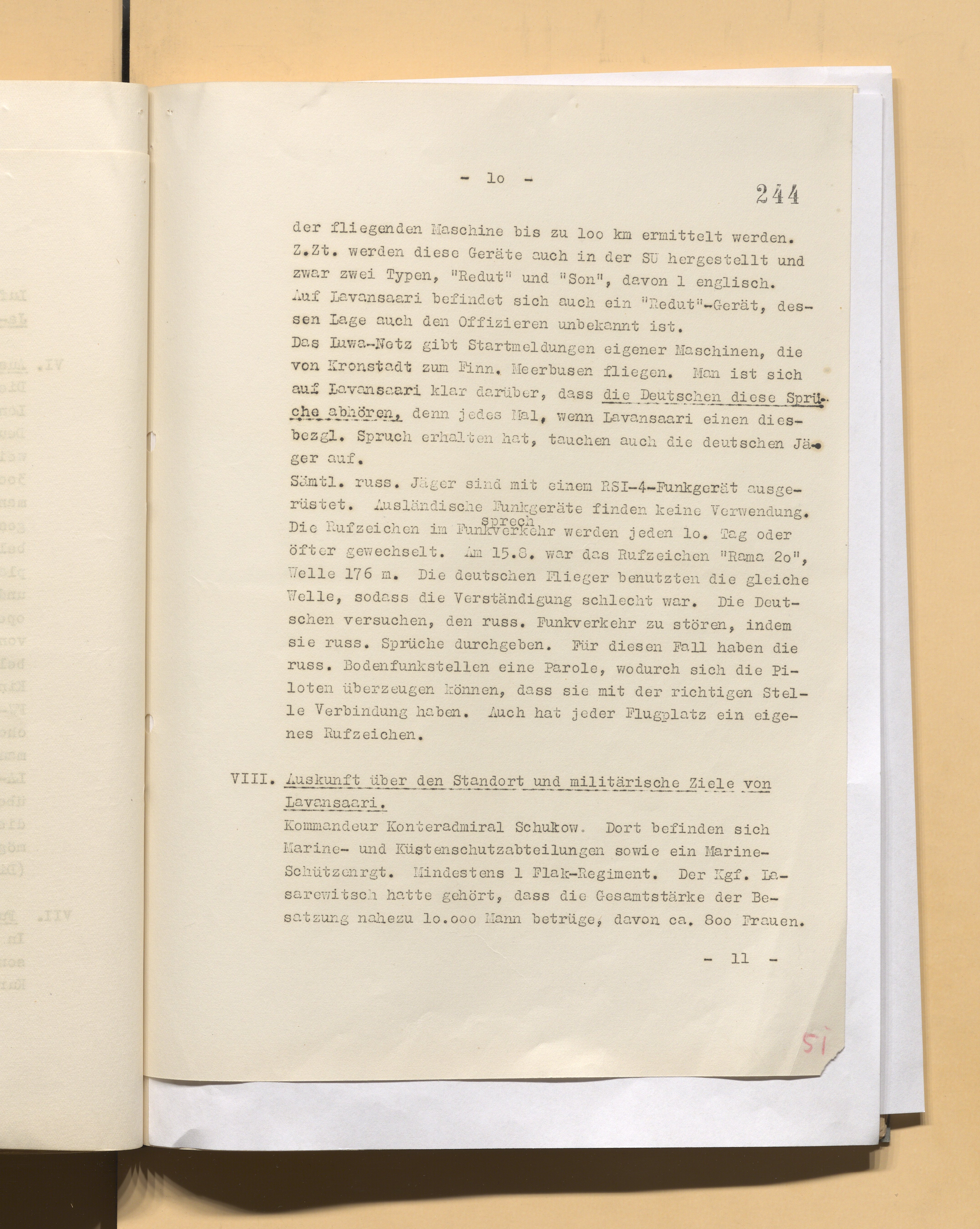 Докладная немецкая по допросам двух пленных пилотов из 3 гв. иап ВВС КБФ базировались на остров Лавенсаари.