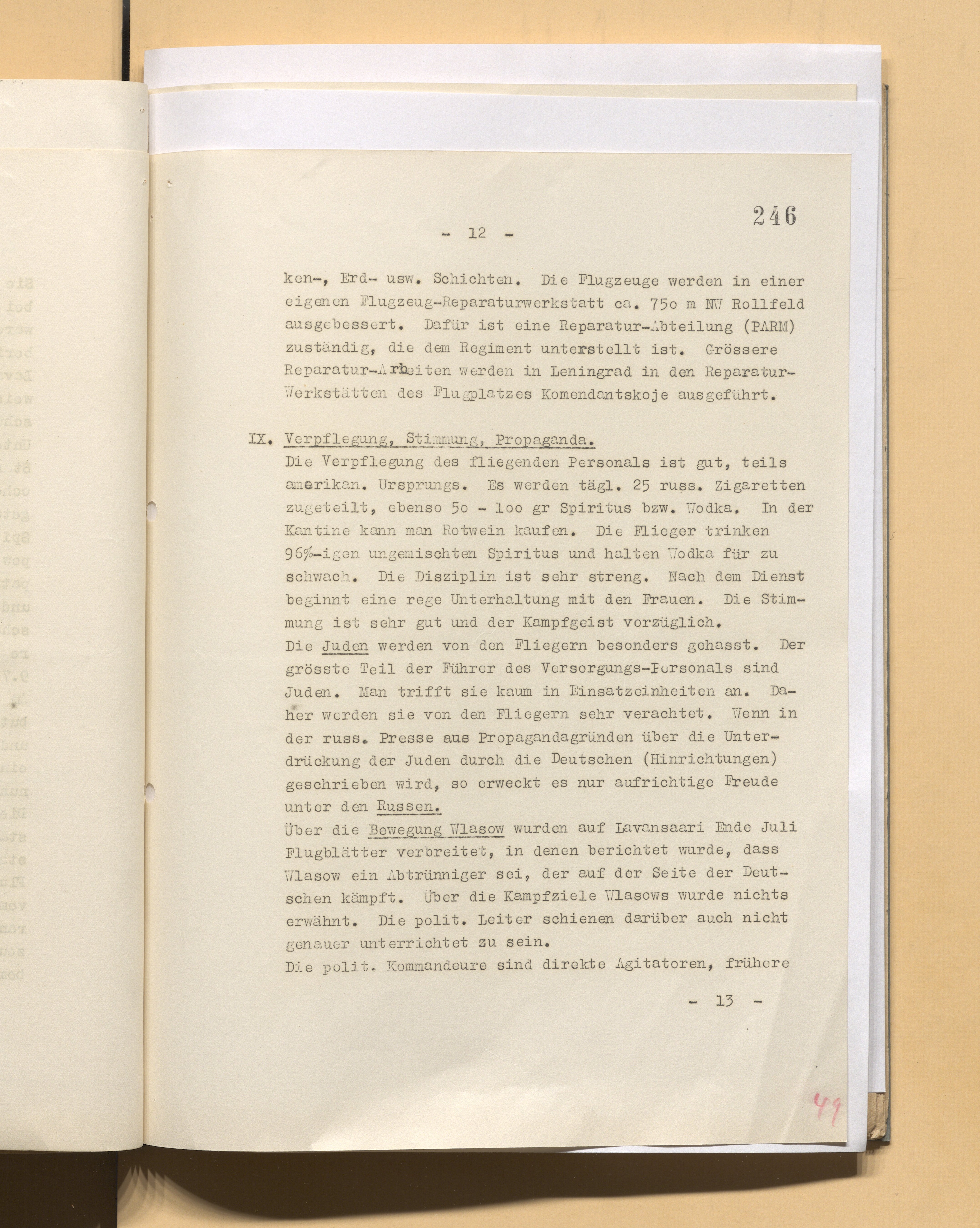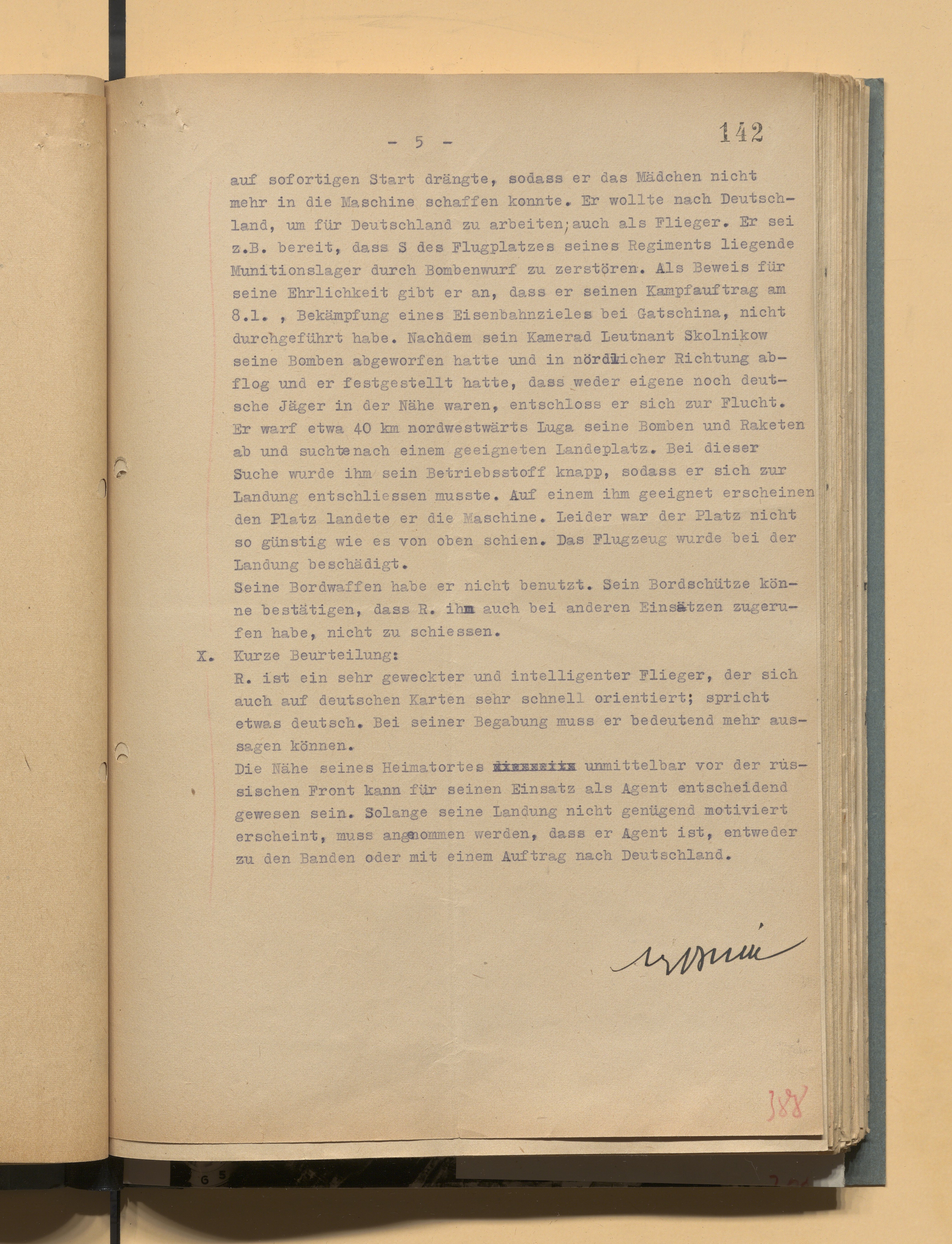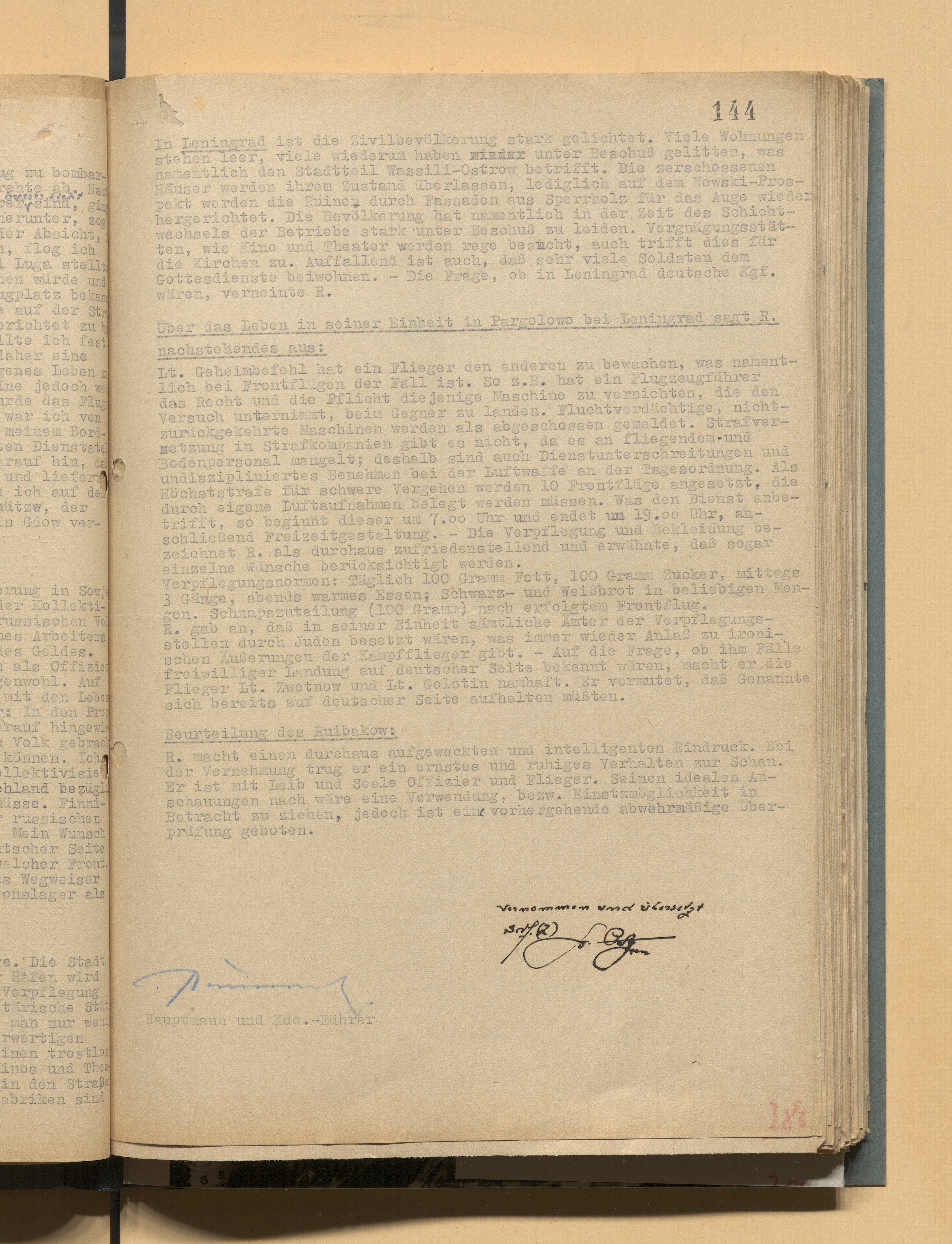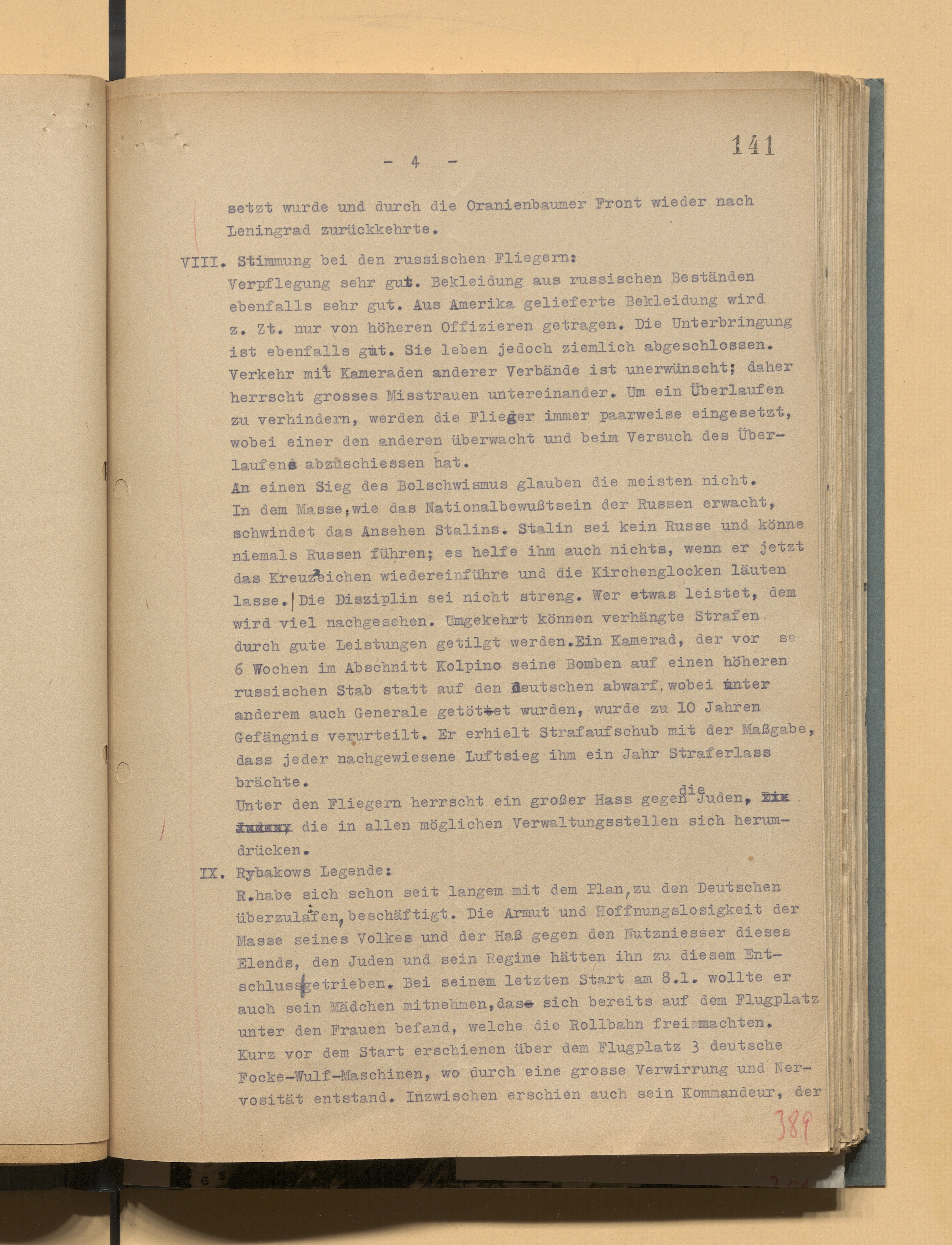 Докладная по допросу летчика 943 штурмового авиаполка лейтенанта Рыбакова Николая Кузьмича (1918 г.р., уроженец ст. Капорье Ораниенбаумского р-на Ленинградской обл.). Сбит ЗА 08.01.44 г. в районе г. Слуцк Ленинградской обл. (в/стрелок мл. сержант Кузьменко Василий Матвеевич, 1918 г.р., уроженец с. Катериновка Велико-Бурлуцкого р-на Харьковской обл.).