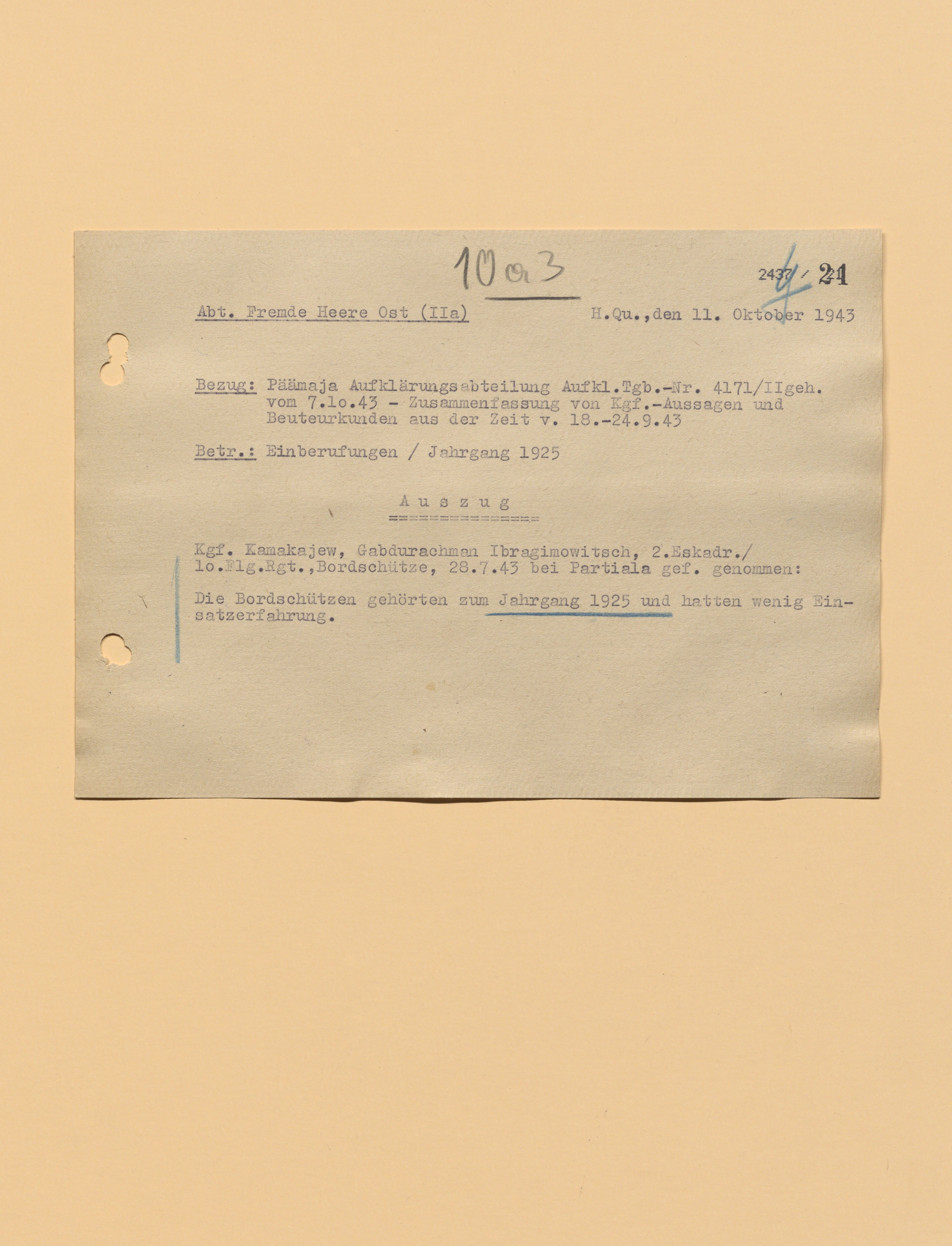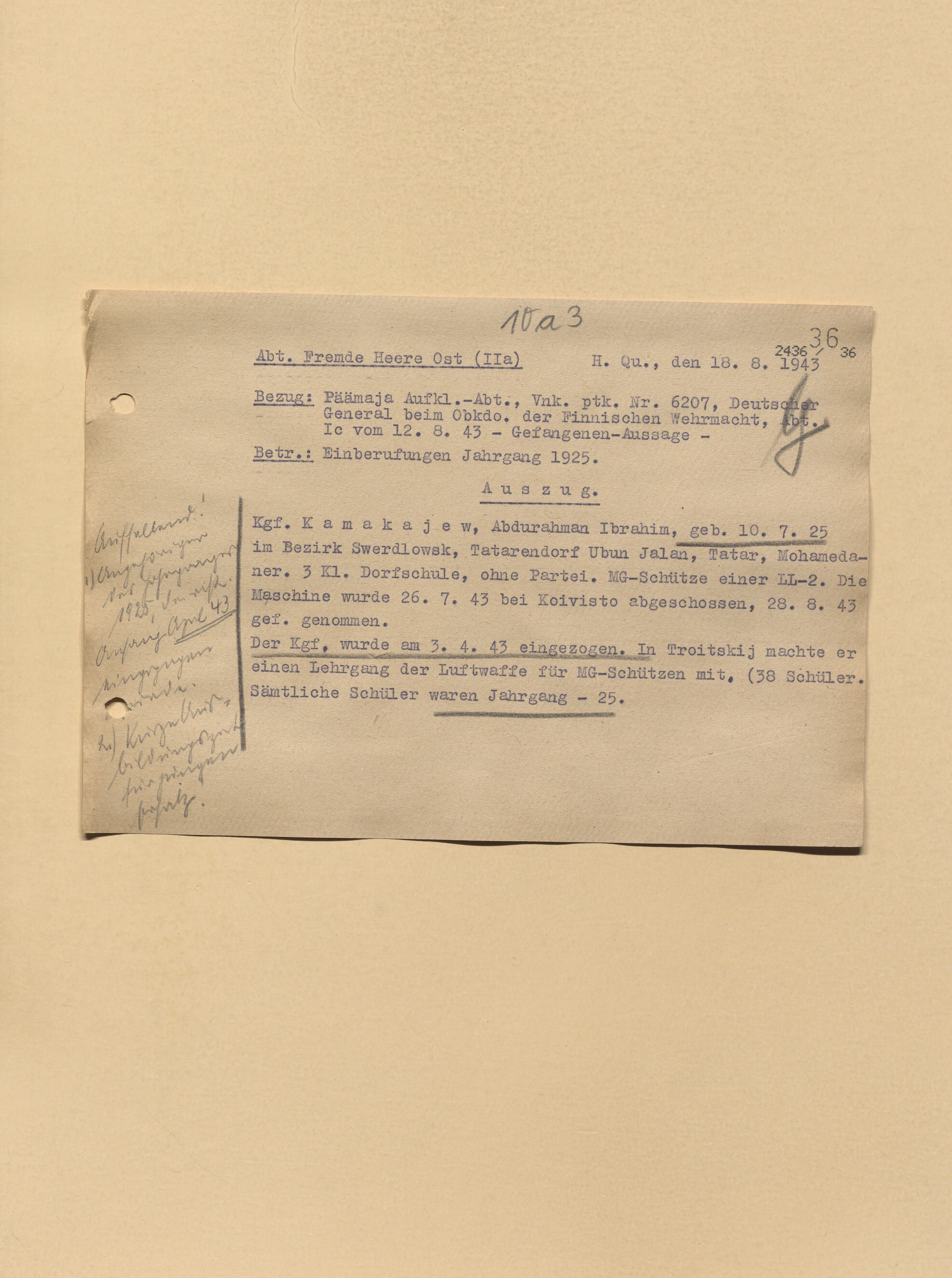 У фрицев – Камакаев Габдурахман Ибрагимович, бортстрелок, взят в плен 28.7.43 у Партиала.