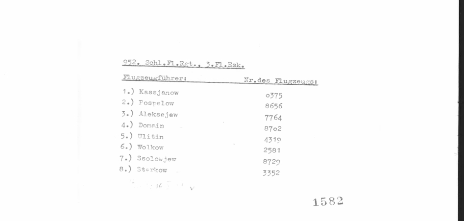 В этом документе фамилии летчиков 952 шап 311 шад и номера их самолетов Ил-2: