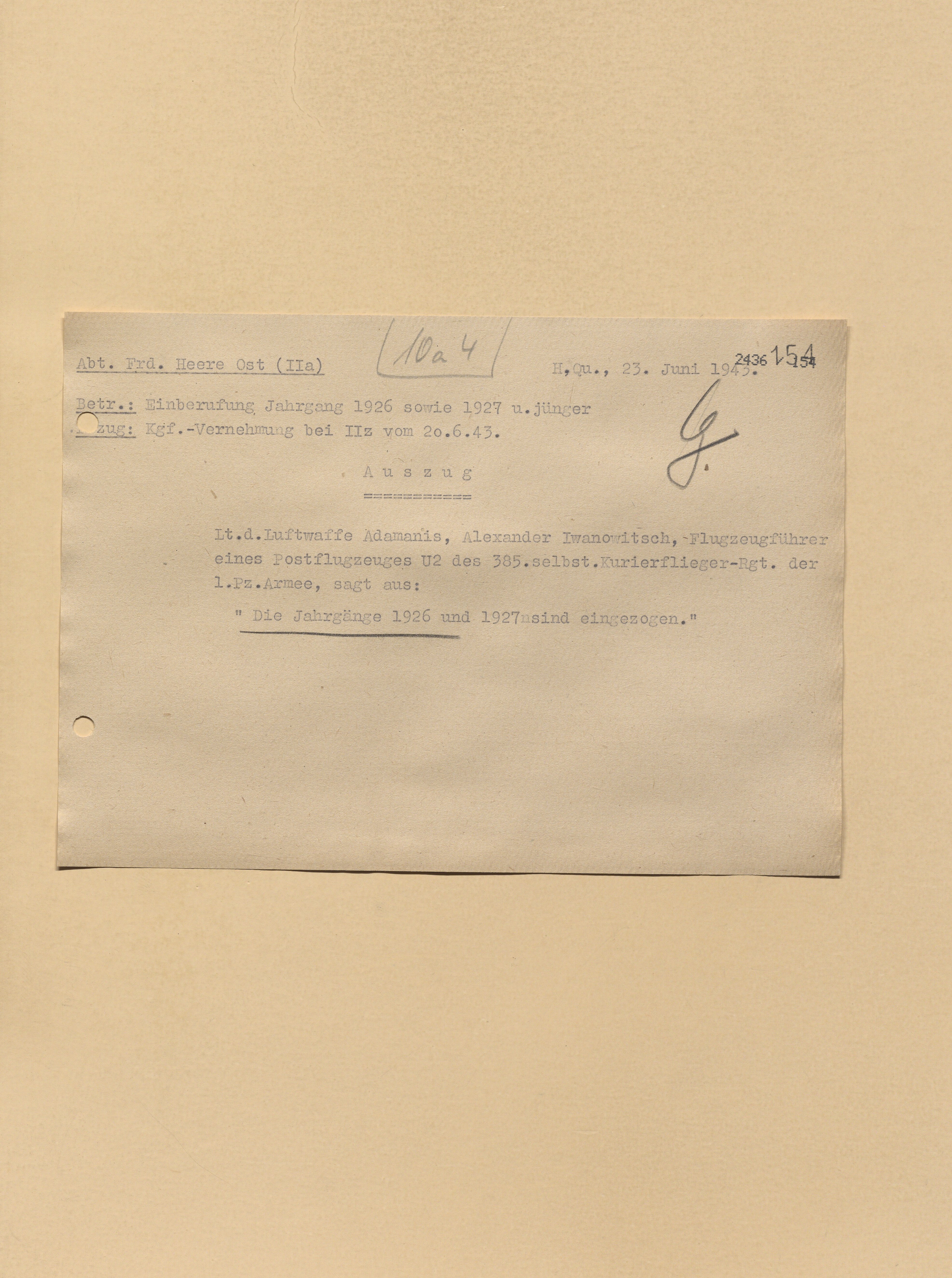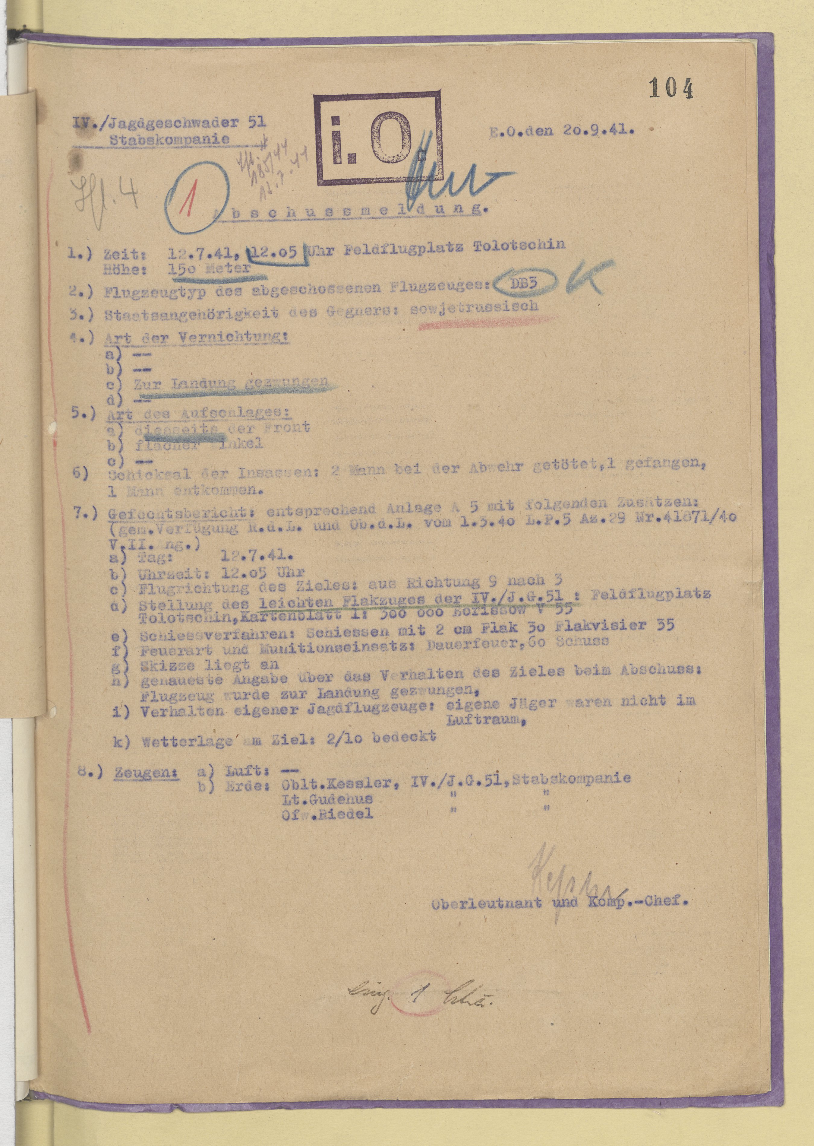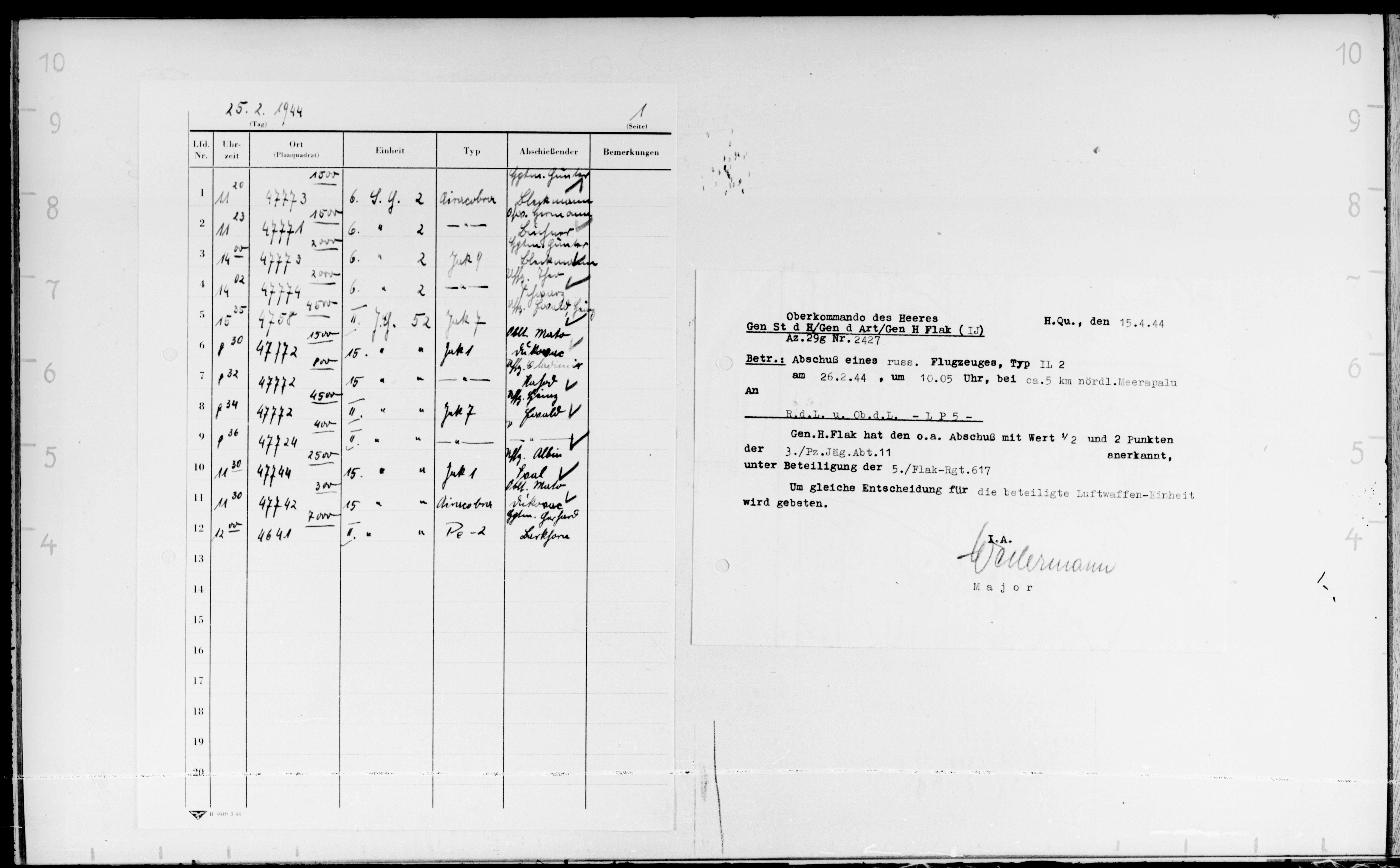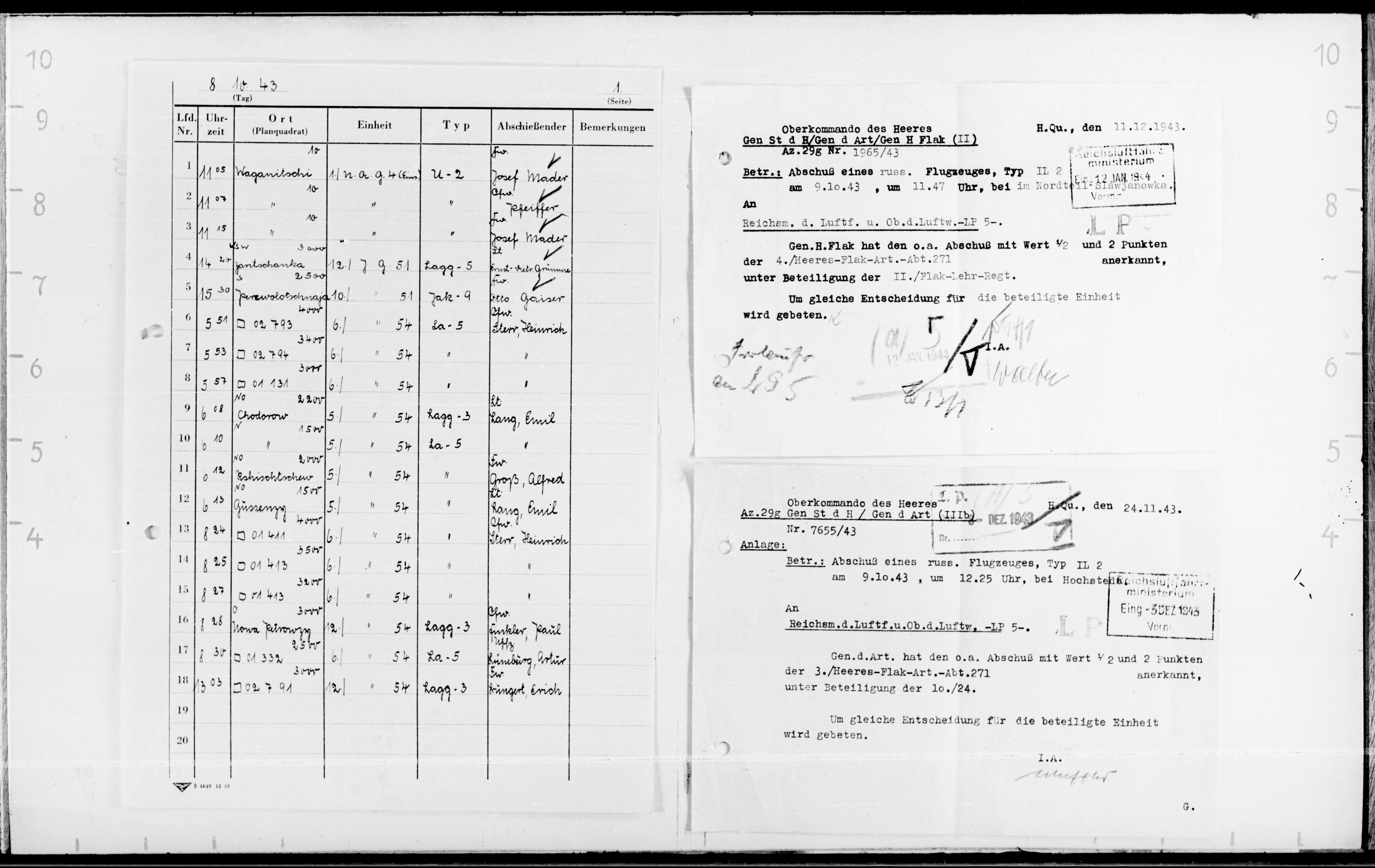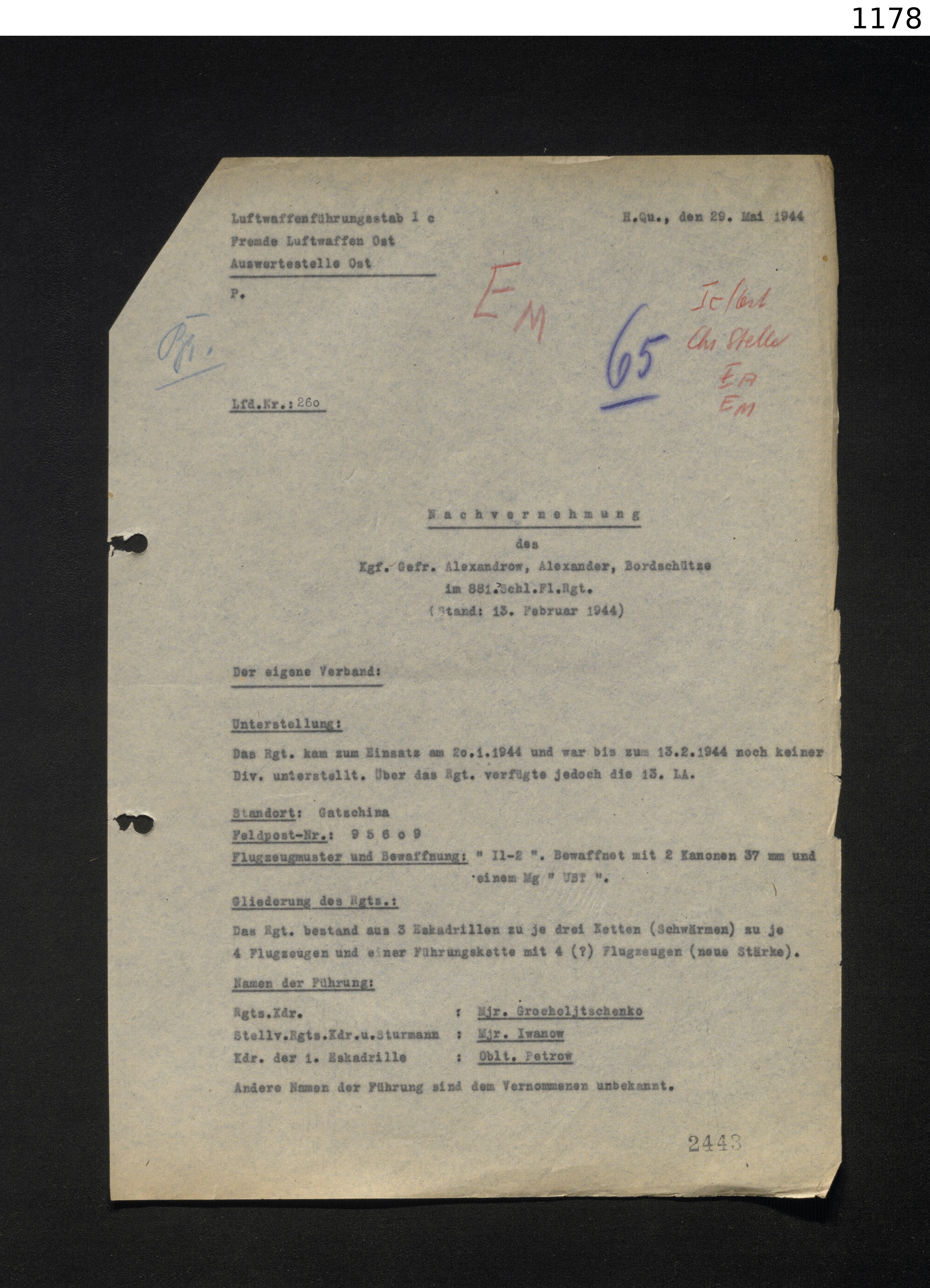 Опубликовано: 24 октября 4 часа назад, катуар сказал: У немцев докладная записка от 29.5.1944 со слов военнопленного ефрейтор Александров Александр бортстрелок 881 шап сбитого 13.2.1944. Явная дезинформация! Номер полка, личные данные?, фамилии командиров явно вымышлены. Скорее всего это один из бортстрелков 277 шад потерянных 13.2.1944. Со слов пленного несуществующий 881 шап был в составе 13 ВА и не входил в состав дивизии. 1 Упомянуть пользователя Поделиться сообщением Ссылка на сообщение Поделиться на других сайтах