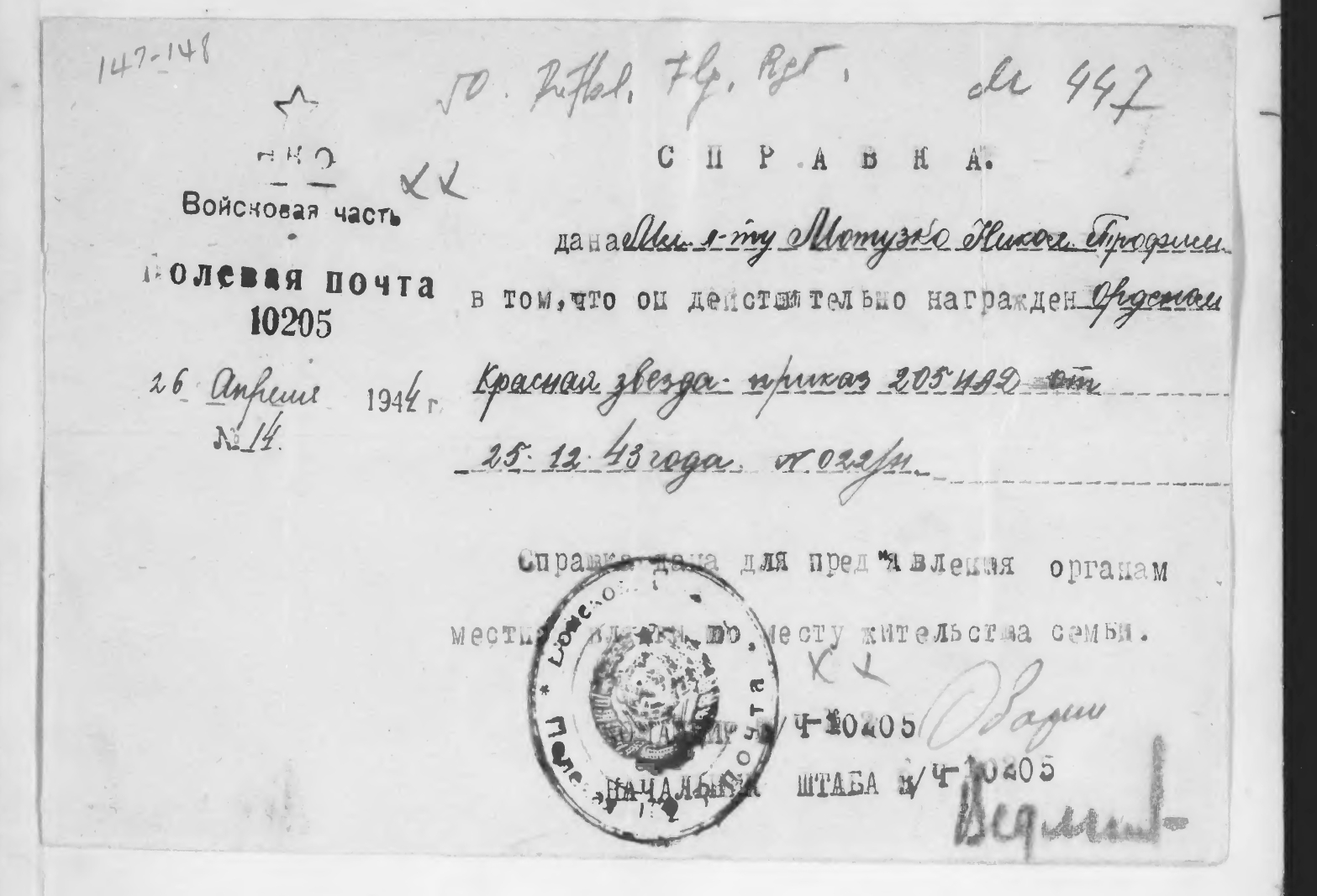 Опубликовано: 23 октября 3 часа назад, катуар сказал: У немцев: докладная записка по 27.12.1944 со слов военнопленного лейтенант-техник Кальченко Роман Михайлович командир звена 15 нбап (По-2), взятый в плен 5.9.1944 в районе Гумбиннен. Записка о марше немецких военнопленных через Москву 14.8.1944, Кальченко был там в госпитале. У нас: Кальченко Роман Михайлович 1915 г.р., г. Воронеж Дата поступления на службу1935 Воинское звание: ст. лейтенант Воинская часть: 15 нбап командир звена. Дата окончания службы: 05.09.1944 Причина выбытия: Пропал без вести Восточная Пруссия, Гумбинненский окр., Пилькалленский р-н, г. Ширвиндт, Ширвинд-Пилькаллен. В ночь на 5.9.1944 вылетел на разведку дорог и нбз. Дальнейшая судьба неизвестна. Штурман экипажа лейтенант Литневский Владимир Павлович 1923 г.р., Одесская обл. В ночь на 5.9.1944 вылетел на разведку дорог и нбз 15.11.1944 вернулся в часть.Отмена приказа ГУК в 1945 году. Медали За победу над Германией и За взятие Кенигсберга, юбилейное награждение 1985 г. 2 Упомянуть пользователя Поделиться сообщением Ссылка на сообщение Поделиться на других сайтах