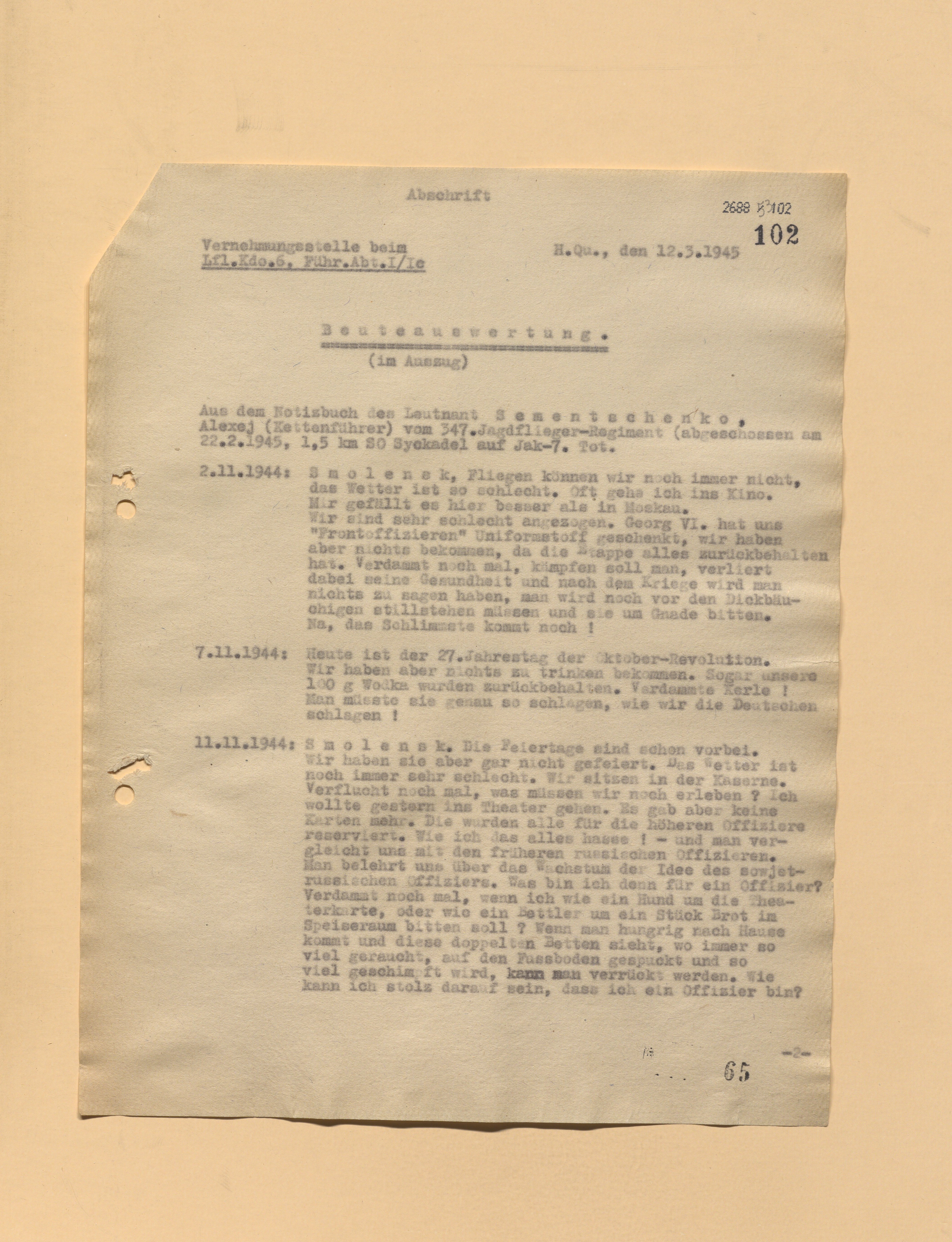 Опубликовано: 23 октября 9 часов назад, катуар сказал: к семенченко еще. командир звена 347 иап лейтенант Семенченко Алексей Игнатович (Игнатьевич), 1923 г.р., уроженец п. Рабочий г. Осипенко Запорожской обл. После окончания Качинской авиашколы в декабре 1942 года направлен в 347 иап. На Центральном фронте с мая 43-го. С 08.05. по 30.07.43 г. совершил 28 успешных боевых вылетов. Надежным прикрытием дал возможность своим ведущим сбить 7 самолетов противника, лично сбил один Ме-110 и подбил 2 ФВ-190, выведя их из боя, за что был награжден орденом Красной Звезды. С августа 43-го по август 44-го Семенченко совершил ещё 84 успешных боевых вылета и лично сбил 2 ФВ-190, за что 08.09.44 г. награжден орденом Красного Знамени. 22.02.45 г. л-т Семенченко на самолете Як-9У № 34010 вылетел парой на свободную охоту. Приказав по радио своему ведомому прикрыть его, Семенченко с пикирования начал штурмовку колонны противника на шоссе Бесков- Фридерсдорф, в районе Люббен. Провел 6 атак. Увлекшись атакой по автомашинам, он снизился до 100 метров, попал в зону ружейно-пулеметного огня, был сбит и погиб. Предпринятые полком поиски л-та Семенченко не дали результатов, т.к. низкая облачность и плохая видимость затрудняли поиск. У погибшего летчика фрицами была найдена записная книжка с дневниковыми записями, сделанными Семенченко в период с октября 1944 года по 7 февраля 1945 года. Эти записи показались фрицам настолько интересными, что значительные отрывки ими были переведены без комментариев. Этот перевод коллега Катуар разместил здесь, а сами дневниковые записи отдельным файлом 6 сентября в этой же теме - https://trizna.ru/forum/topic/47514-разное/?page=56#comment-527924 1 Упомянуть пользователя Поделиться сообщением Ссылка на сообщение Поделиться на других сайтах