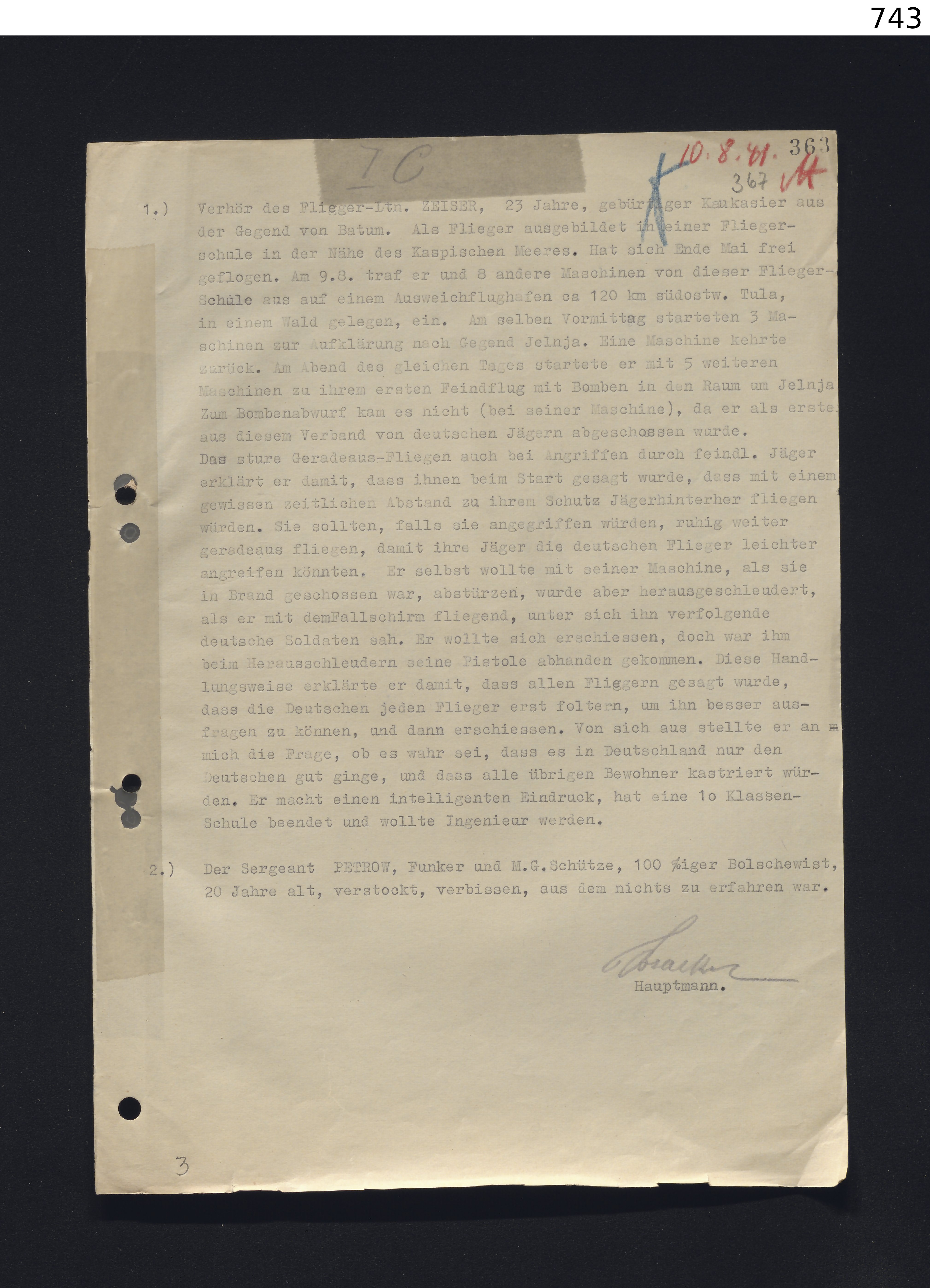У немцев: 1. пилот лейтенант Zeiser  23 года, Батуми. Сбит в первом боевом вылете 9.8.1941 в сторону Ельня.