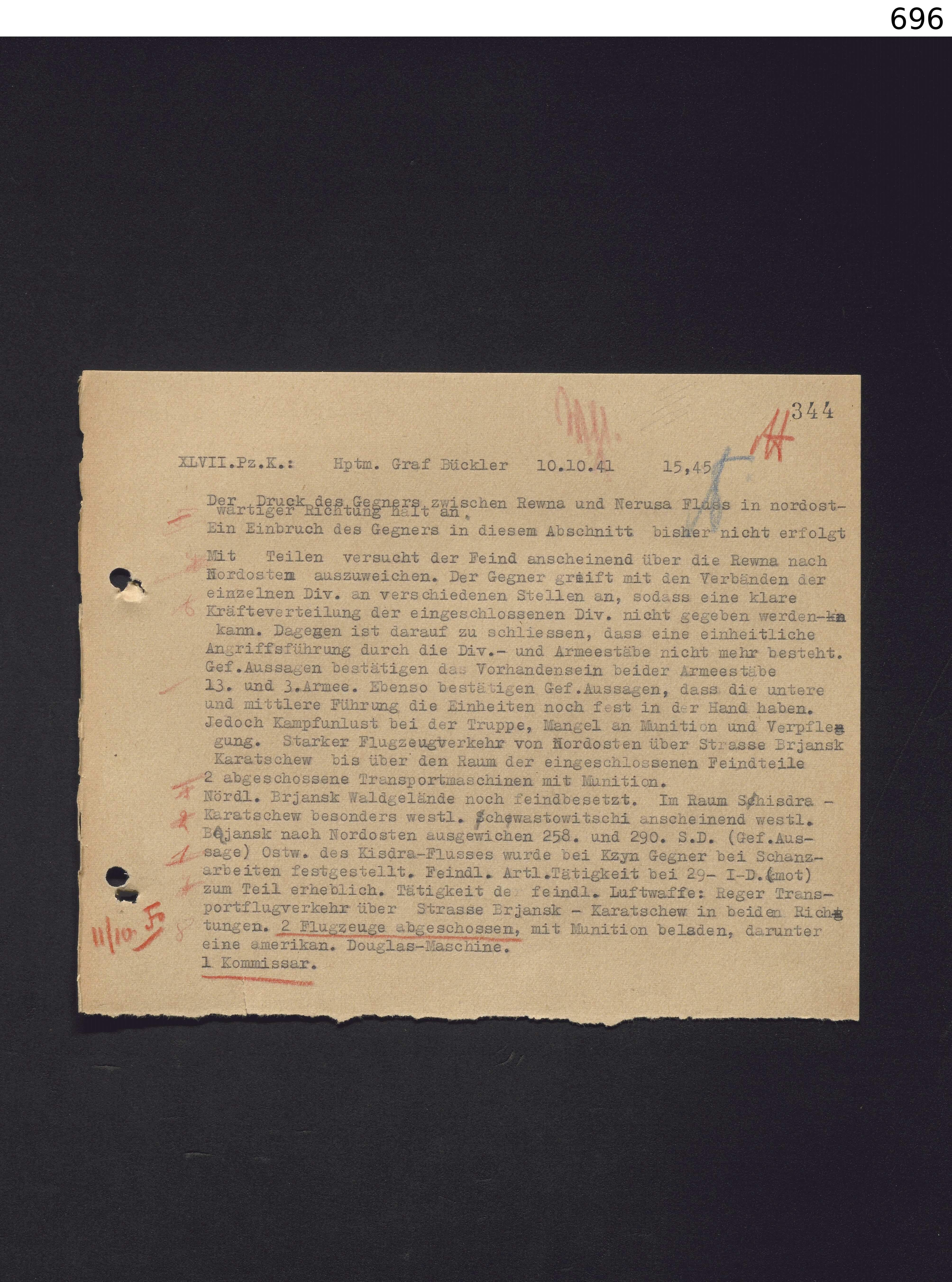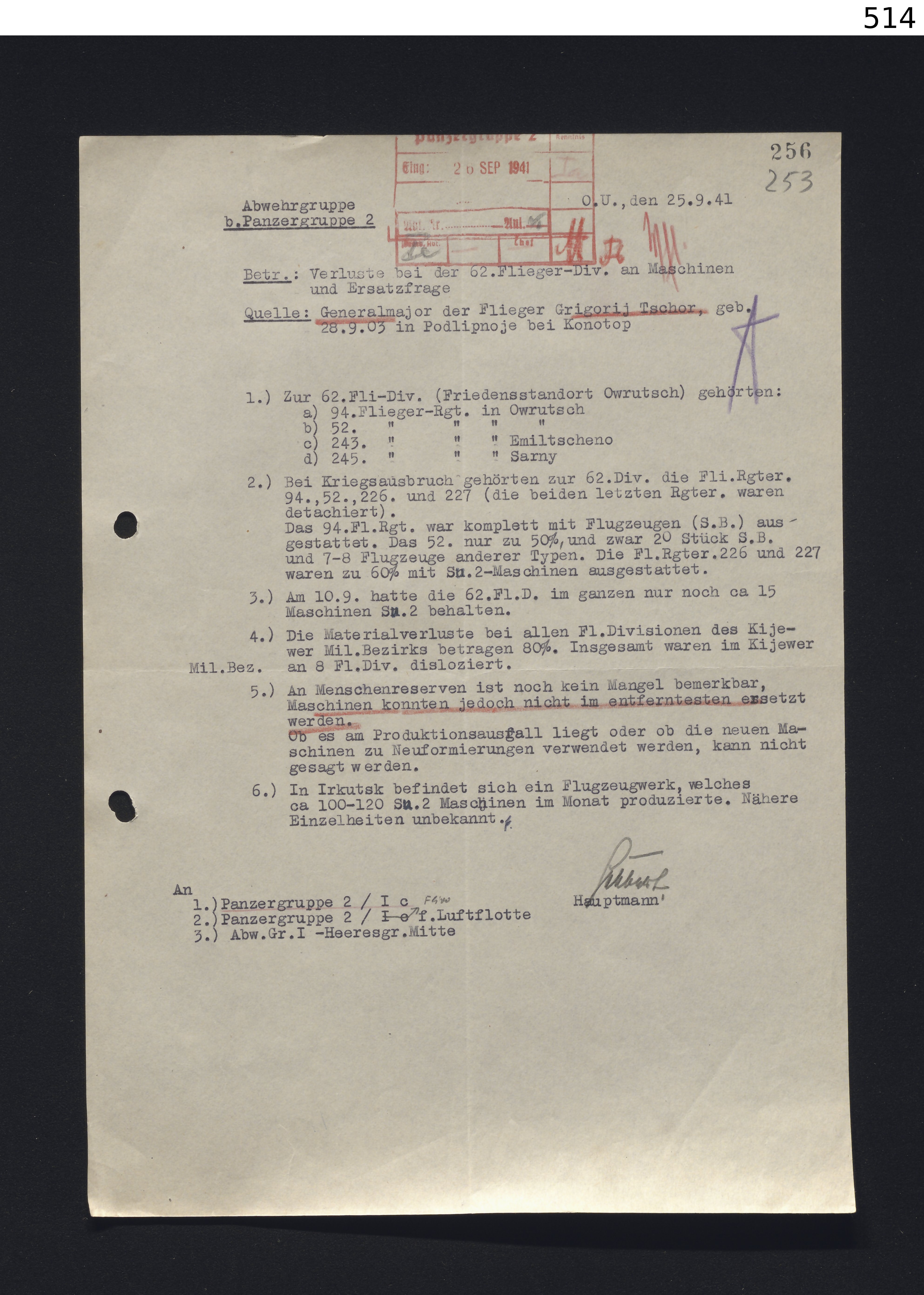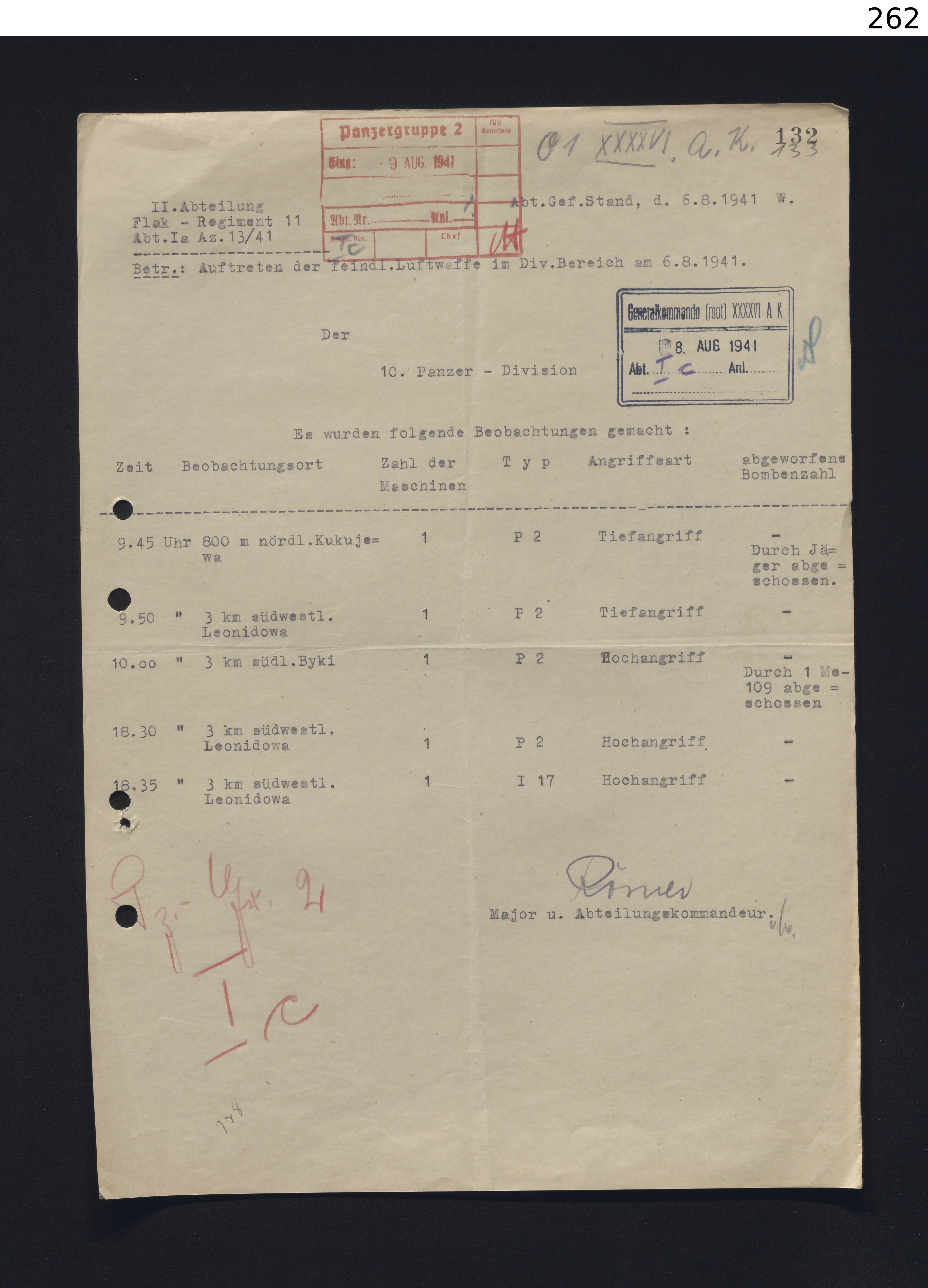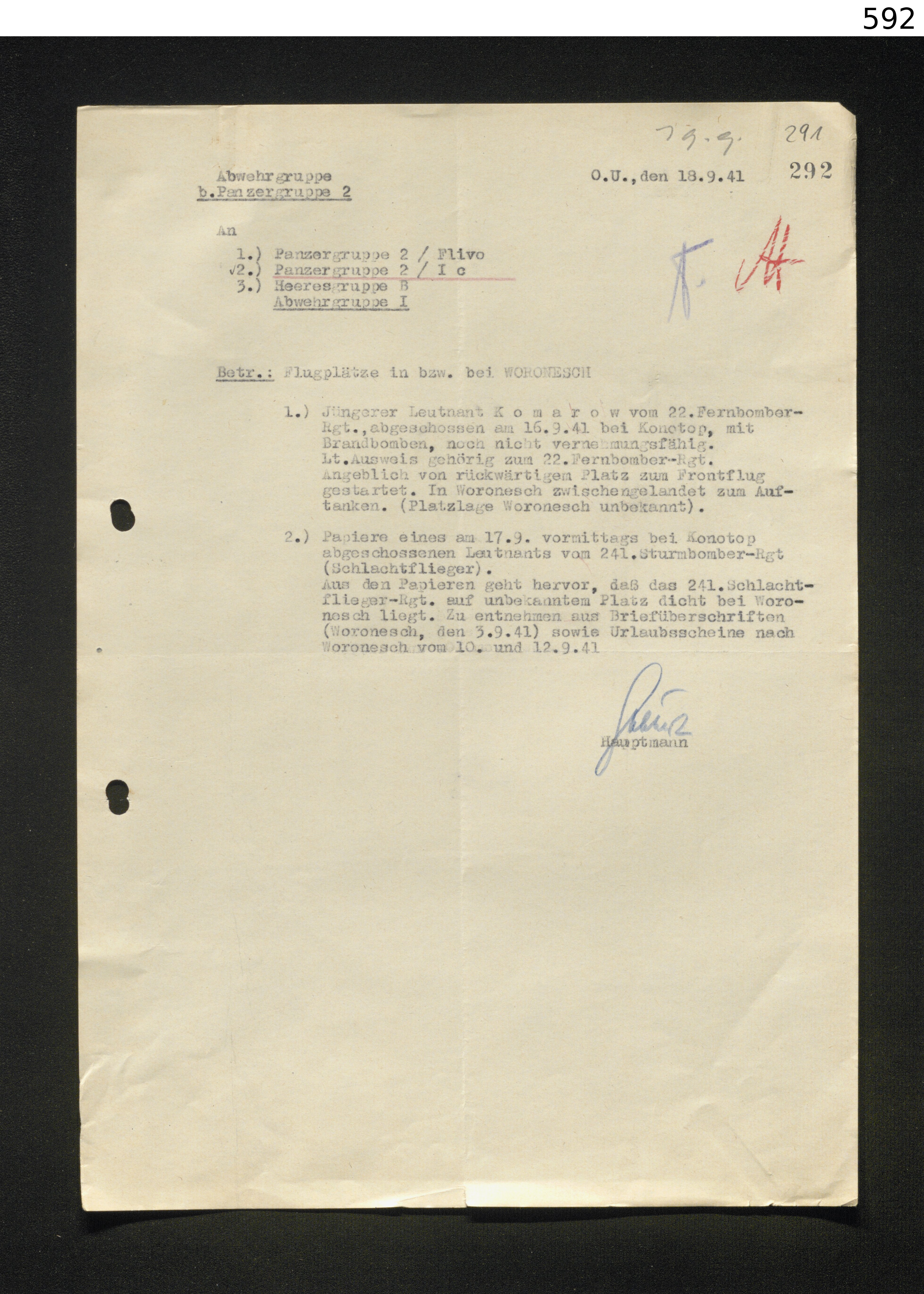 В нем. док-те от 18.09.41 упомянут мл. л-нт Комаров, сбитый у Конотопа, информация о котором, вероятно, взята из обнаруженного удостоверения или справки (если я правильно поняла нем. текст).