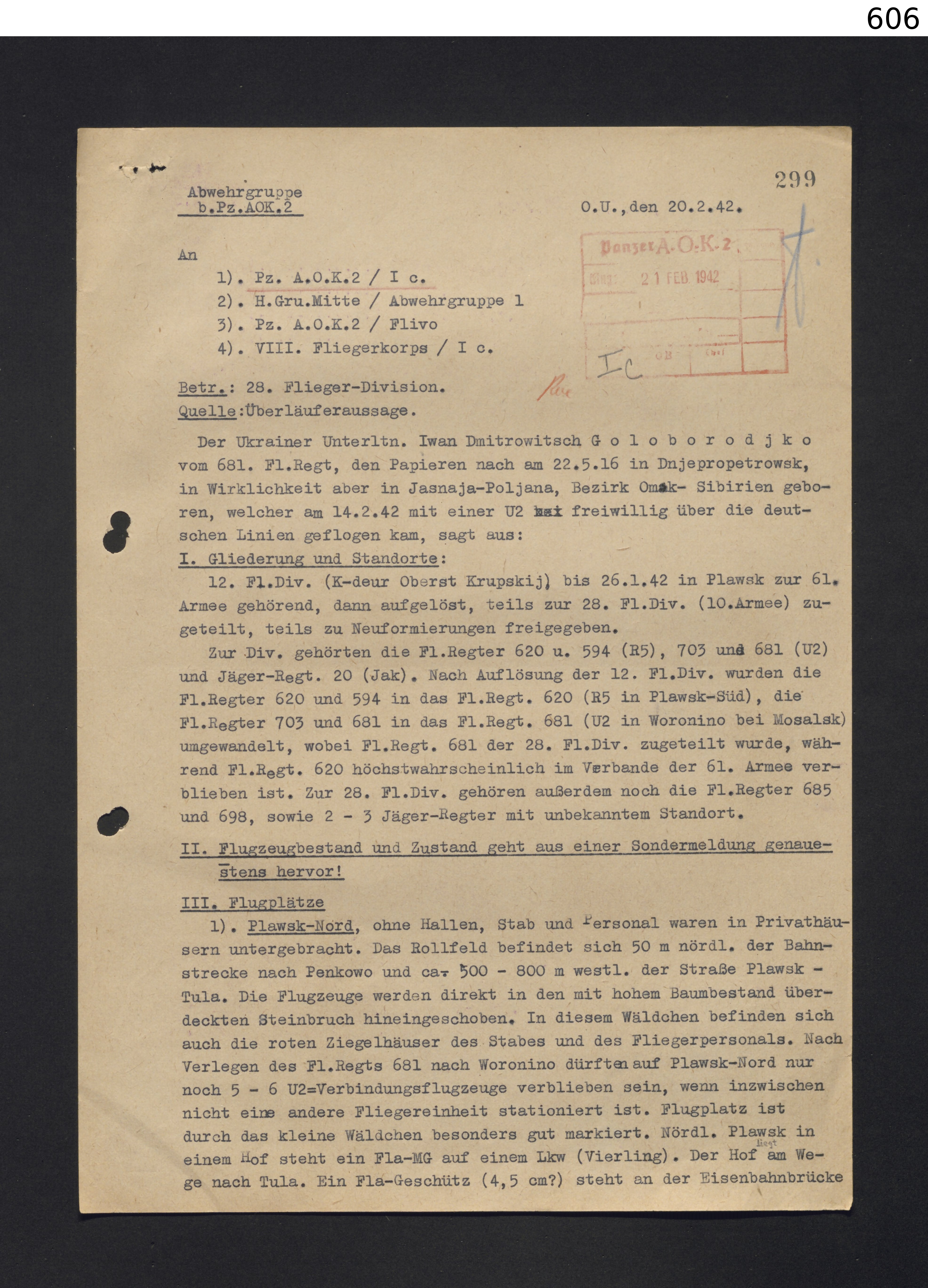 У немцев показания перебежчика. мл. л-т Иван Дмитриевич Голобородько из 681 ап перелетел на У-2 к немцам 14.2.1942. По документам 1916 г.р., Днепропетровск.