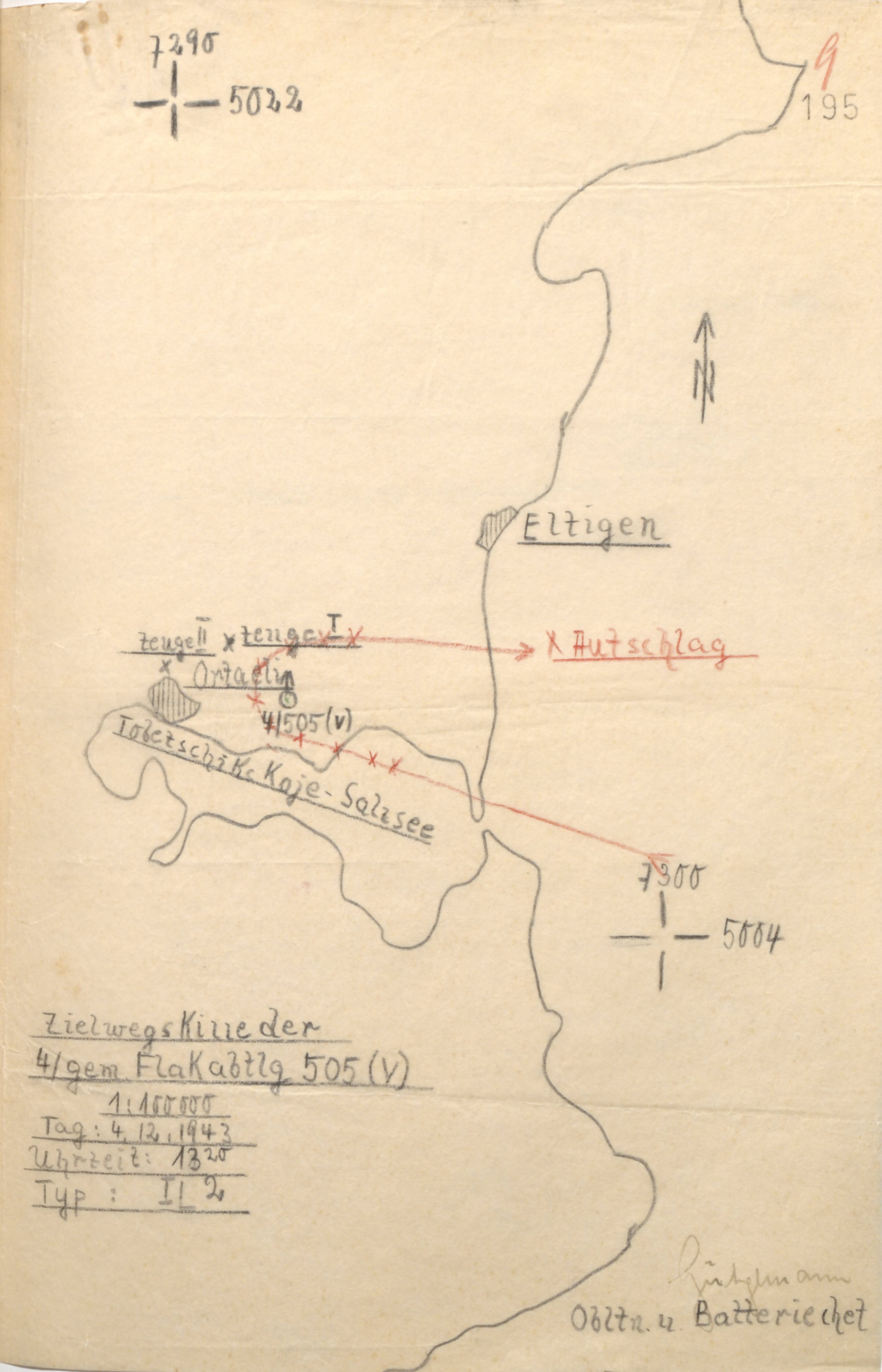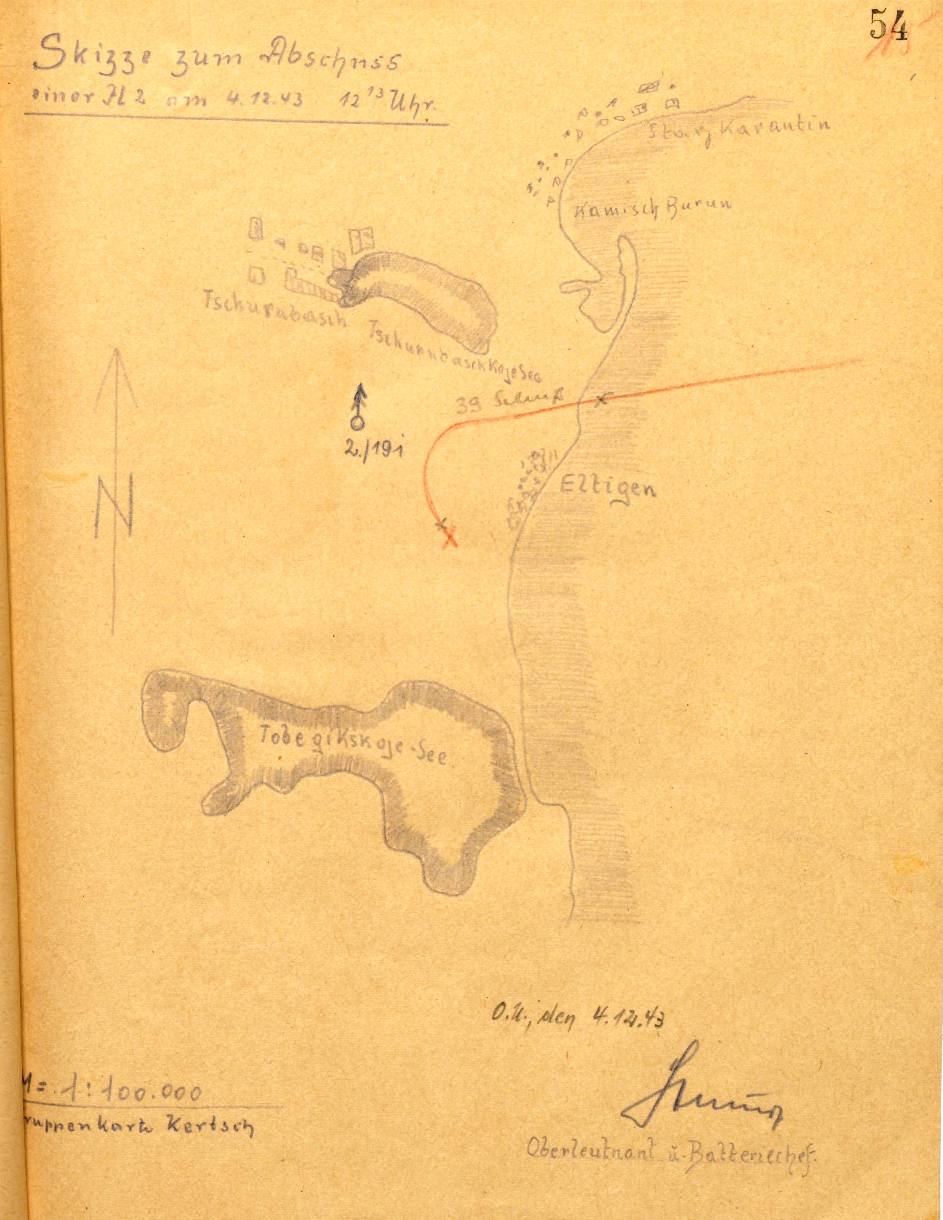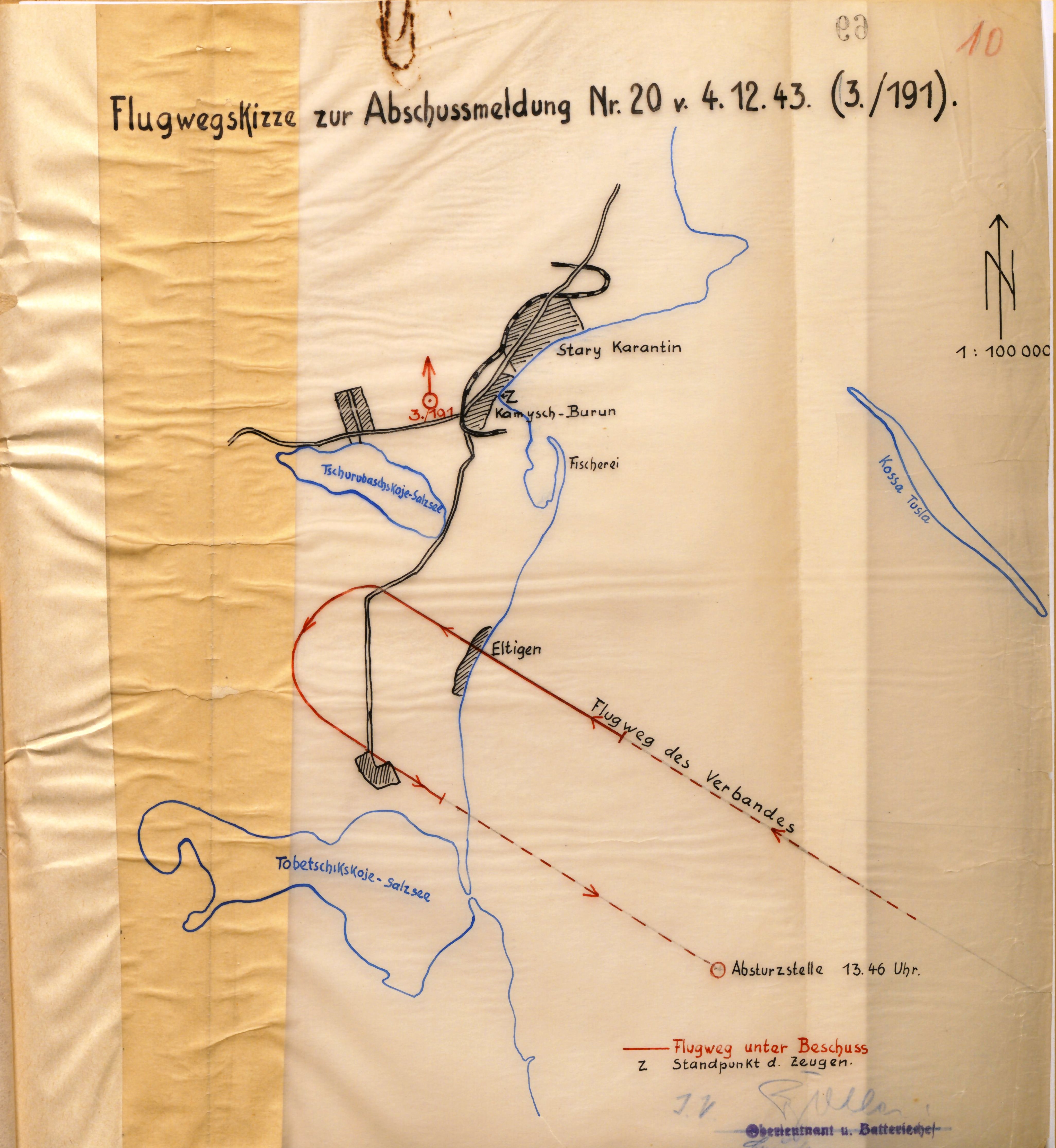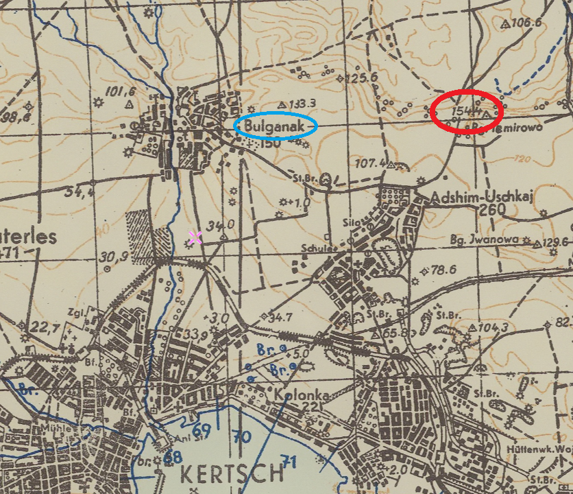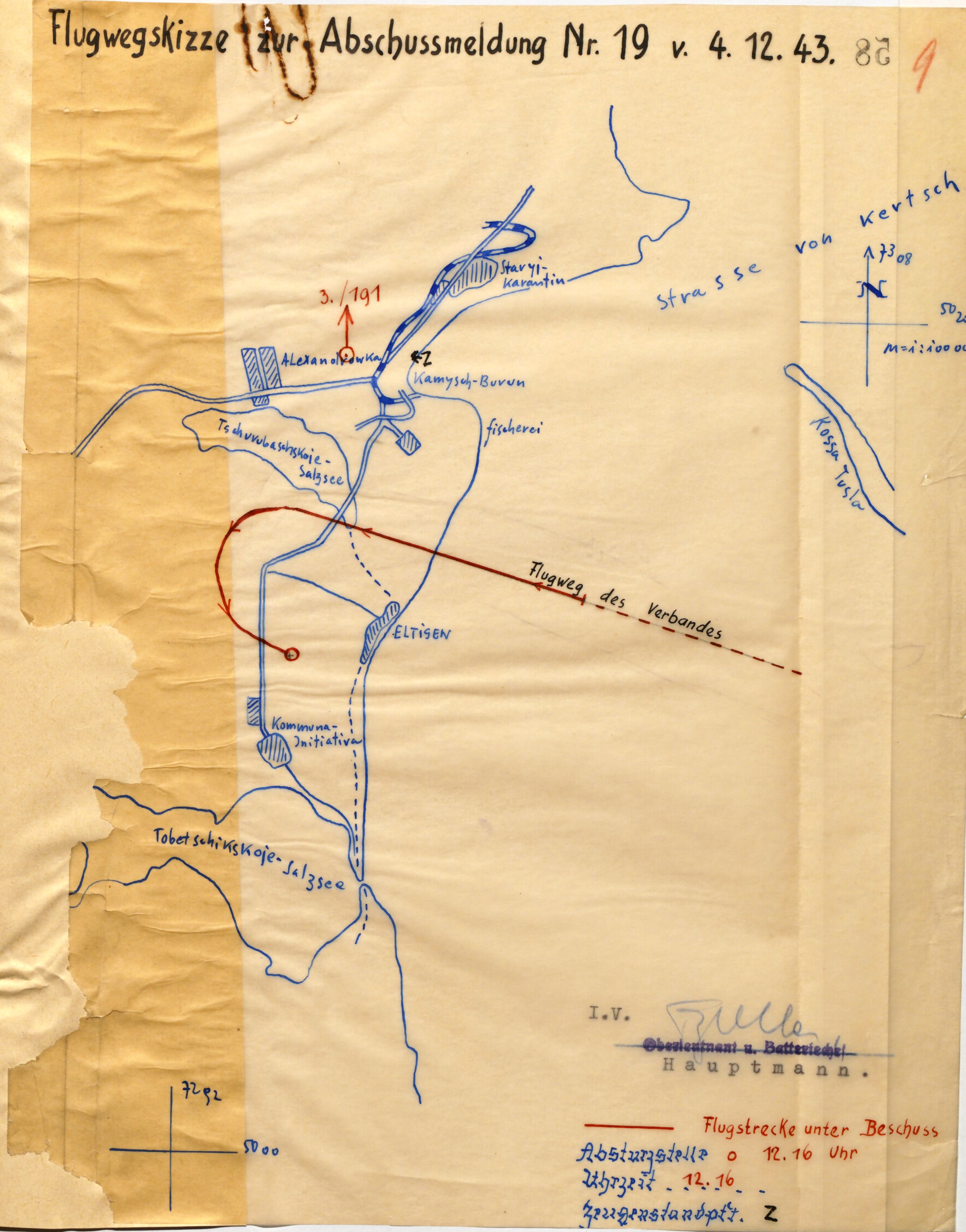 Опубликовано: Saturday в 13:40 17 минут назад, skylark сказал: Тоже Керченско-Эльтигенская операция и также слишком мало информации с обеих сторон для установления экипажа. У фрицев – заявляют о сбитии Ил-2 04.12.43 г. в 13.10 3 km sudlich Shcule Eltigen (южнее Школы Эльтиген?) У нас – 04.12.43 г. было несколько потерь Ил-2 в районе пос. Эльтиген (ныне - Героевское, микрорайон города Керчь): - экипаж 622 шап 214 шад в составе: летчик мл. лейтенант Садаков Леонид Иванович (1922 г.р., уроженец д. Сухины Заречные Шалеевского с/с, Кировской обл.) и воздушный стрелок мл. сержант Буров Михаил Федорович (1921 г.р., уроженец д. Фроловцы Нагорского р-на Кировской обл.). Экипаж подбит ЗА в районе Эльтиген (г. Керчь); - экипаж 190 шап 214 шад в составе: летчик мл. лейтенант Симонов Михаил Петрович (1919 г.р., уроженец Волынского р-на Орловской обл.) и воздушный стрелок ст. сержант Вахтеров Михаил Давидович (1923 г.р., уроженец д. Голонеевка Барановского р-на Куйбышевской обл.). Самолет врезался в землю над целью в районе Эльтиген; - экипаж 7 гв. шап 230 шад в составе: зам. командира АЭ гв. ст. лейтенант Попов Борис Иванович (1922 г.р., уроженец г. Кинешма Ивановской обл.) и воздушный стрелок гв. старшина Короткевич Павел Моисеевич (1922 г.р., уроженец д. Скалка Паричского р-на Полесской обл. Белорусской ССР). Самолет сбит ЗА в районе 1,5 км западнее Коммуна Инициатива, упал горящим 1 км северо-восточнее Коммуна Инициатива и сгорел; - экипаж 7 гв. шап 230 шад в составе: командир звена гв. лейтенант Моргачев Иван Михайлович (1922 г.р., уроженец с. Слепуха Орловской обл.) и воздушный стрелок гв. сержант Терещенко Евгений Ильич (1919 г.р., уроженец г. Новозыбков Орловской обл.). Самолет сбит ЗА в районе высоты 76,5, сел в районе Эльтиген, судьба экипажа неизвестна, числится пропавшим без вести; - экипаж 210 шап 230 шад в составе: летчик мл. лейтенант Мартынович Гаврил Адамович (1921 г.р., уроженец д. Шестовичи Петриковского р-на Полесской обл. Белорусской ССР) и воздушный стрелок мл. сержант Ахмедиев Махмуд Хазигалеевич (1921 г.р., уроженец п. Стандартный Кировоградского р-на Свердловской обл.). Самолет сбит ЗА в районе Эльтиген, экипаж погиб; - экипаж 765 шап 230 шад в составе: летчик старший мл. лейтенант Акиншин Олег Вячеславович (1922 г.р., уроженец с. Александровское Александровского р-на Ставропольского края) и воздушный стрелок 765 шап сержант Питиков Александр Иванович (1921 г.р., уроженец с. Селитренное Харбалинского р-на Сталинградской обл.). Экипаж нбз из р-на Тобечик (ныне – с. Челядиново), по докладу экипажей – самолет упал в Керченский пролив. Схемы из донесений немецких зенитчиков за 4 декабря 1943, которые удалось найти. По экипажу гв. ст. лейтенанта Попова таких схем две (от разных подразделений). 2 Упомянуть пользователя Поделиться сообщением Ссылка на сообщение Поделиться на других сайтах