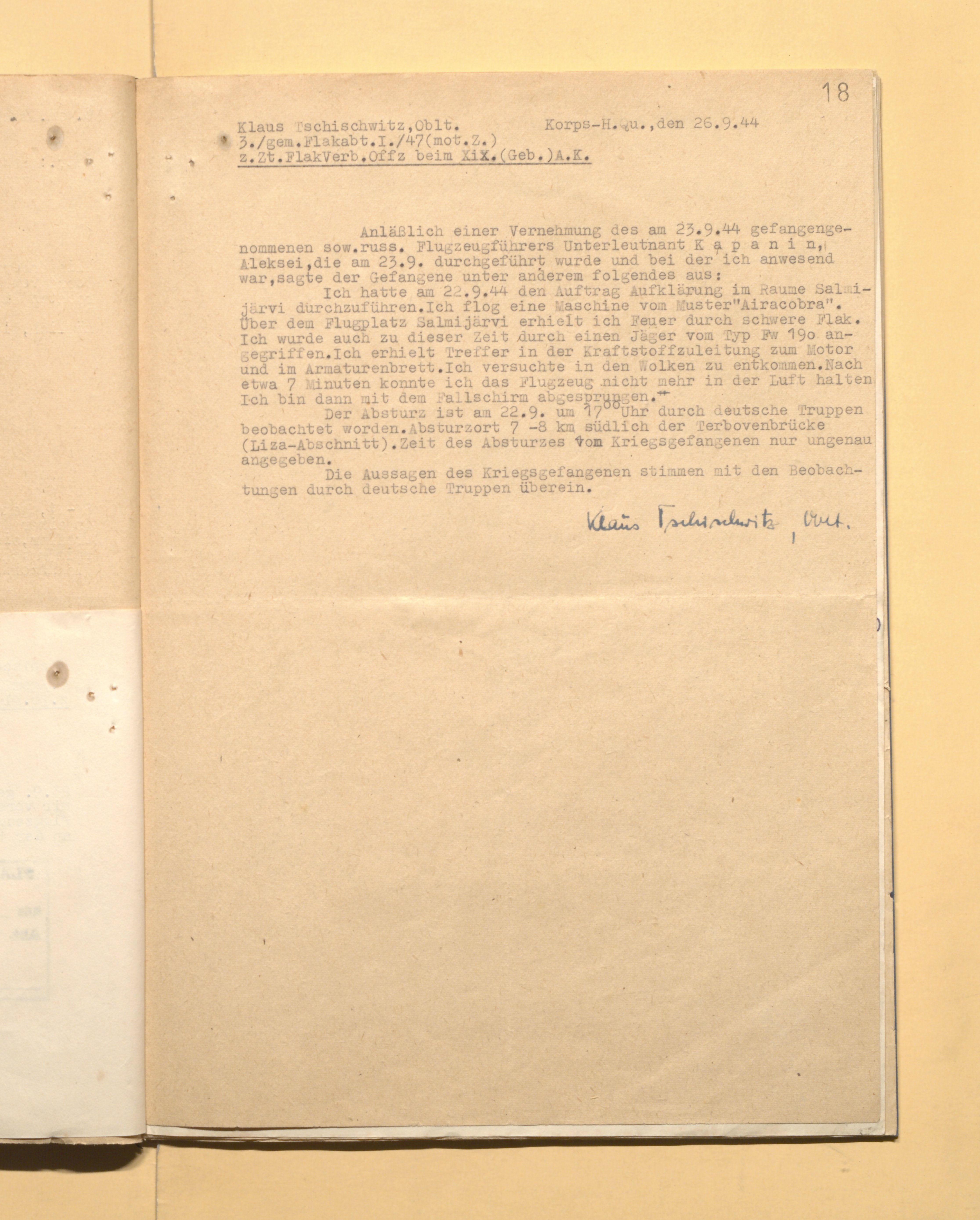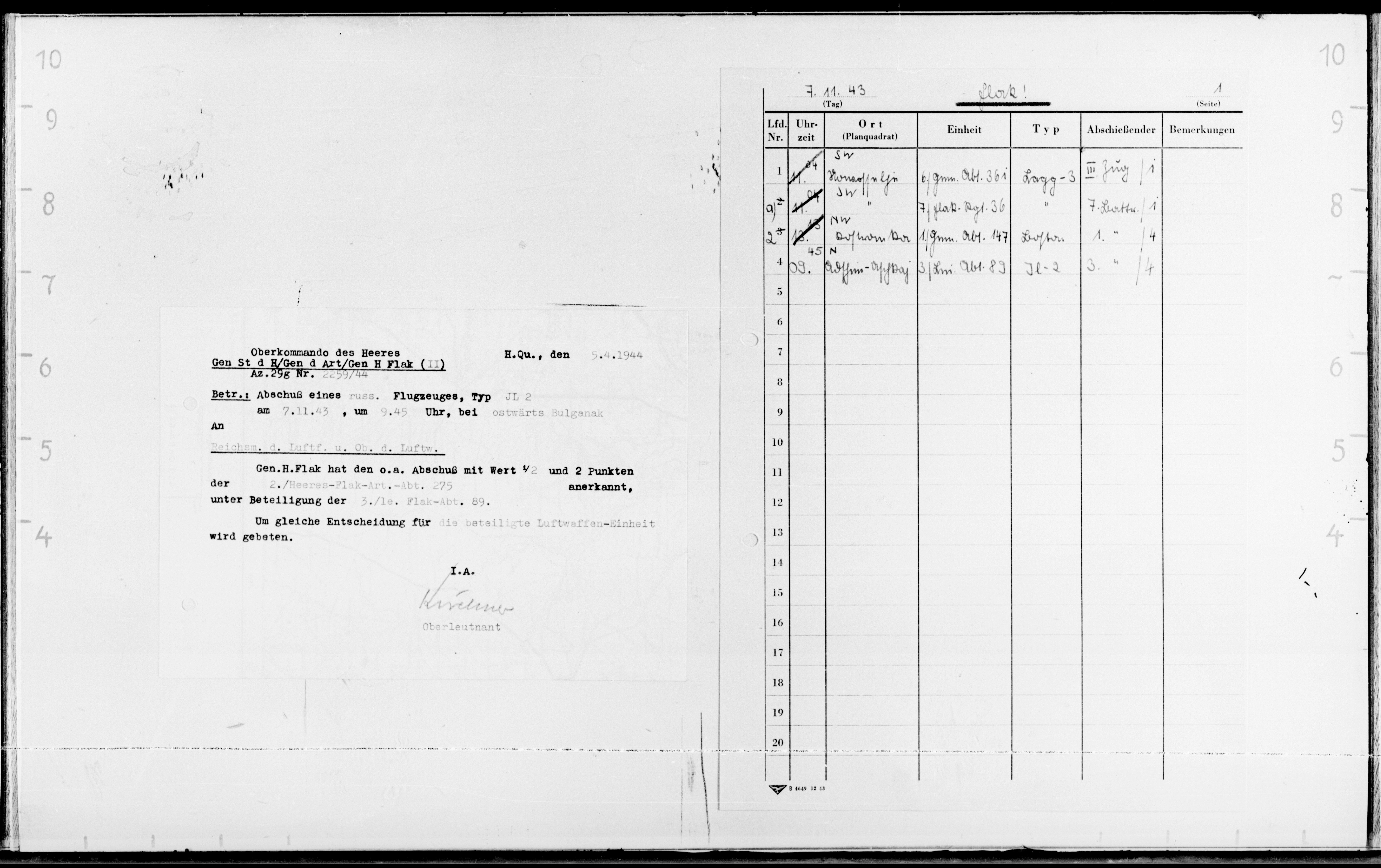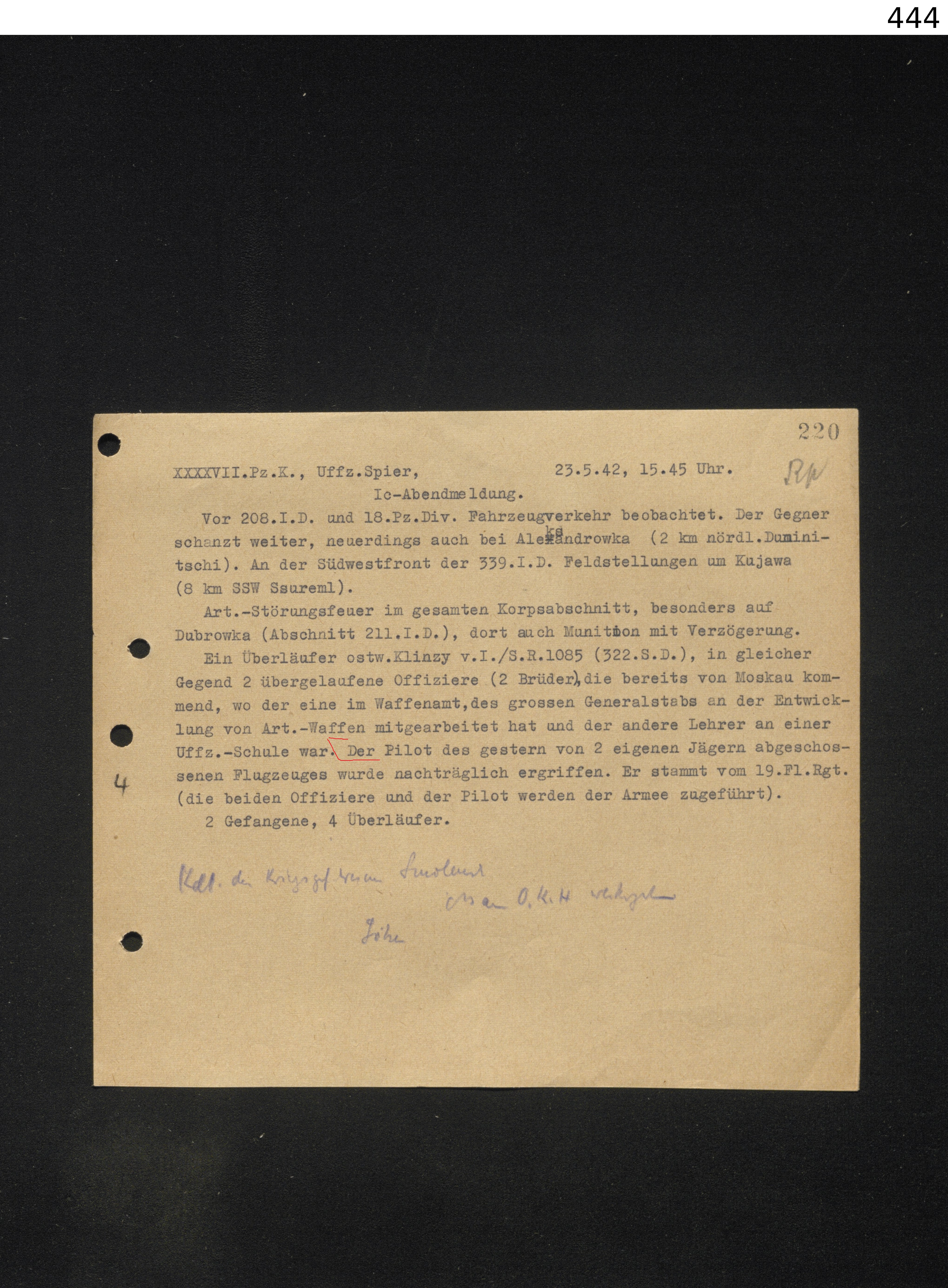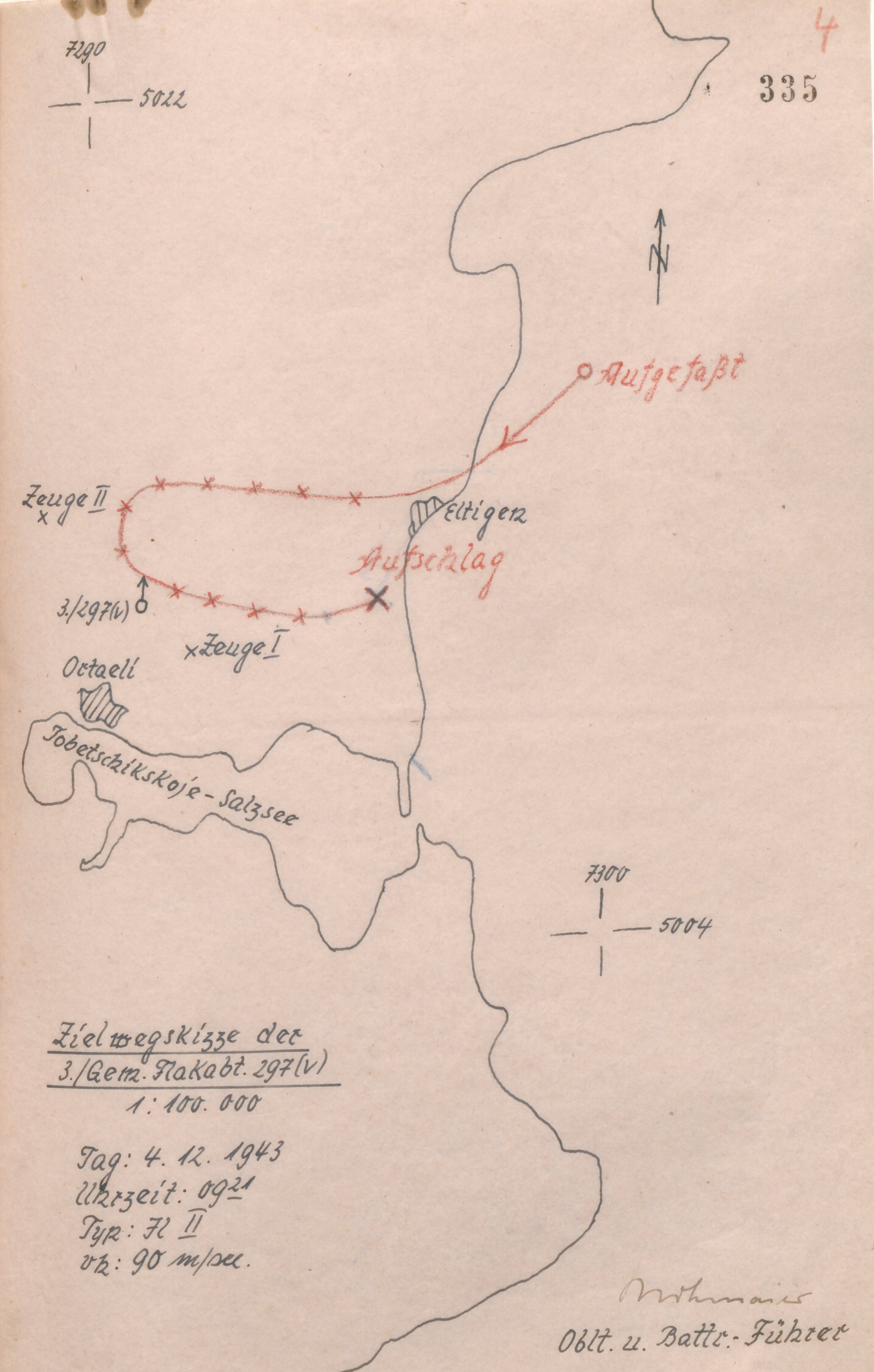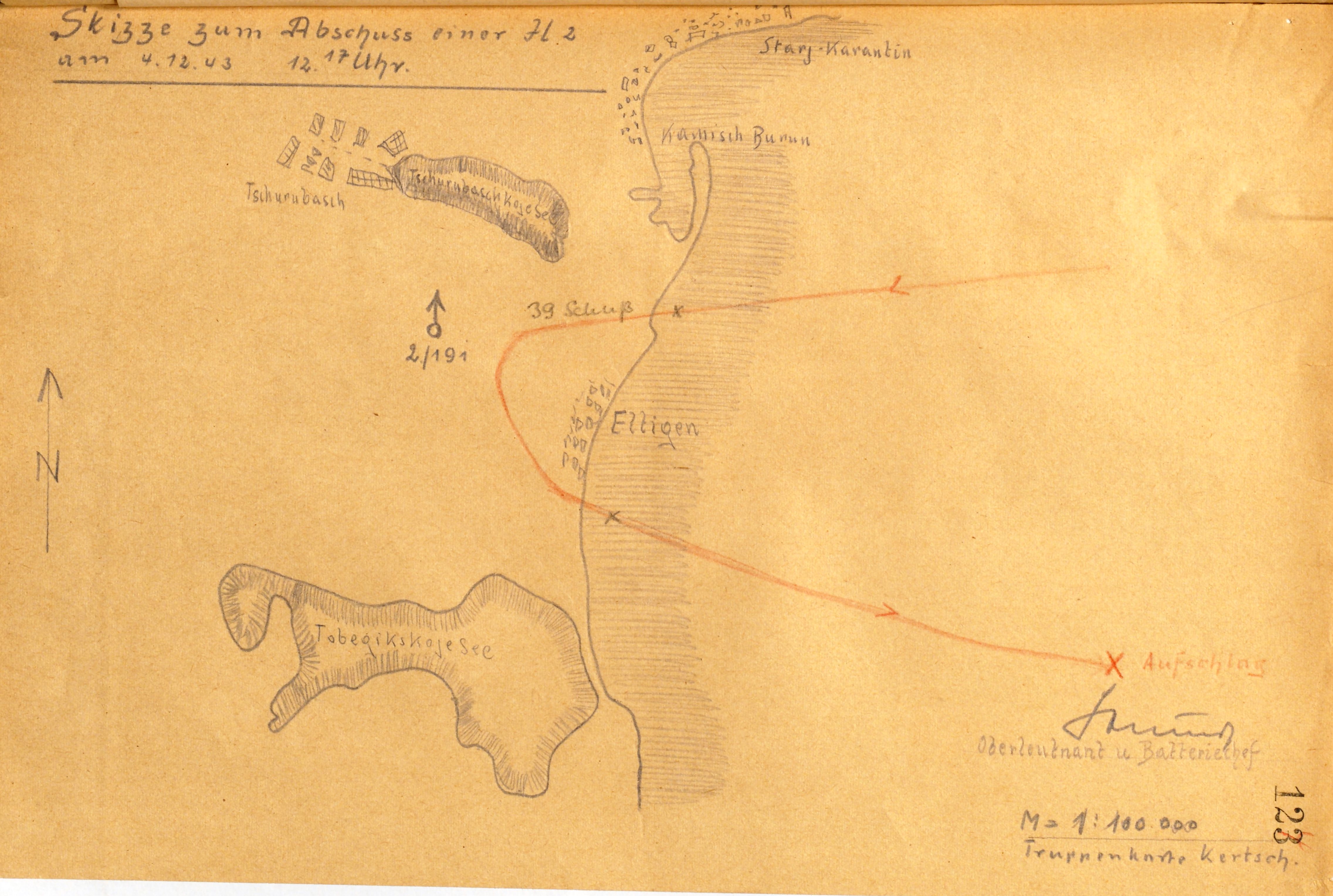 Опубликовано: Saturday в 13:40 17 минут назад, skylark сказал: Тоже Керченско-Эльтигенская операция и также слишком мало информации с обеих сторон для установления экипажа. У фрицев – заявляют о сбитии Ил-2 04.12.43 г. в 13.10 3 km sudlich Shcule Eltigen (южнее Школы Эльтиген?) У нас – 04.12.43 г. было несколько потерь Ил-2 в районе пос. Эльтиген (ныне - Героевское, микрорайон города Керчь): - экипаж 622 шап 214 шад в составе: летчик мл. лейтенант Садаков Леонид Иванович (1922 г.р., уроженец д. Сухины Заречные Шалеевского с/с, Кировской обл.) и воздушный стрелок мл. сержант Буров Михаил Федорович (1921 г.р., уроженец д. Фроловцы Нагорского р-на Кировской обл.). Экипаж подбит ЗА в районе Эльтиген (г. Керчь); - экипаж 190 шап 214 шад в составе: летчик мл. лейтенант Симонов Михаил Петрович (1919 г.р., уроженец Волынского р-на Орловской обл.) и воздушный стрелок ст. сержант Вахтеров Михаил Давидович (1923 г.р., уроженец д. Голонеевка Барановского р-на Куйбышевской обл.). Самолет врезался в землю над целью в районе Эльтиген; - экипаж 7 гв. шап 230 шад в составе: зам. командира АЭ гв. ст. лейтенант Попов Борис Иванович (1922 г.р., уроженец г. Кинешма Ивановской обл.) и воздушный стрелок гв. старшина Короткевич Павел Моисеевич (1922 г.р., уроженец д. Скалка Паричского р-на Полесской обл. Белорусской ССР). Самолет сбит ЗА в районе 1,5 км западнее Коммуна Инициатива, упал горящим 1 км северо-восточнее Коммуна Инициатива и сгорел; - экипаж 7 гв. шап 230 шад в составе: командир звена гв. лейтенант Моргачев Иван Михайлович (1922 г.р., уроженец с. Слепуха Орловской обл.) и воздушный стрелок гв. сержант Терещенко Евгений Ильич (1919 г.р., уроженец г. Новозыбков Орловской обл.). Самолет сбит ЗА в районе высоты 76,5, сел в районе Эльтиген, судьба экипажа неизвестна, числится пропавшим без вести; - экипаж 210 шап 230 шад в составе: летчик мл. лейтенант Мартынович Гаврил Адамович (1921 г.р., уроженец д. Шестовичи Петриковского р-на Полесской обл. Белорусской ССР) и воздушный стрелок мл. сержант Ахмедиев Махмуд Хазигалеевич (1921 г.р., уроженец п. Стандартный Кировоградского р-на Свердловской обл.). Самолет сбит ЗА в районе Эльтиген, экипаж погиб; - экипаж 765 шап 230 шад в составе: летчик старший мл. лейтенант Акиншин Олег Вячеславович (1922 г.р., уроженец с. Александровское Александровского р-на Ставропольского края) и воздушный стрелок 765 шап сержант Питиков Александр Иванович (1921 г.р., уроженец с. Селитренное Харбалинского р-на Сталинградской обл.). Экипаж нбз из р-на Тобечик (ныне – с. Челядиново), по докладу экипажей – самолет упал в Керченский пролив. Схемы из донесений немецких зенитчиков за 4 декабря 1943, которые удалось найти. По экипажу гв. ст. лейтенанта Попова таких схем две (от разных подразделений). 2 Упомянуть пользователя Поделиться сообщением Ссылка на сообщение Поделиться на других сайтах