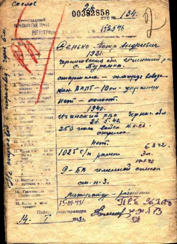 Опубликовано: 23 ноября Совпадения по Ф.И.О., году и месту рождения, национальности есть. Но, как выше отметил linnet, нельзя не обратить внимание на тот факт, что гв. старшина Сенько П. А. 18.03.44 г. был тяжело ранен и после излечения в госпитале уволен по инвалидности 23.06.44 г. Именно к нему относится эта справка. А гв. старший сержант Сенько П. А. 21.01.44 г. был награжден медалью "За отвагу" в 59 гв. шап и продолжил воевать в этом полку. В этом же 59 гв. шап 08.09.44 г. на него был составлен наградной лист к награждению орденом "Красного Знамени". 1 Упомянуть пользователя Поделиться сообщением Ссылка на сообщение Поделиться на других сайтах