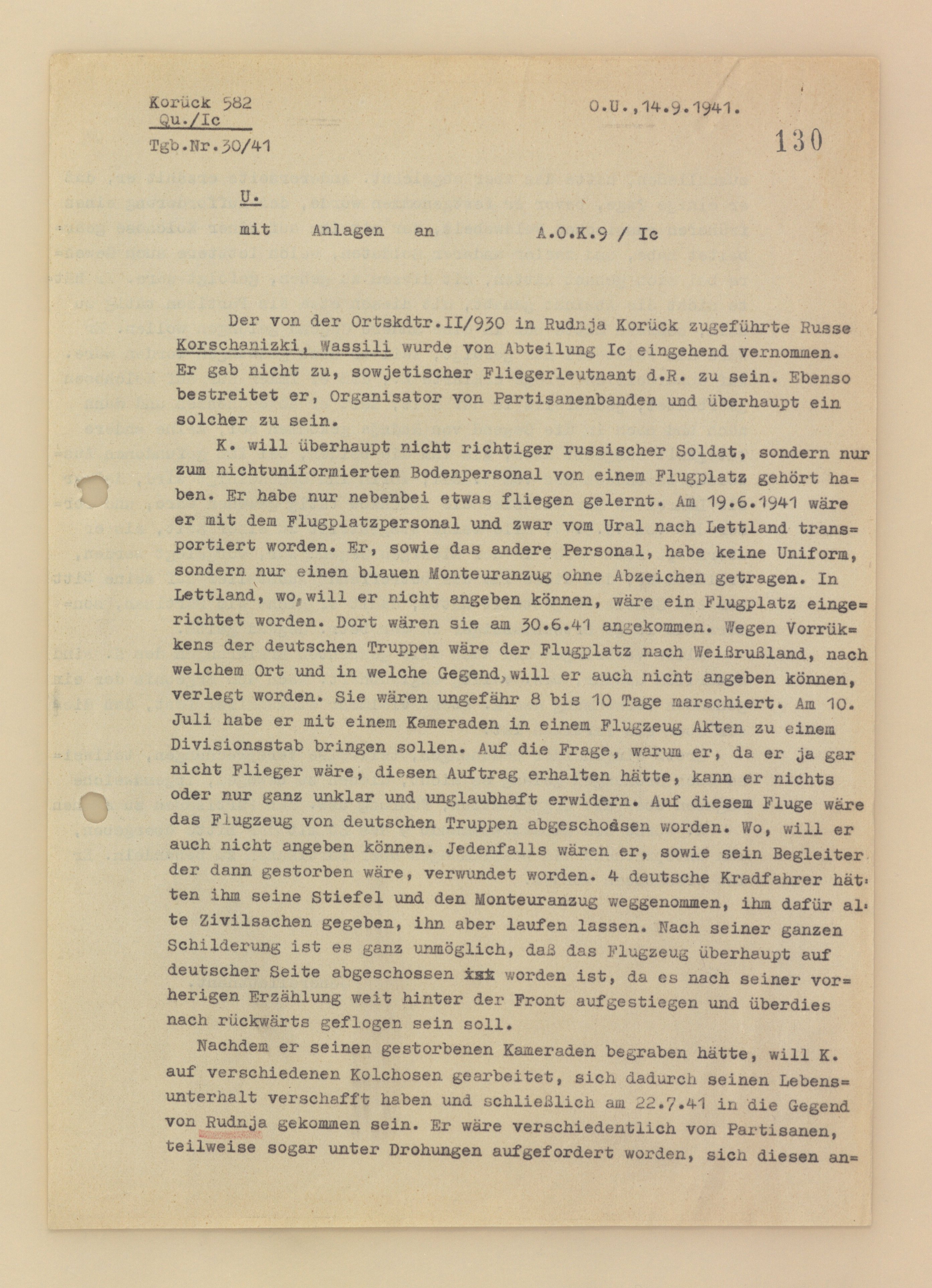Опубликовано: 15 января В 13.01.2026 в 08:42, катуар сказал: Какой-то отчет о том, что: Василий Коршаницкий доставлен в Рудню, был допрошен, не признал себя лейтенантом ВВС. Василий утверждает, что состоял в наземном персонале аэродрома лишь немного умеет летать. 19 июня 1941 года его вместе с персоналом перевезли с Урала в Латвию. Там был аэродром, где - указать не может. Прибыли они туда 30 июня 1941г. Далее из-за наступления немецких войск аэродром перевели в Беларусь, но куда - так же не знает. Он с товарищем должны были доставить документы в штаб дивизии на самолете. На вопрос почему он, не будучи пилотом, получил этот приказ, он может дать лишь расплывчатый и неправдоподобный ответ. Во время этого полета самолет был якобы сбит ненецкими войсками, но где именно - сказать не может. Он и его напарник, который впоследствии погиб, были ранены. Якобы немецкие мотоциклисты забрали его ботинки и комбинезон, взамен дали старую гражданскую одежду и отпустили. Судя по всему, совершенно невозможно, чтобы самолет был сбит с ненецкой стороны, так как согласно предыдущему допросу данные не совпадают. Похоронив своего погибшего товарища утверждает, что зарабатывал на жизнь в различных колхозах и, наконец, 22 июля прибыл в район Рудни. Он говорит, что партизаны неоднократно убеждали его присоединиться к ним, но он отказался. С другой стороны, он рассказывает, что за несколько дней до ареста выполнил просьбу бывшего русского сержанта, работавшего с ним в колхозе, и двух других солдат, которые также были вооружены, отправиться с ними. Он не намеревался участвовать в партизанском движении, а просто хотел сменить район пребывания. На прямой вопрос Василий ответил, что всегда работал только в колхозах с тех пор, как его самолет был сбит., постепенно добрался до Рудни и ничем другим не занимался. Когда ему предъявили два документа, найденные при нём, в частности документ от 1го июля, подтверждающий, что он работал учителем в Лужковской средней школе- оба документа выданы в то время, когда его еще не было в этом районе - он объяснил, что их сделали поддельными по его просьбе, чтобы его не считали партизаном, а просто давним жителем этого района. Все объяснения и утверждения не соответствуют действительности. По результатам проведенного допроса безошибочно установлено что он партизан. Несмотря на тщательные усилия, обещания и угрозы добиться какой-либо информации о партизанском отряде и его руководстве не удалось. Василий был передан айнзацкоманде и в соответствии с положением о партизанах расстрелян... 1 Упомянуть пользователя Поделиться сообщением Ссылка на сообщение Поделиться на других сайтах
