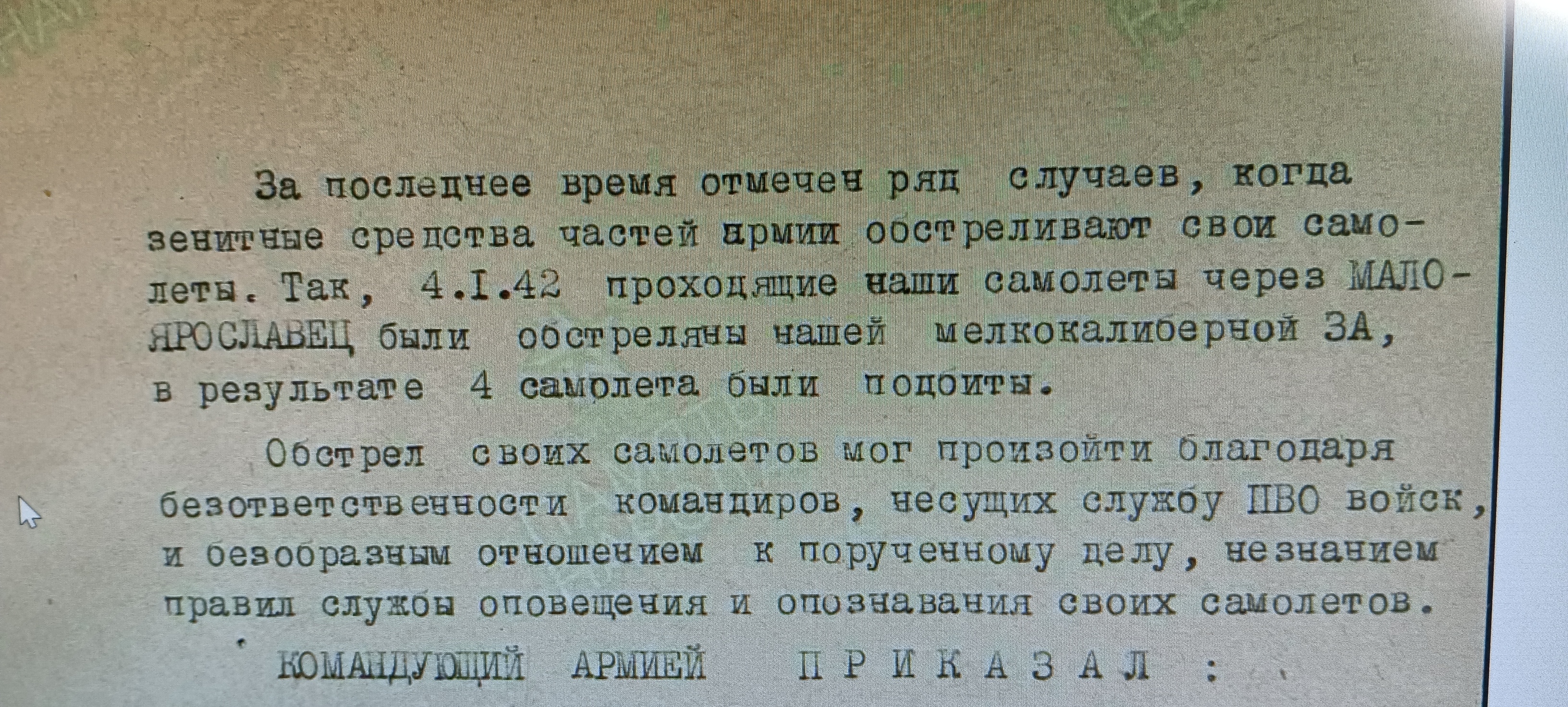 Опубликовано: 25 апреля, 2024 1 минуту назад, Alex63 сказал: «Краткая история 438 ИАП», ф.212 ГвИАП, оп. 143543, д. 1. Таранов Никита Андреевич, мл. лейтенант, летчик, ЛаГГ-3 № 1016 – 04.01.1942 не вернулся с боевого задания из района Тарутино. Там свои зенитчики постарались, сбили и Черпакова, и Таранова, а третий (не знаю, кто) едва доковылял до дома с 50 пробоинами. Вероятно, об этом было приказание войскам 43 А - https://pamyat-naroda.ru/documents/view/?id=454486432 , но зенитчиков пока не определил... 3 Упомянуть пользователя Поделиться сообщением Ссылка на сообщение Поделиться на других сайтах
