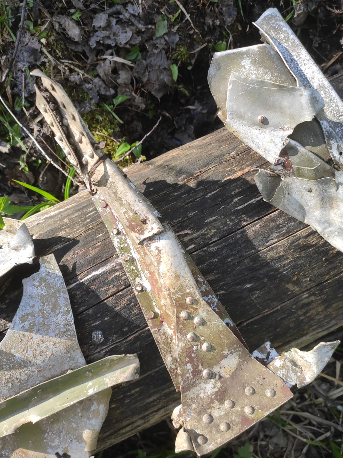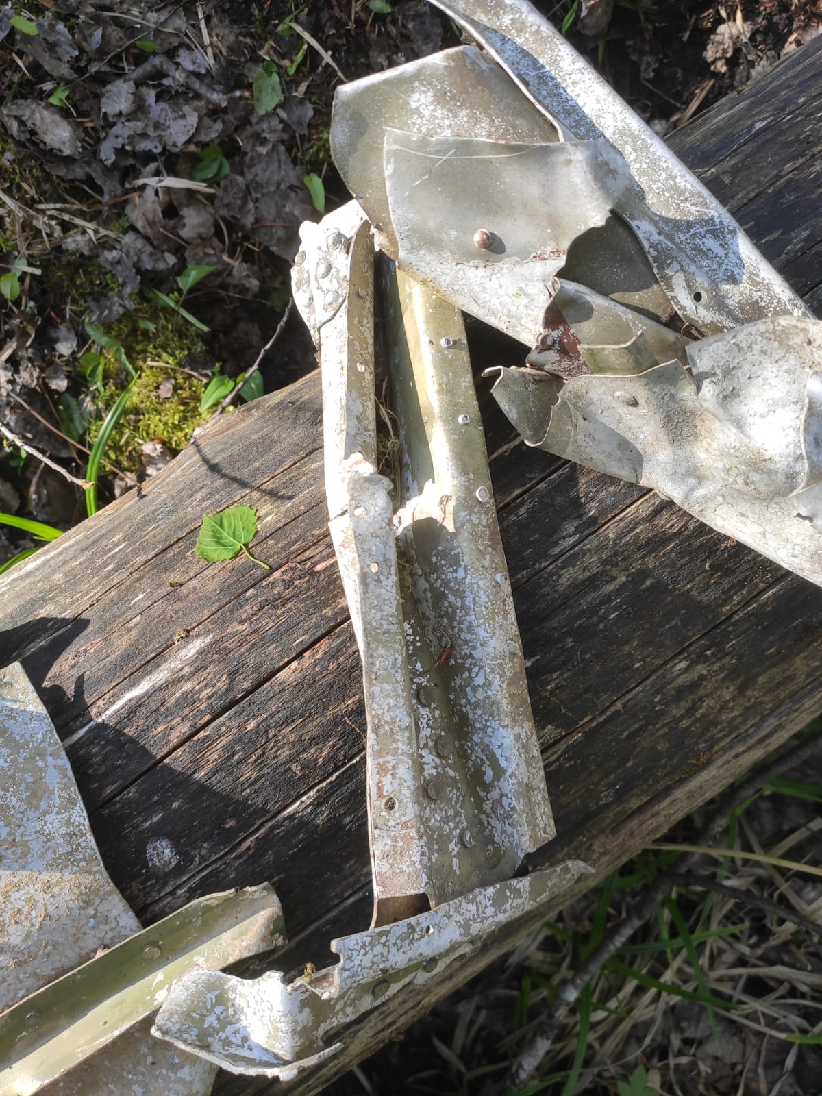 Похож на фрагмент обшивки с шасси Ил-2. На загнутых фрагментах может быть номер краской или карандашом...