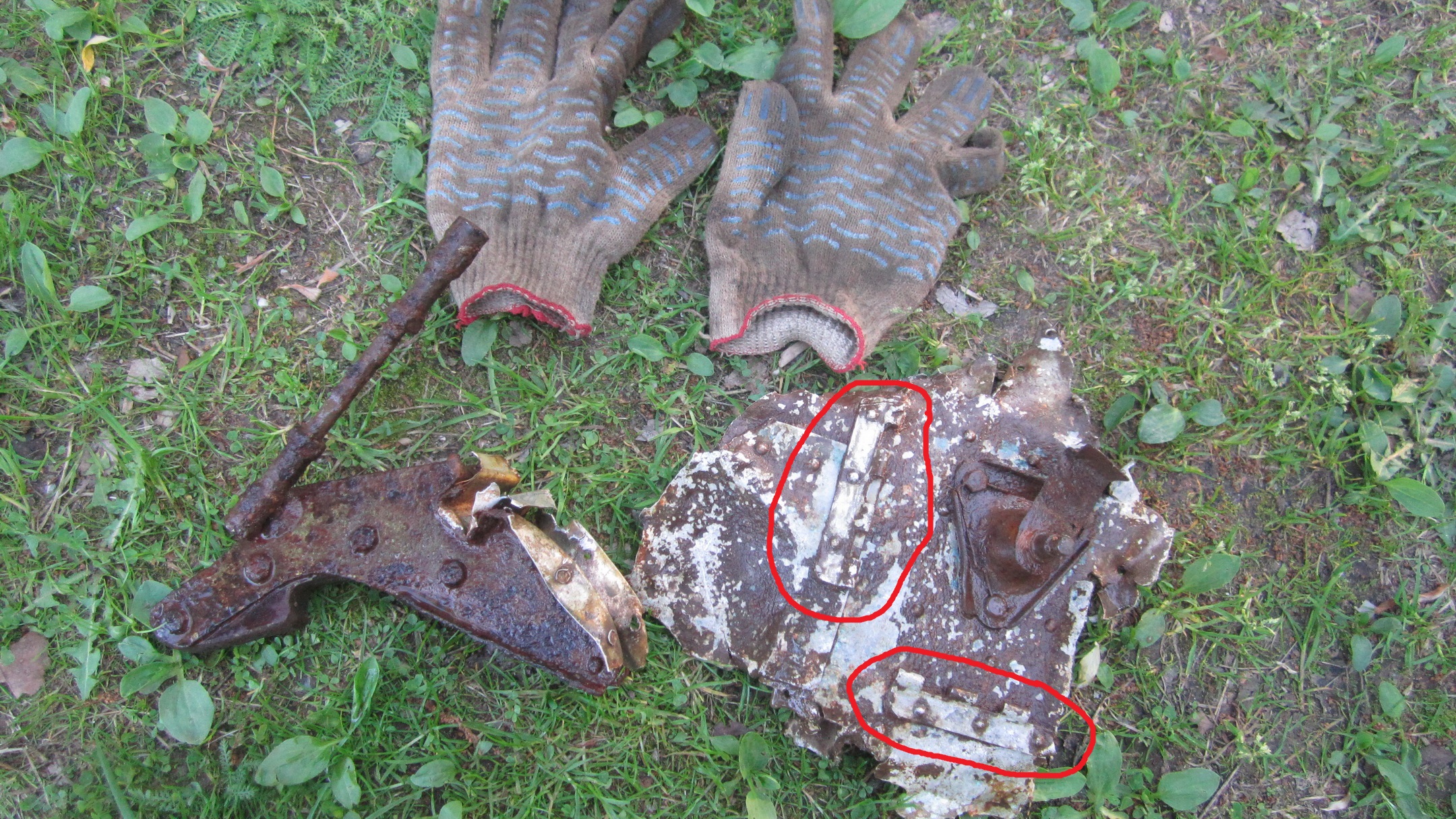 Здравствуйте. Нашел обломки с-та, принес два характерных обломка на определение. Клейм не нашел. Можно ли определить с-т по этим фрагментам. В стальном кронштейне с тягой, пластмассовая вставка необычной формы.