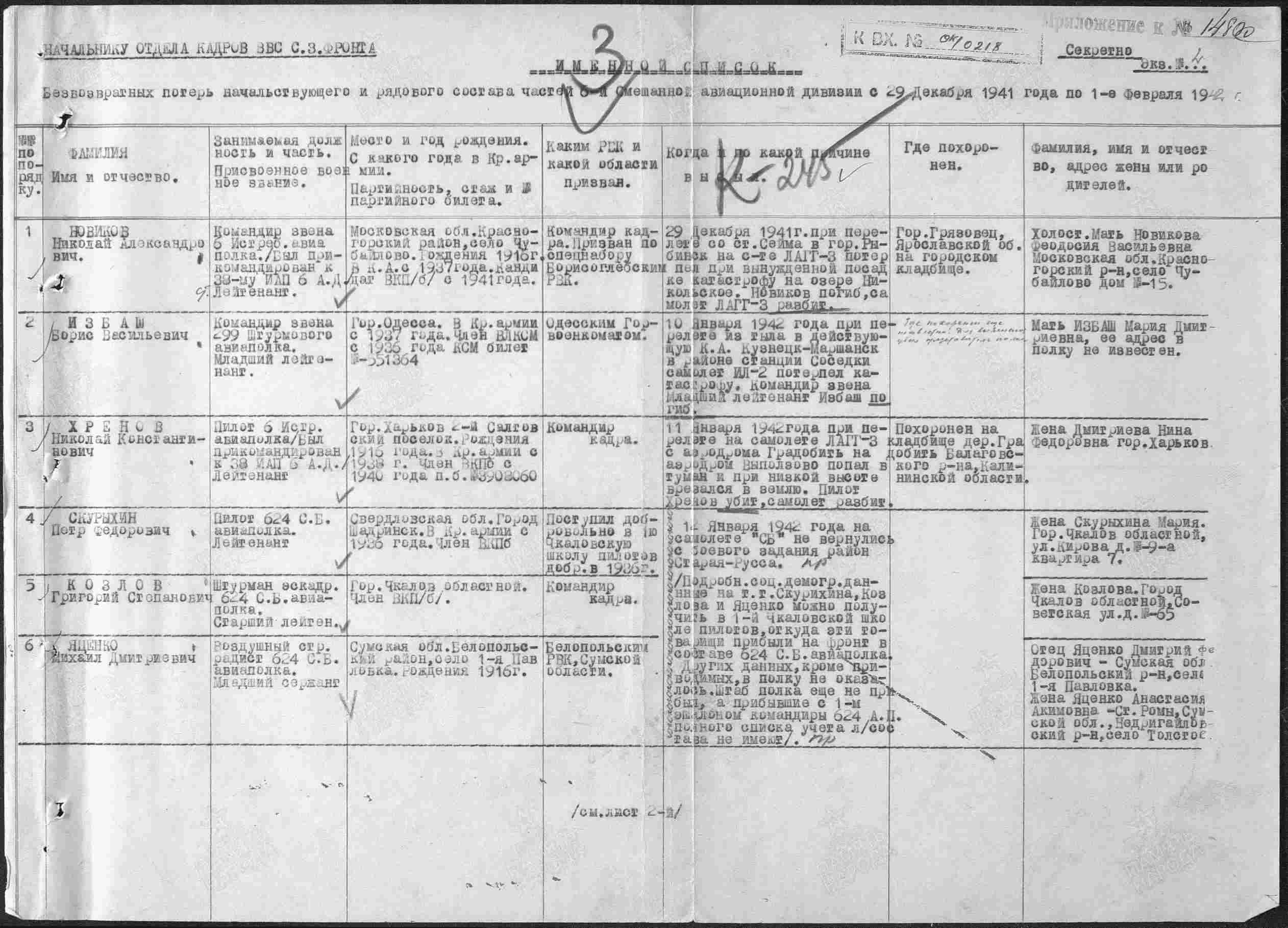 авиамеханик  Павлечко Иван Григорьевич (пропал без вести). Летчики погибли в Пензенской области , Дубина и Волошин  захоронены  в Кузнецке , где могила Избаша неизвестно , возможно в Башмаковском районе ,